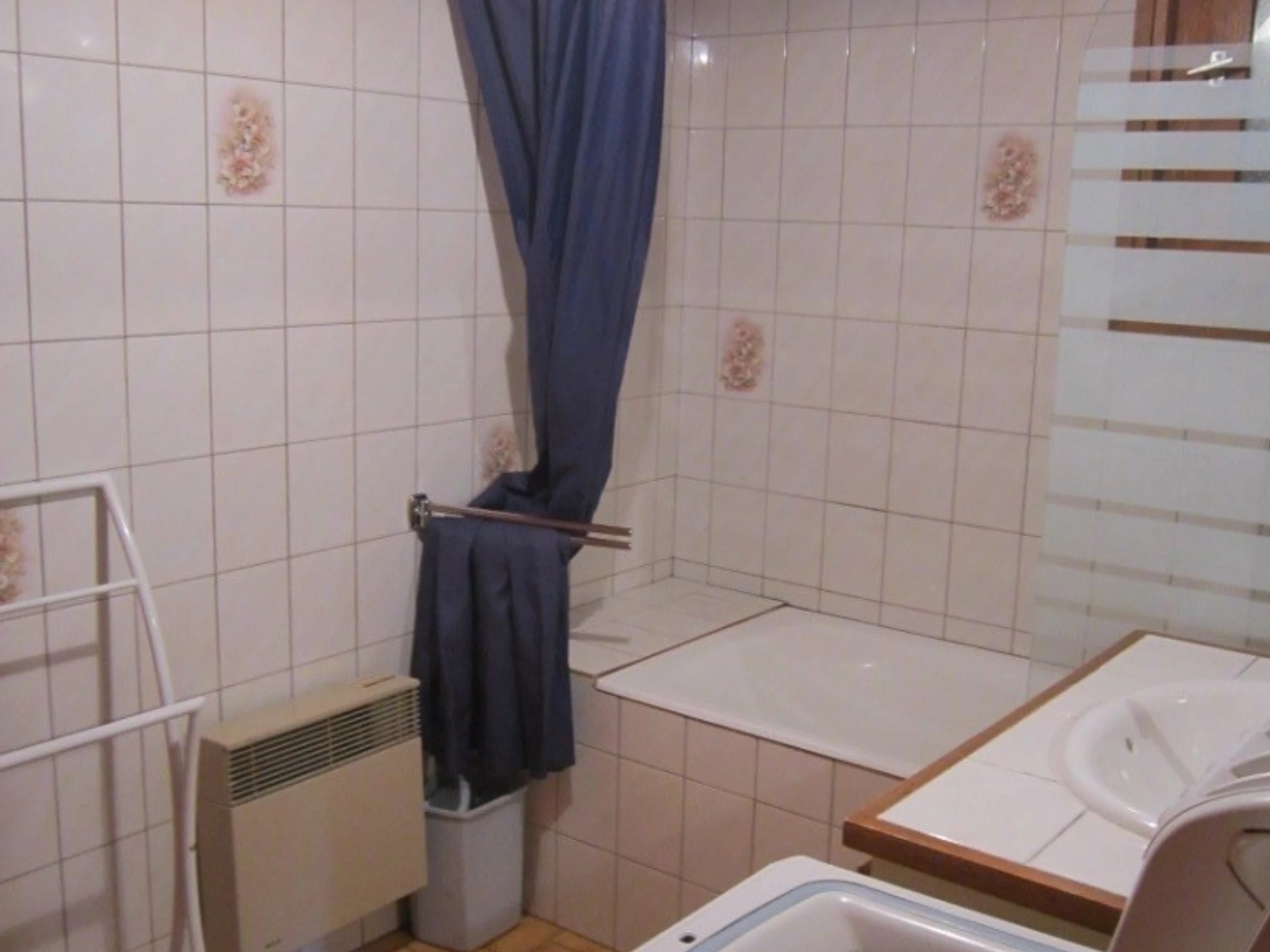 Beschreibung: - Eingangsbereich mit Garderobe - Voll ausgestattete Küchenzeile (Geschirrspüler, Cerankochfeld und Backofen, Mikrowelle, Kühlschrank, Toaster, Wasserkocher, Kaffeemaschine) mit Zugang zum Esszimmer mit großem Esstisch, Anrichte und Zugang zu einem nach Süden ausgerichteten Balkon/einer Terrasse mit freiem Ausblick - Wohnbereich mit TV - Badezimmer (Badewanne, Waschbecken, Waschmaschine) - WC - 1 Schlafzimmer mit zwei Einzelbetten (90 cm) - Zugang zum Obergeschoss über eine Holztreppe: großes Zwischengeschoss mit Wohnbereich, TV und Doppelschlafsofa (140 cm) - 2 Schlafzimmer mit je einem Doppelbett (140 cm) - Badezimmer (Badewanne, WC, Waschbecken) - Im Obergeschoss beträgt die Deckenhöhe teilweise weniger als 1,80 m. Elektrische Heizung. Der Kamin ist außer Betrieb; Benutzung ist verboten. Haustiere sind nicht erlaubt. Rauchen verboten.