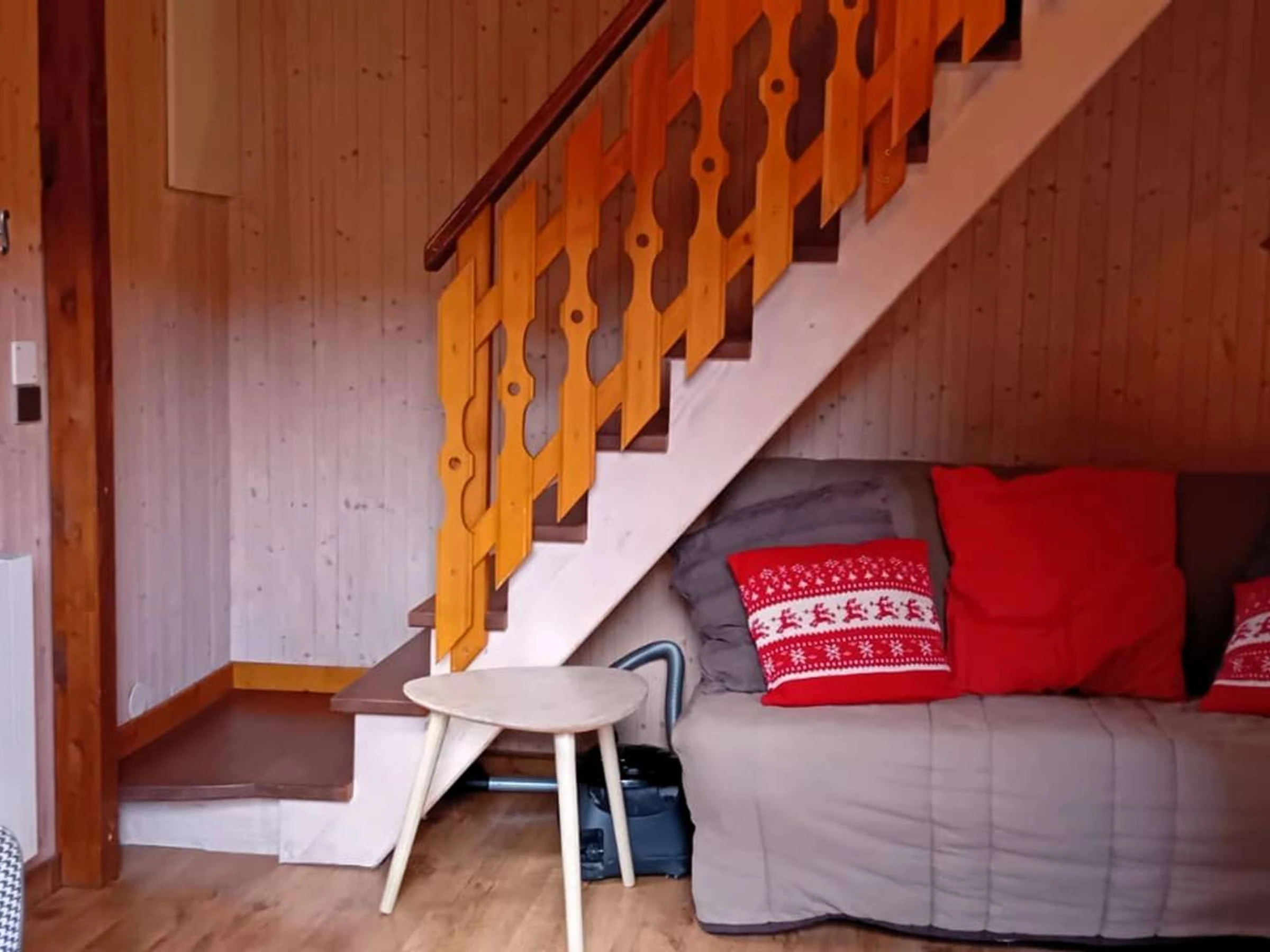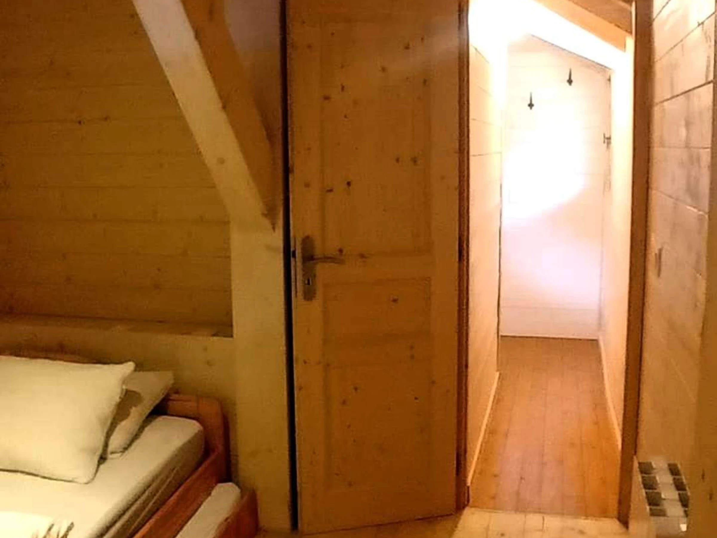 Beschreibung: Große Eckterrasse in Südlage – Eingang zum offenen, ausgestatteten Küchenbereich (Spüle, Kühlschrank, 4 Gasflammen und Elektrobackofen, Geschirrspüler, Mikrowelle, Dunstabzugshaube, Toaster, Wasserkocher, elektrische Kaffeemaschine und Nespresso-Kaffeemaschine (Pads vorhanden)) – Wohnzimmer mit TV-Bereich und Stereoanlage – ausgestatteter Essbereich – Duschraum (Dusche, Waschbecken, Waschmaschine) – separates WC – Zugang zum Obergeschoss unter dem Dachgiebel mit Sichtbalken: 1. Schlafzimmer ausgestattet mit 1 Doppelbett (140) + Stauraum – 2. Schlafzimmer ausgestattet mit 1 Doppelbett (140) + Stauraum – 3. Durchgangsschlafzimmer ausgestattet mit 1 Einzelschlafsofa (80) + 1 Einzelausziehbett (80) – 4. Schlafzimmer ausgestattet mit *1 Doppelbett (140). Die Zimmer sind teilweise weniger als 1,80 m hoch. Ihre Skier/Snowboards/Fahrräder können im Technikraum aufbewahrt und getrocknet werden. Haustiere nicht erlaubt. Rauchen verboten.