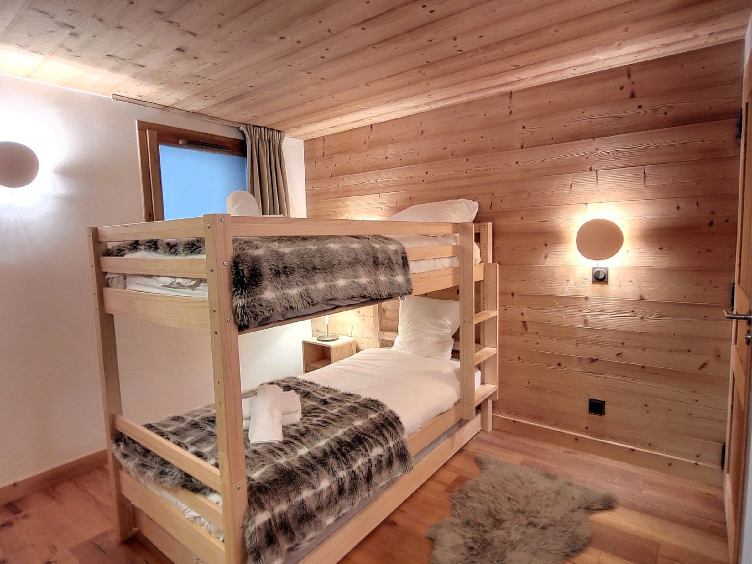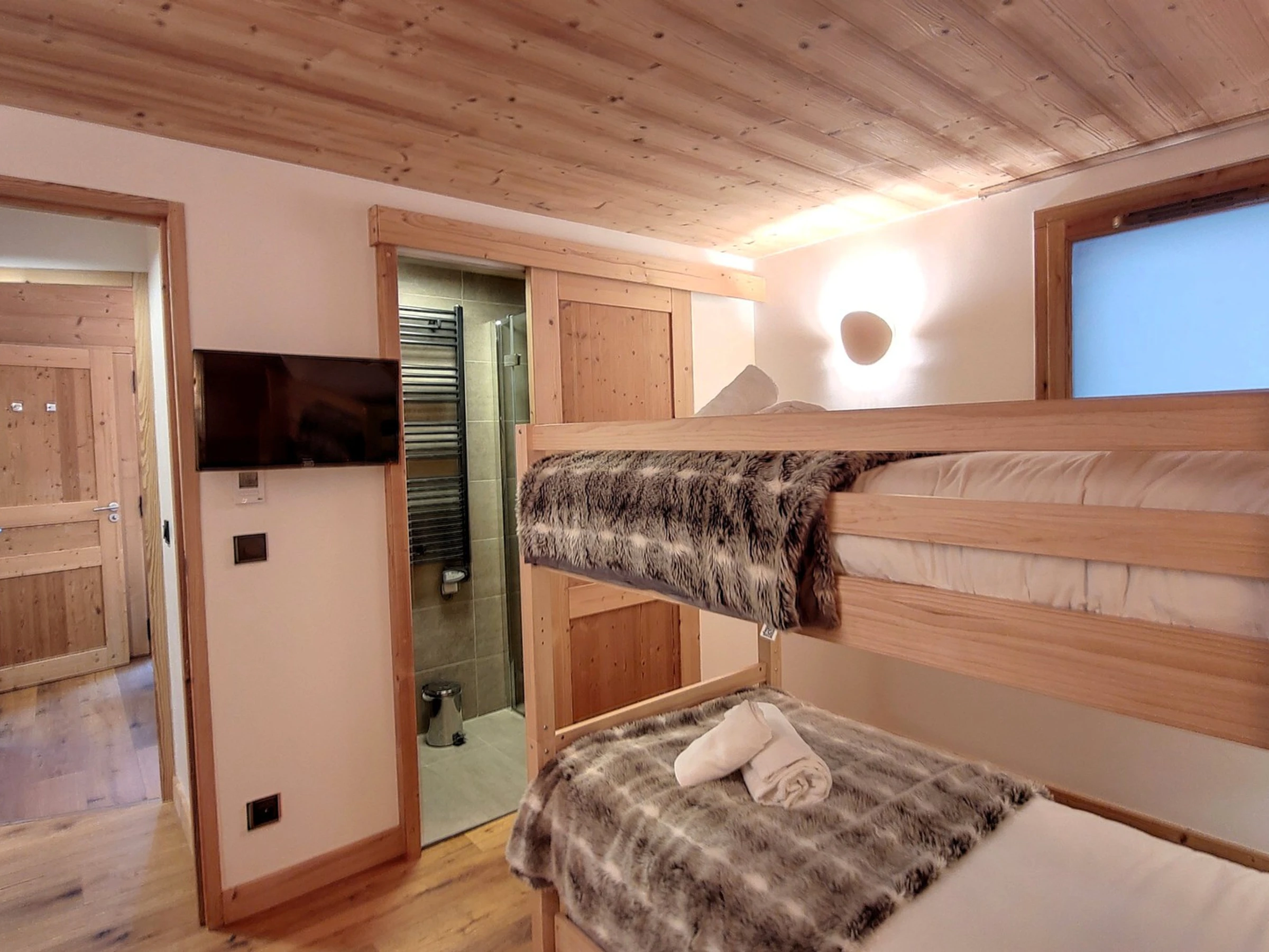- Schlafzimmer mit Etagenbetten 90x100 cm, eigenem Bad, TV, Stauraum, separates WC, Dusche, Waschbecken. Kommode.