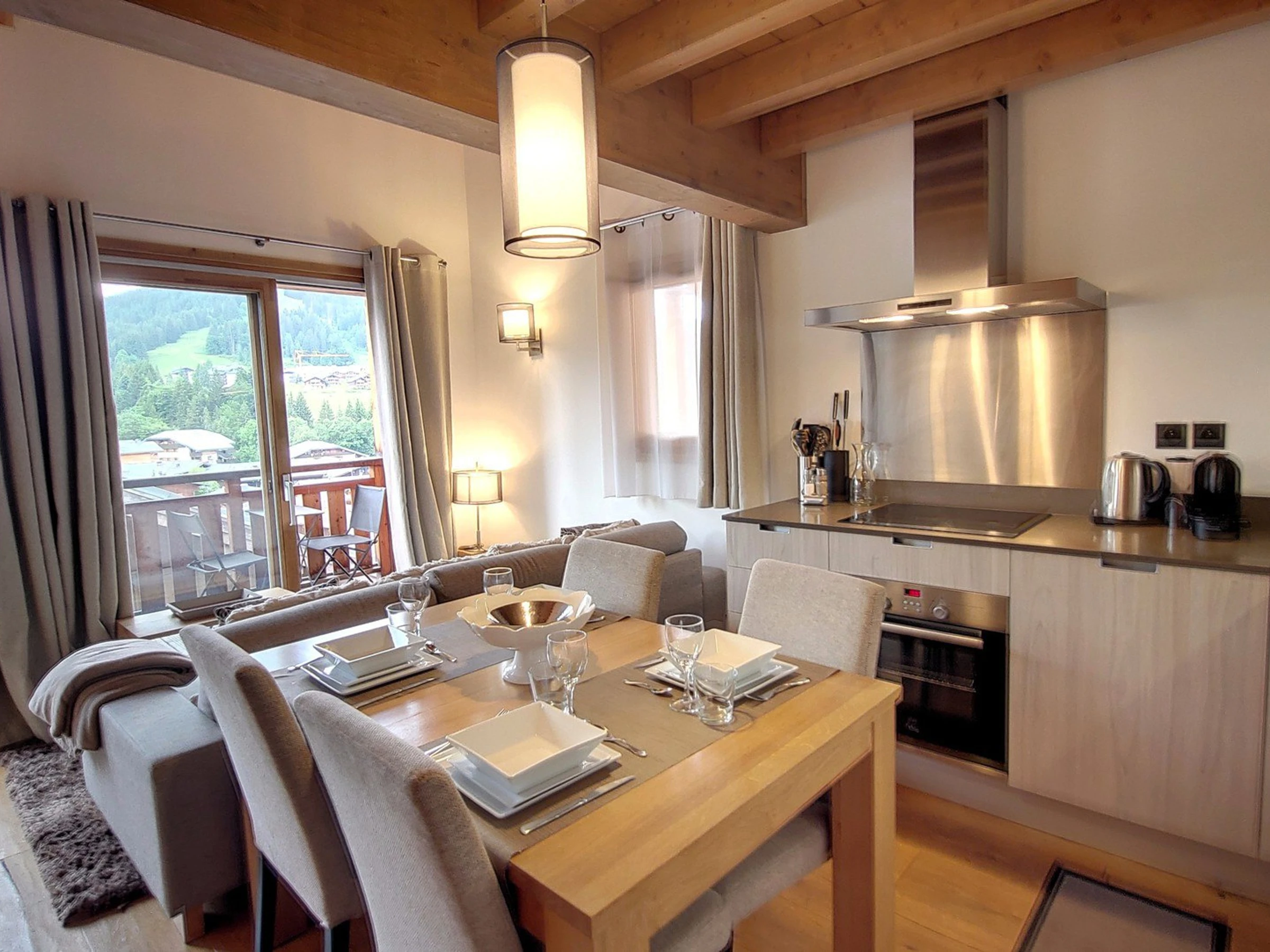 Helle, gemütliche Triplex-Wohnung auf drei Ebenen mit Blick auf das Resort und die Chavannes. Zwei Schlafzimmer mit eigenem Bad, gemütliches Wohnzimmer, möblierter Balkon nach Südwesten. Nahe dem Zentrum. Ideal für Familienurlaub.