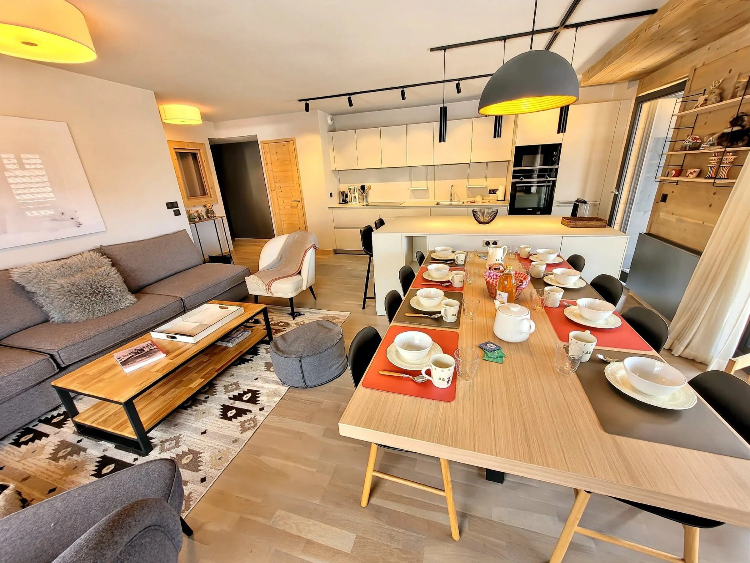 Mit direktem Zugang zu den Pisten, mitten im Dorfzentrum, bietet diese herrliche 100 m² große Wohnung im zweiten Stock mit Aufzug den idealen Rahmen für einen komfortablen Aufenthalt in den Bergen. Ein seltenes Anwesen für unvergessliche Ferien mit großer Terrasse und Bergblick. Für 8 Personen