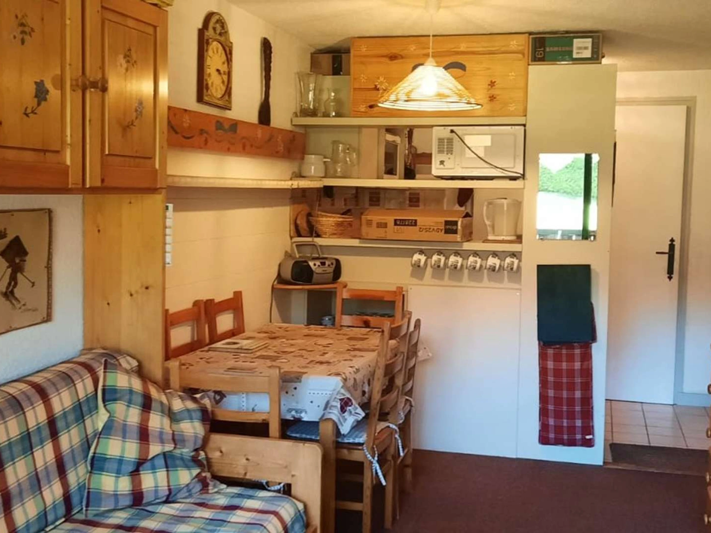 Zu vermieten in Les Gets: Komfortable Zweizimmerwohnung mit Kabine, hell, gepflegt, 32 m², ausgestattet für maximal 5 Personen im 2. Stock der Residenz „LE PRAZ DU SOLEIL“. 300 m von der Einkaufsstraße und 400 m vom ESF und den Pisten entfernt. Im Erdgeschoss von Gebäude A der Residenz befinden sich ein Waschsalon und eine Bäckerei. Ein Garagenstellplatz befindet sich im Untergeschoss. Elektroheizung.