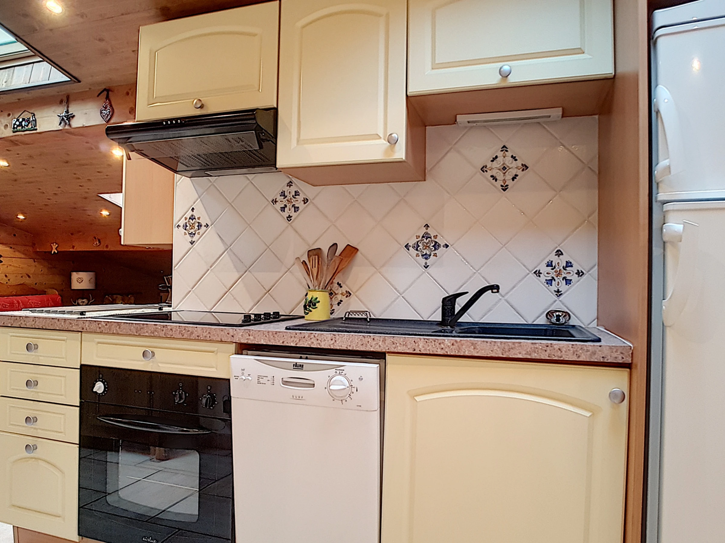 Dieses offene küche, mit ceranfeld, ist ausgestattet in kühlschrank, mikrowelle, backofen, spülmaschine, geschirr/besteck, kochutensilien, kaffeemaschine, toaster und wasserkocher.