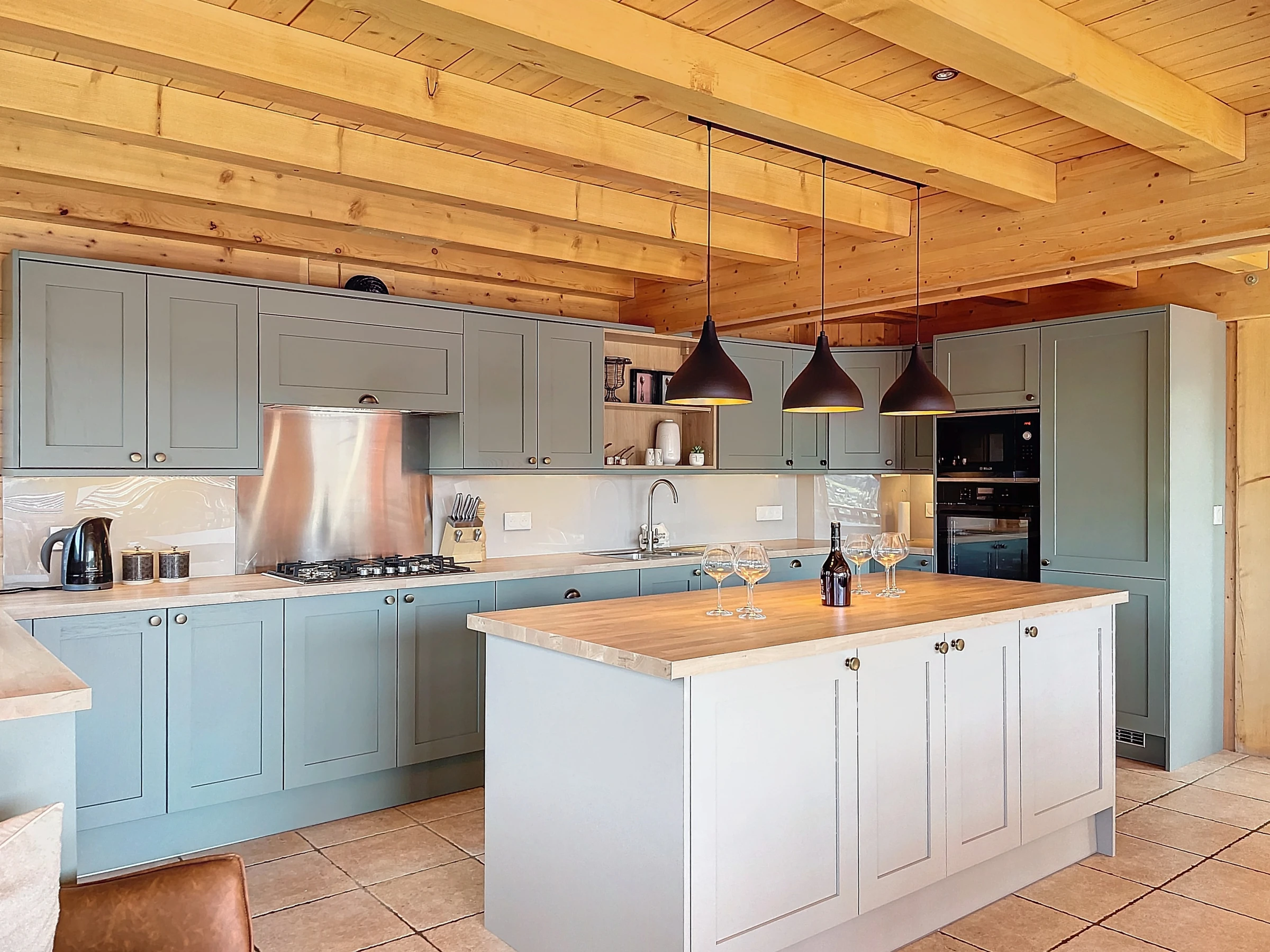 Dieses offene küche, ist ausgestattet in kühlschrank, mikrowelle, backofen, spülmaschine, geschirr/besteck, kochutensilien, kaffeemaschine, toaster und wasserkocher.