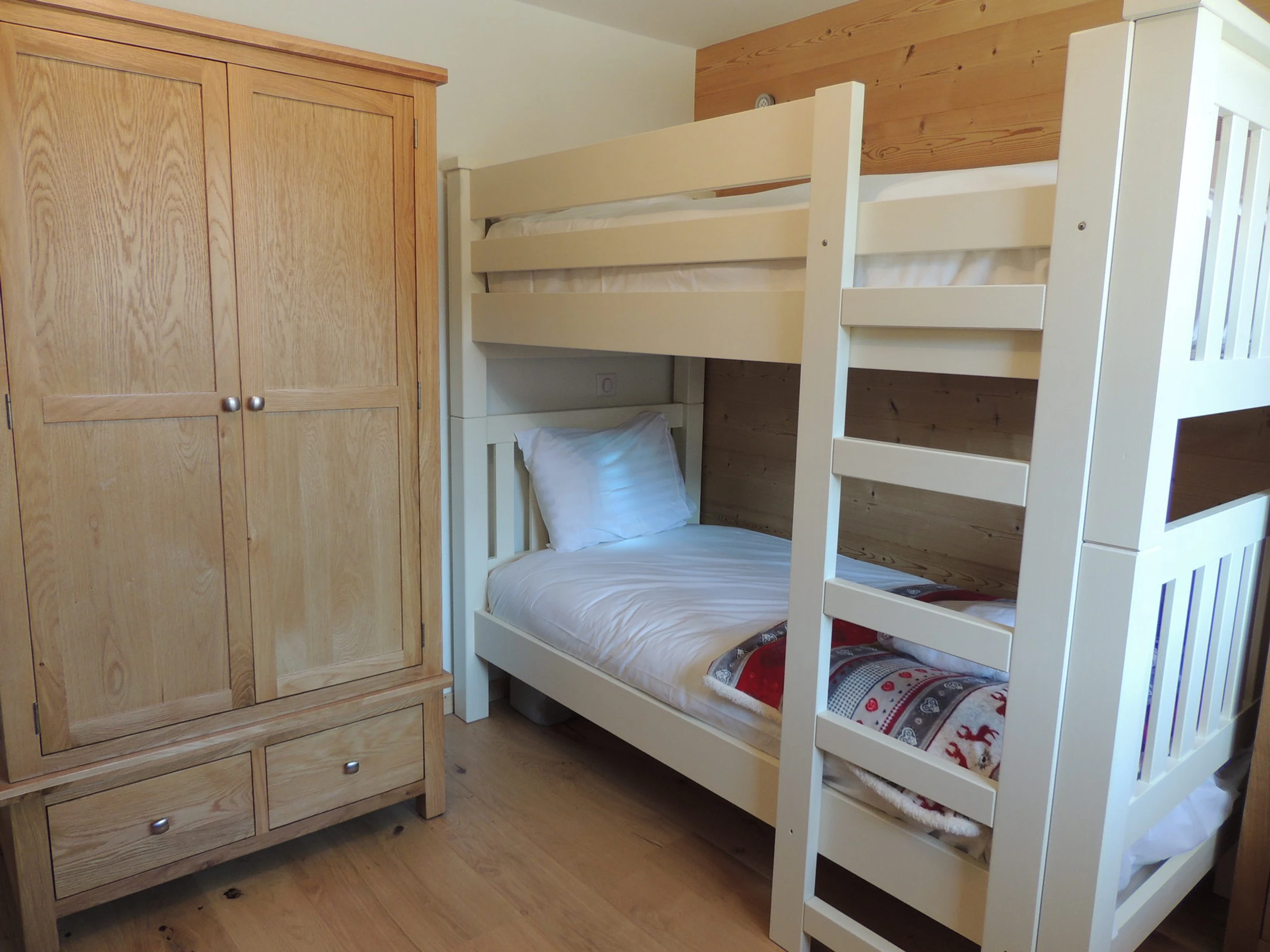 - Schlafzimmer mit 2 Etagenbetten (4 Betten) und Kleiderschrank.