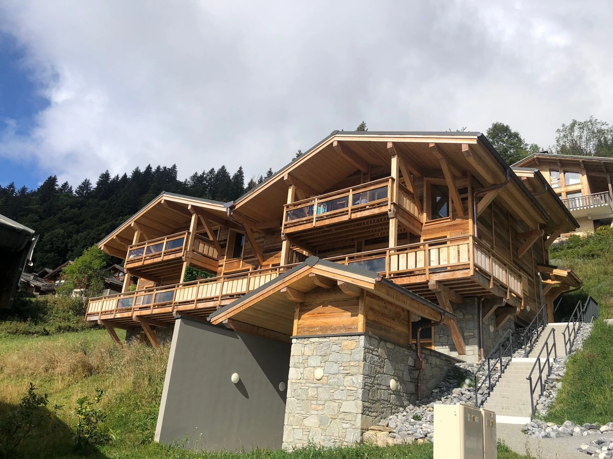 Wunderschön fertiggestellte Residenz aus traditionellen Materialien, geliefert im Dezember 2020, in bester Lage mit Blick auf die Chavannes-Bergkette. Die Südostausrichtung bietet einen atemberaubenden Blick über das Dorf und die Pisten, während diese friedliche Lage immer noch nur einen Katzensprung von den Chavannes- und Mont-Chery-Liften und allem, was das pulsierende Dorf Les Gets zu bieten hat, entfernt ist
