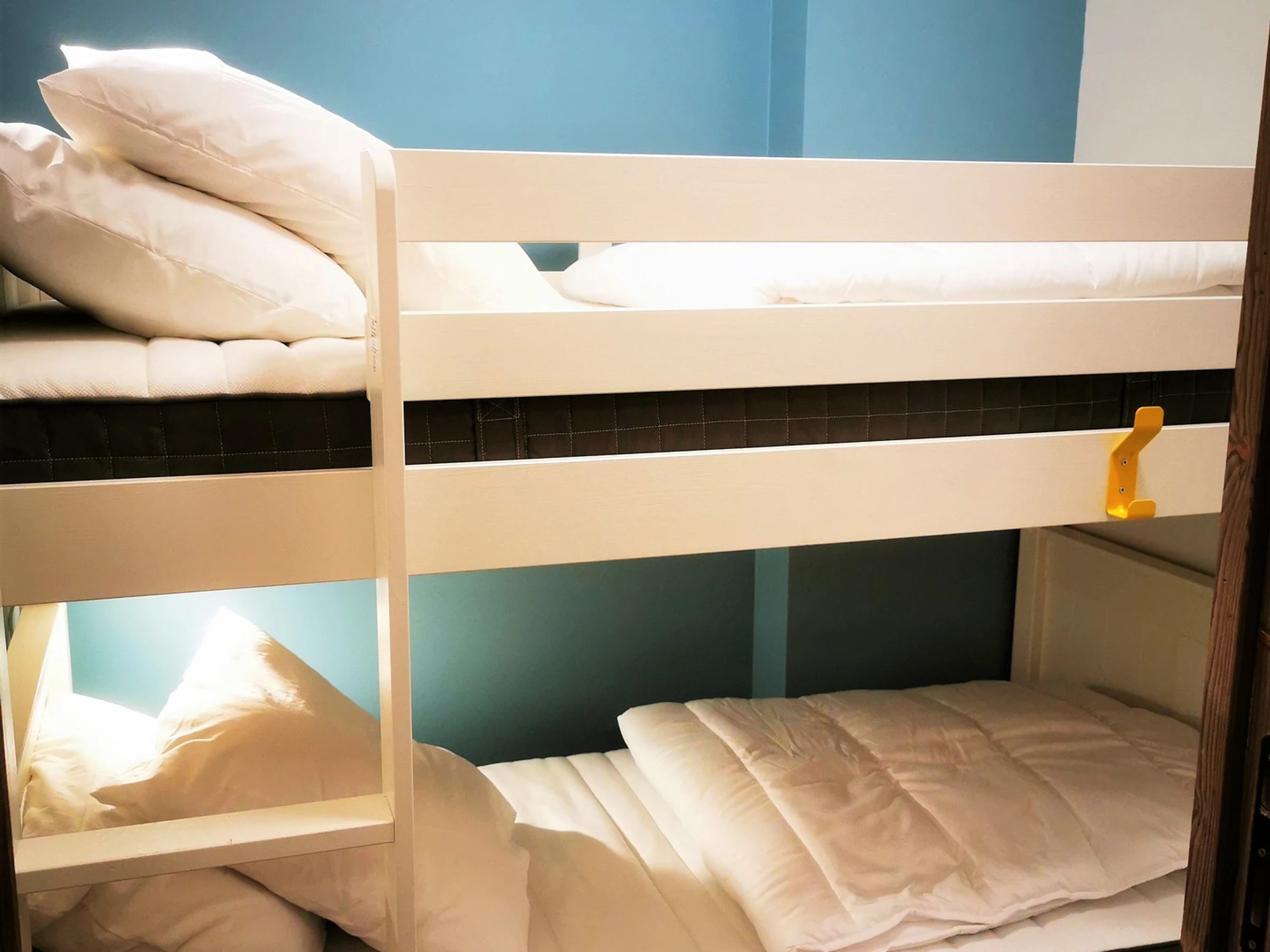 - Eine Hütte mit zwei Etagenbetten (90 x 190 cm) und Leselampe