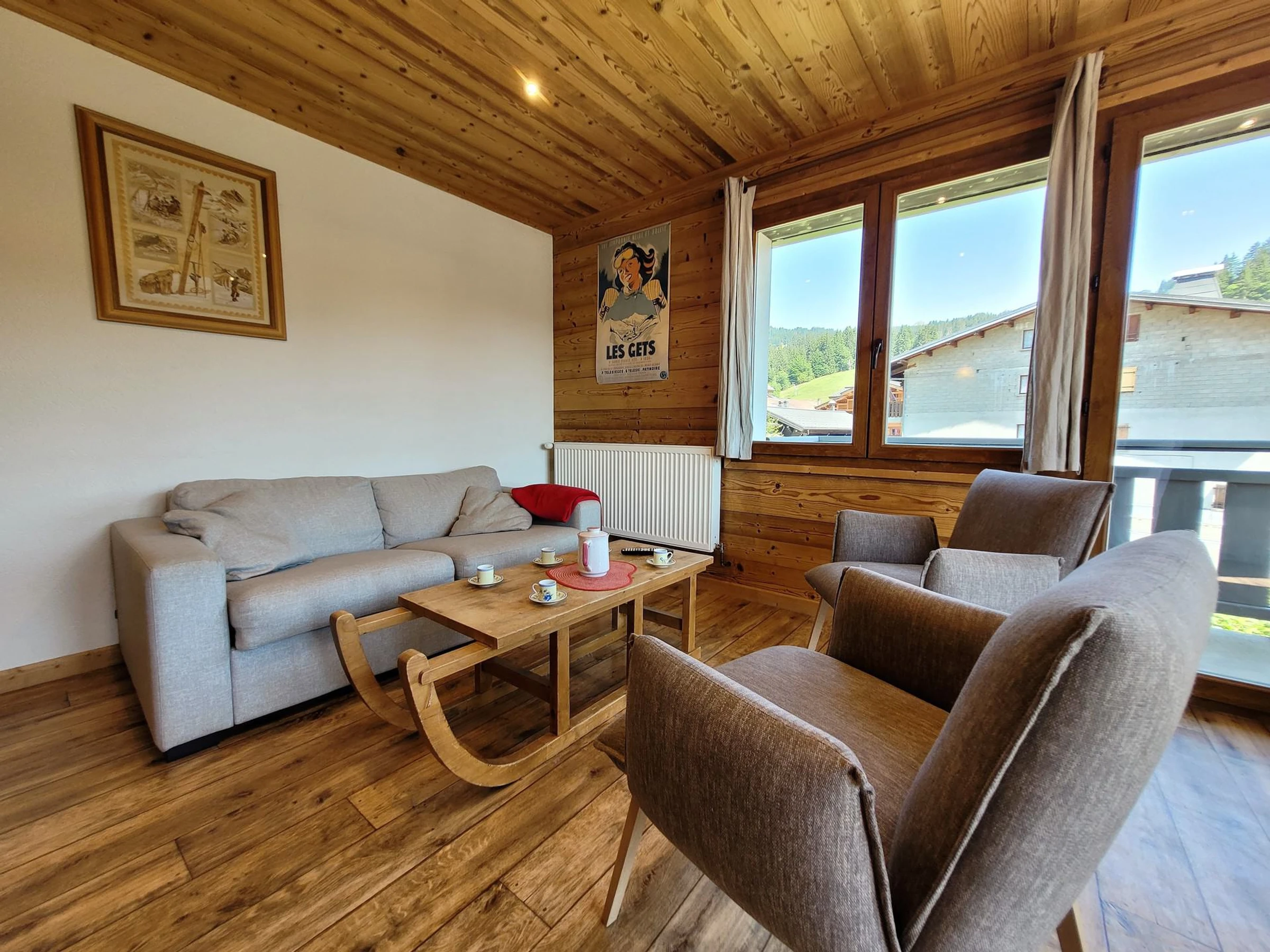 - Ein Wohnbereich mit Schlafmöglichkeit (Schlafsofa + 1 Doppelbett), 1 Fernseher Zugang zum Südbalkon