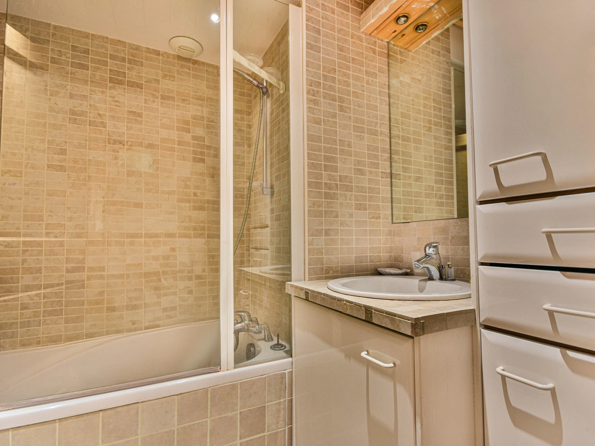 – 4 m² großes Badezimmer (Badewanne, Waschbecken)