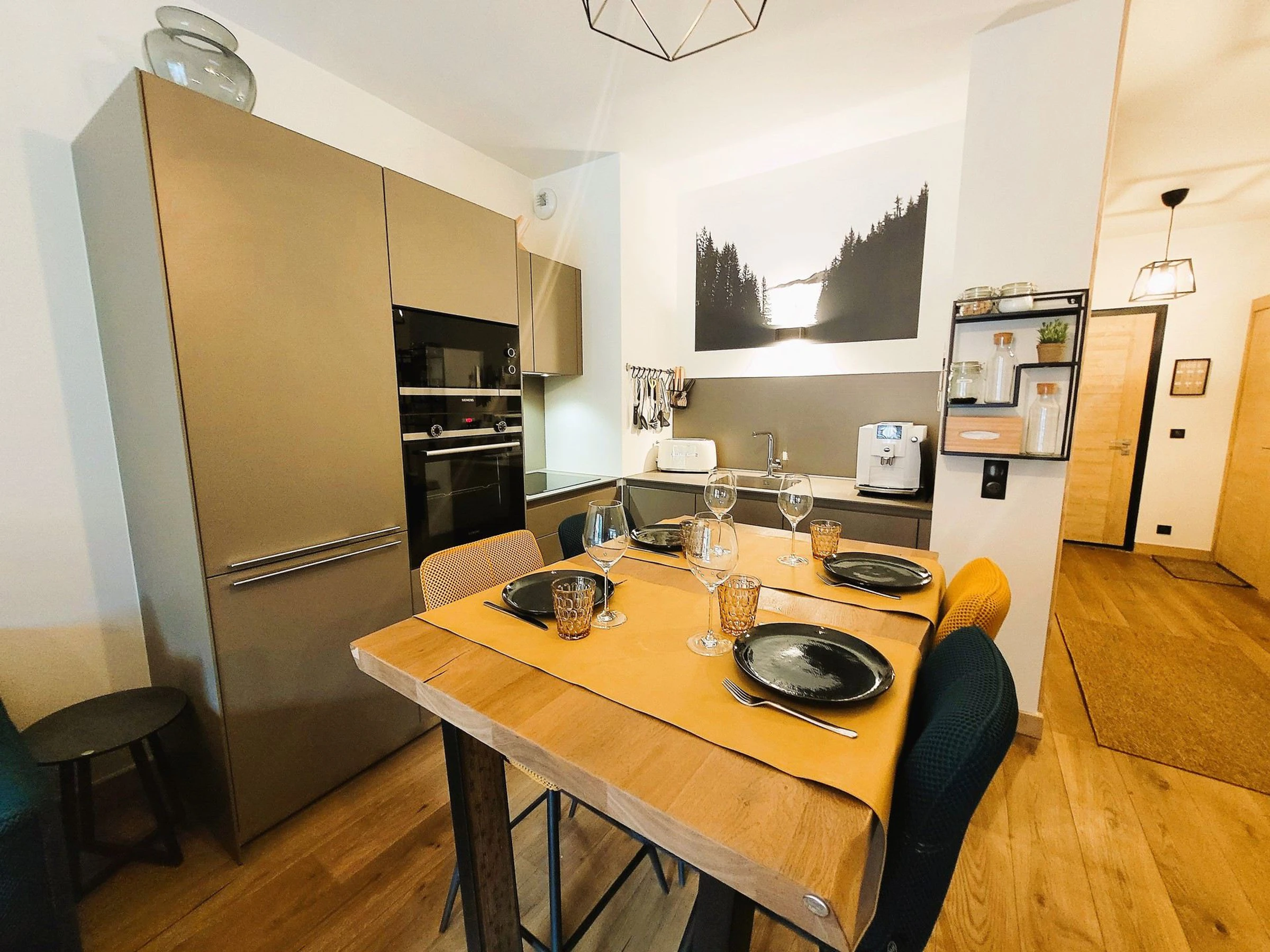AUSSTATTUNG: Voll ausgestattete Küche mit Backofen, Induktionskochfeld, Dunstabzugshaube, Kühl- und Gefrierschrank, Mikrowelle, Geschirrspüler, Wasserkocher, Toaster, Kaffeemaschine, Zitruspresse, Mixer/Küchenmaschine, Raclette-Gerät, Fondue-Set und Steinplatte, TV, WLAN, Sonos-Lautsprecher, Waschtrockner, Dyson-Staubsauger, Bügeleisen und Bügelbrett, Wäscheständer, Föhn.