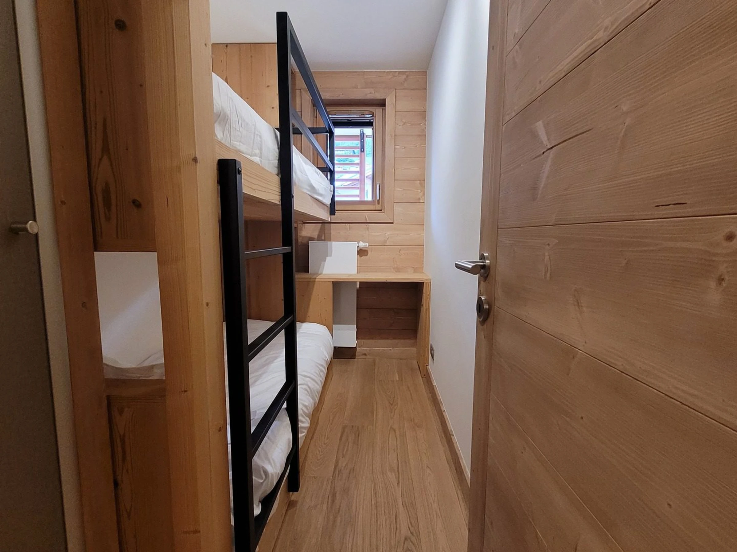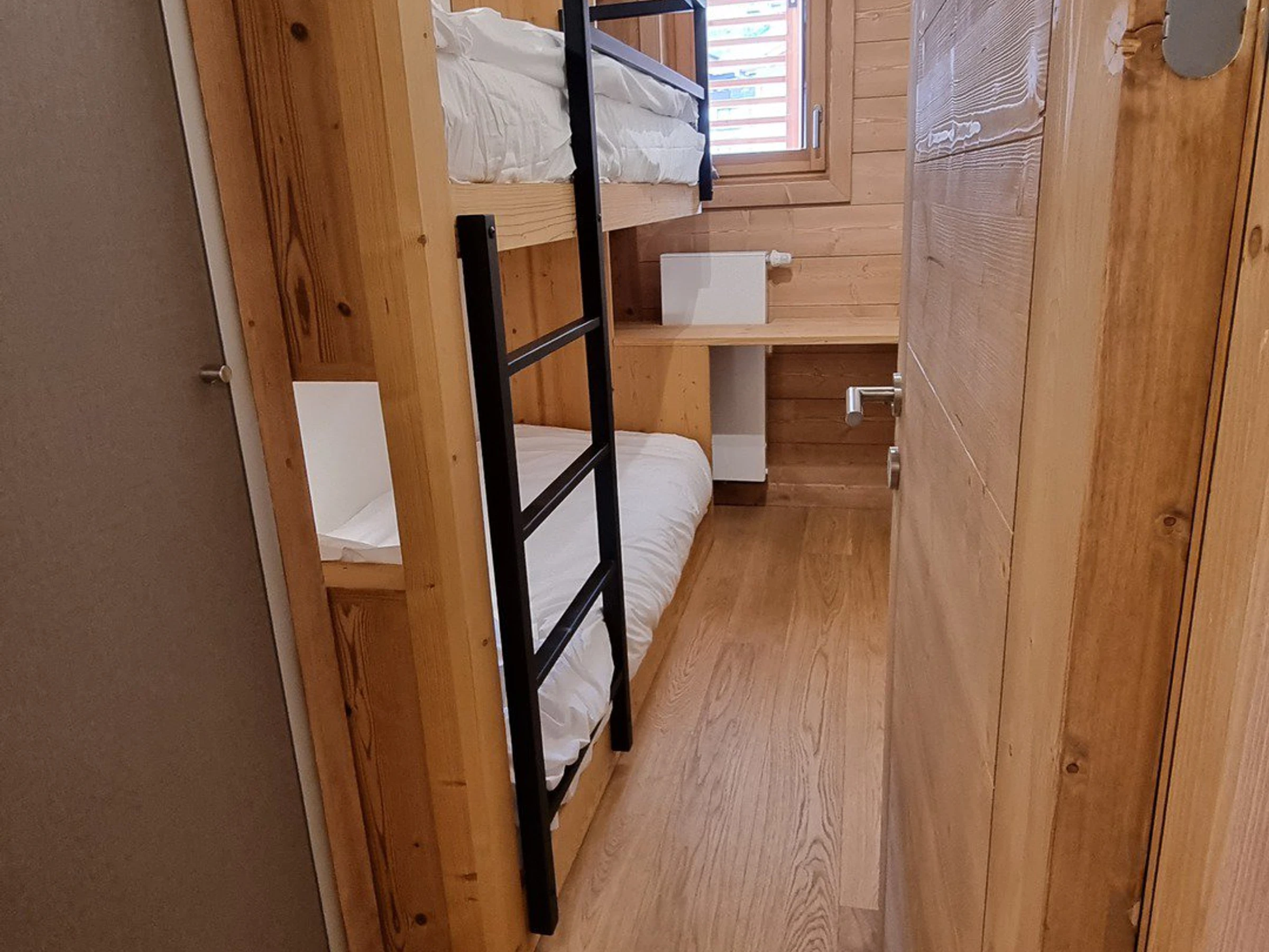 - Eine Nische mit zwei Etagenbetten (80 x 190 cm), Stauraum und kleinem Schreibtisch