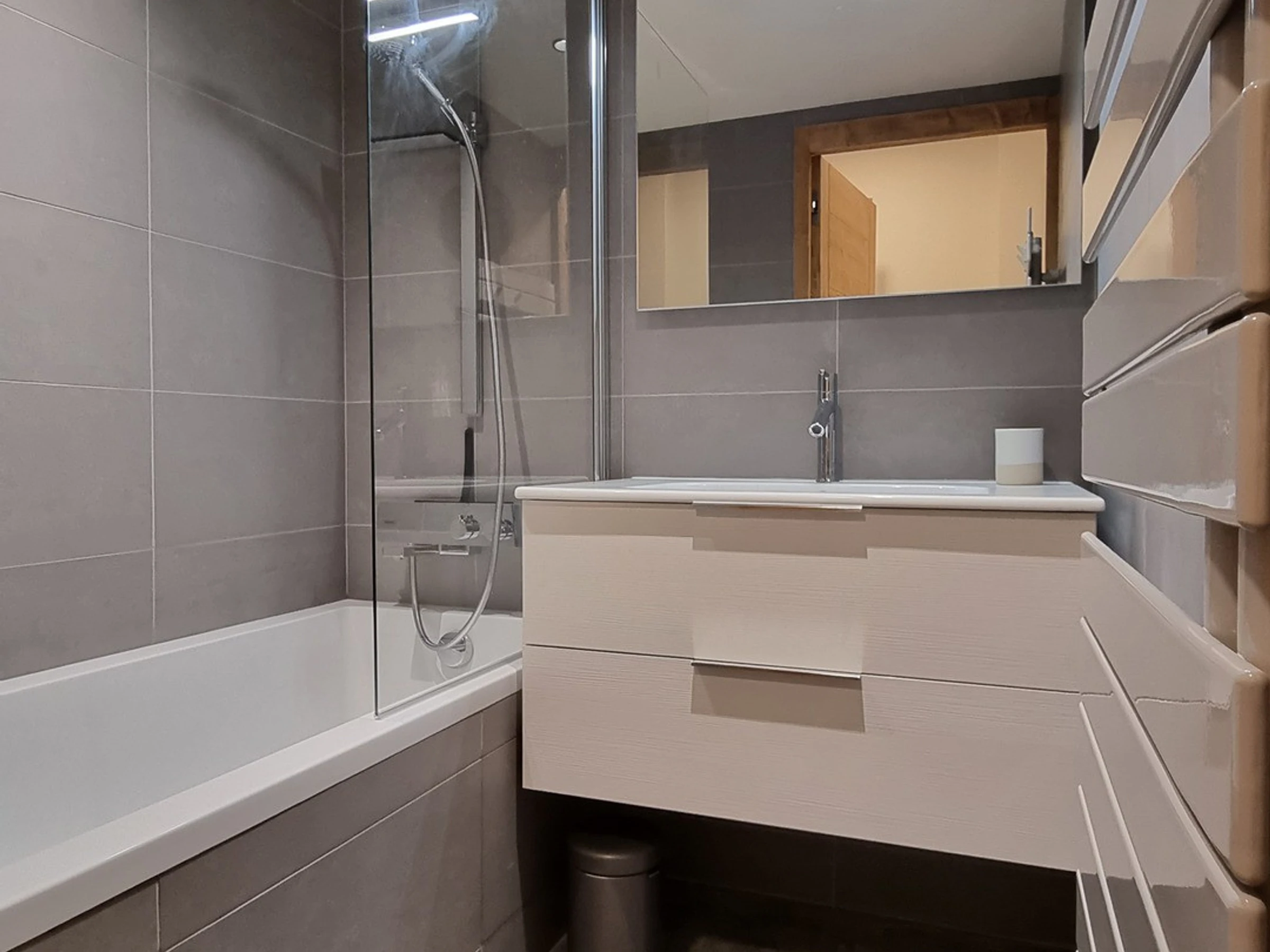 - Separates Badezimmer mit Badewanne und Dusche, Waschbecken und beheiztem Handtuchhalter