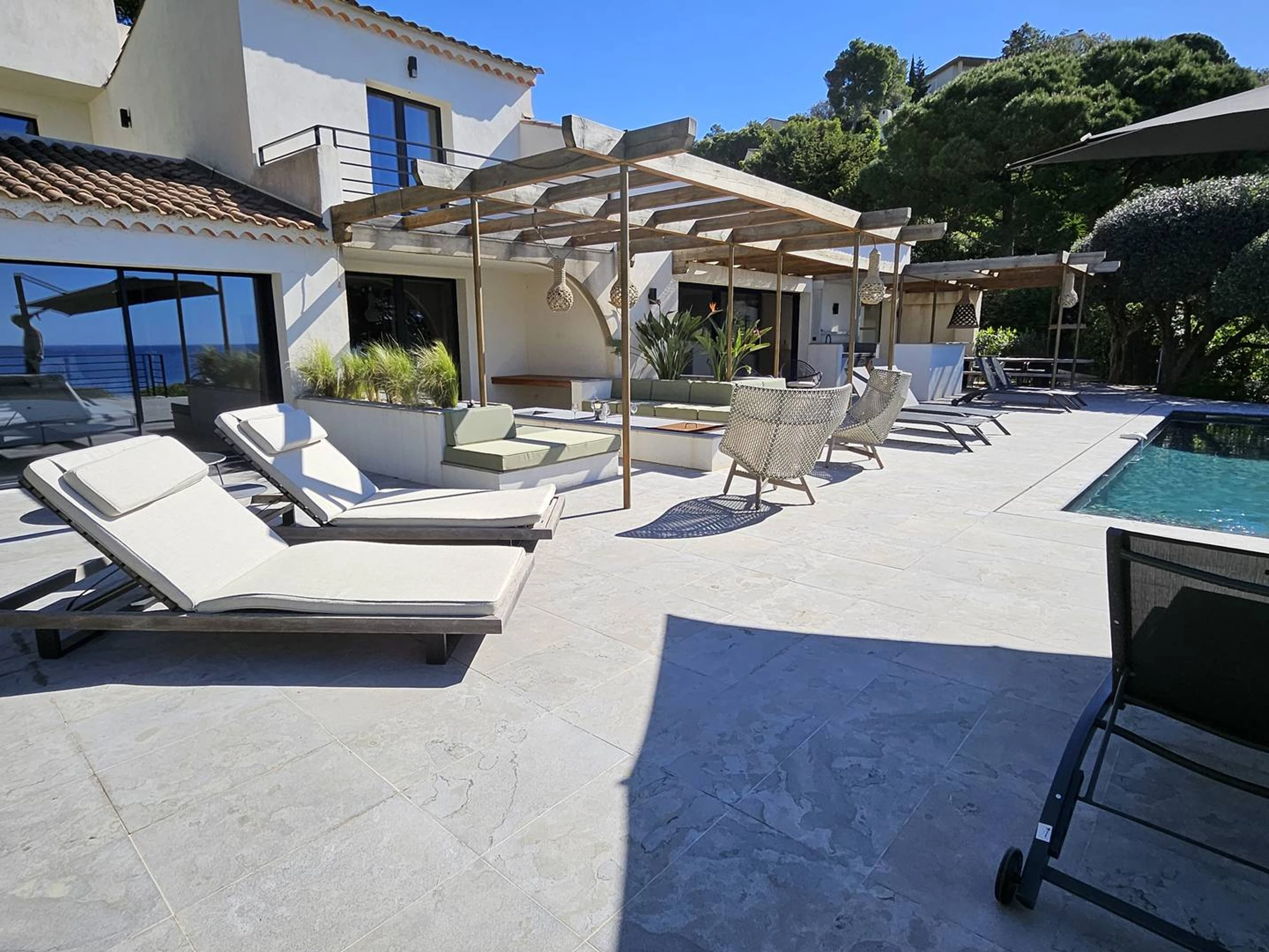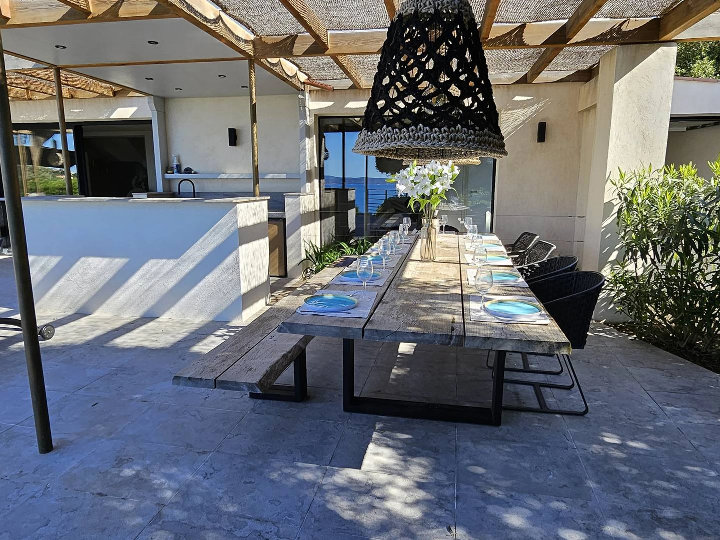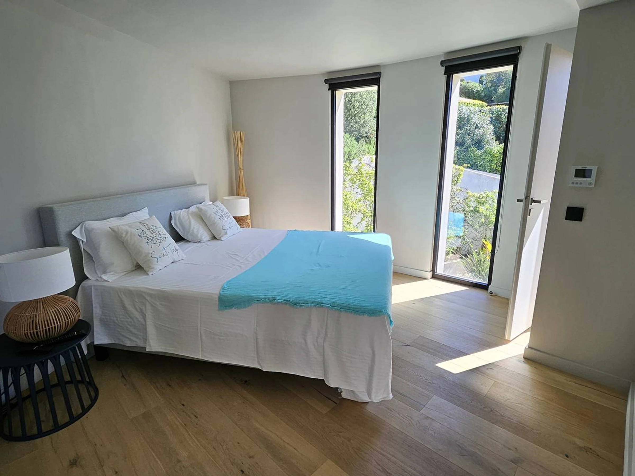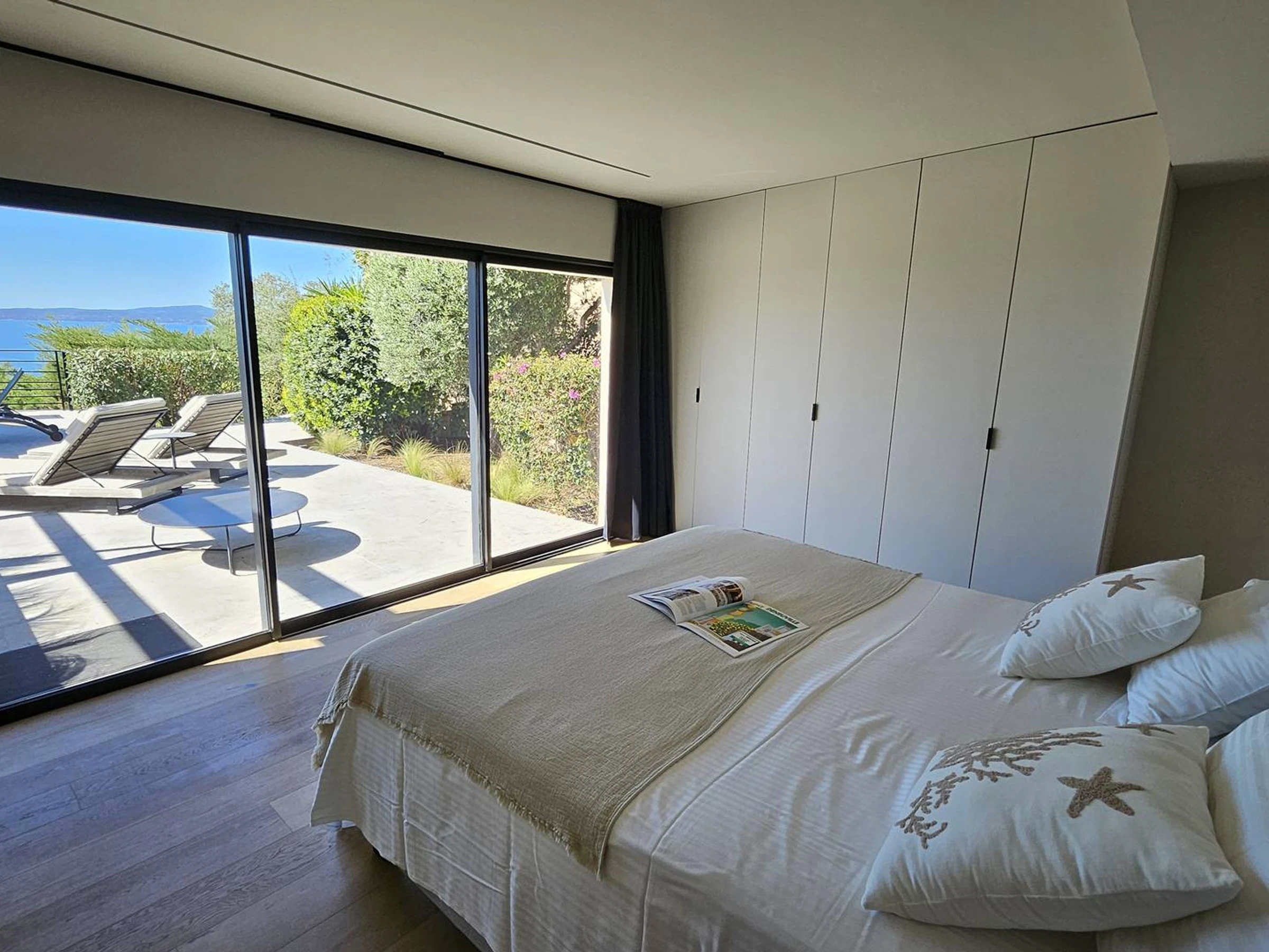 Les Issambres mit Blick auf St. Tropez Côte d'Azur: neue Master-Villa von 280 m² mit großen Erkerfenstern und Meerblick. Sie werden von der zeitgenössischen Architektur, dem privaten Swimmingpool von 3,5 x 10 m verzaubert sein fabelhafter Meerblick. Großes Wohnzimmer, Lesezimmer mit TV, voll ausgestattete amerikanische Küche, Waschmaschine, 2 Geschirrspüler, Eismaschine, 2 große Kühlschränke. Ausgestattet mit 4 Schlafzimmern mit Doppelbetten von 180 cm und 1 großen Schlafzimmer unter dem Hang mit 4 Betten von 90 cm, die einen Schlafsaal bilden, sowie einem Bett von 180 cm bietet es Platz für bis zu 14 Personen in Luxus und Modernität. Alle Zimmer sind mit Fernseher ausgestattet. Zahlreiche Duschräume und ein Badezimmer. Zauberhafte Terrasse am Pool mit dem Meer im Hintergrund. Sie verfügen außerdem über eine Sommerküche und ein Kohlenbecken auf der Terrasse, um die langen Sommerabende zu genießen und Ihre Freunde einzuladen. Garage und Parkplatz, eingezäuntes Grundstück und elektrisches Tor. Natürlich allgemeine Klimaanlage und Alarmanlage. Ideal gelegen, 2 km vom Meer und dem Dorf entfernt. Wäscheverleih auf Anfrage. Auf Anfrage akzeptieren wir gut erzogene und angepasste Tiere. Beleuchteter und freundlicher Pétanque-Platz.