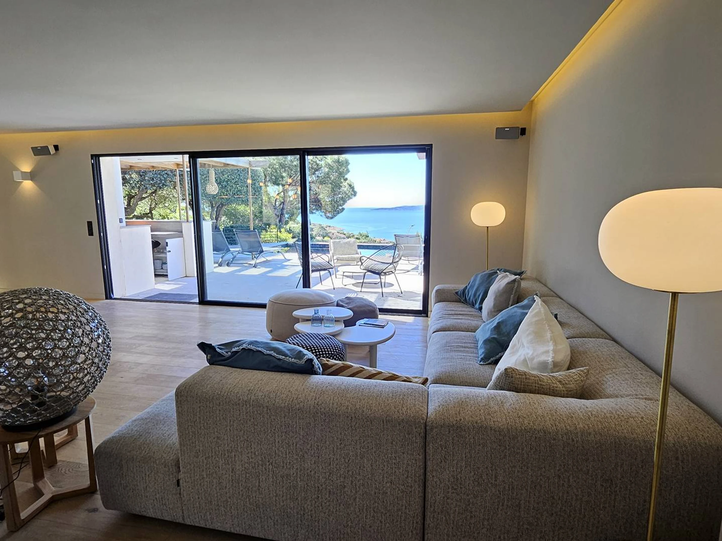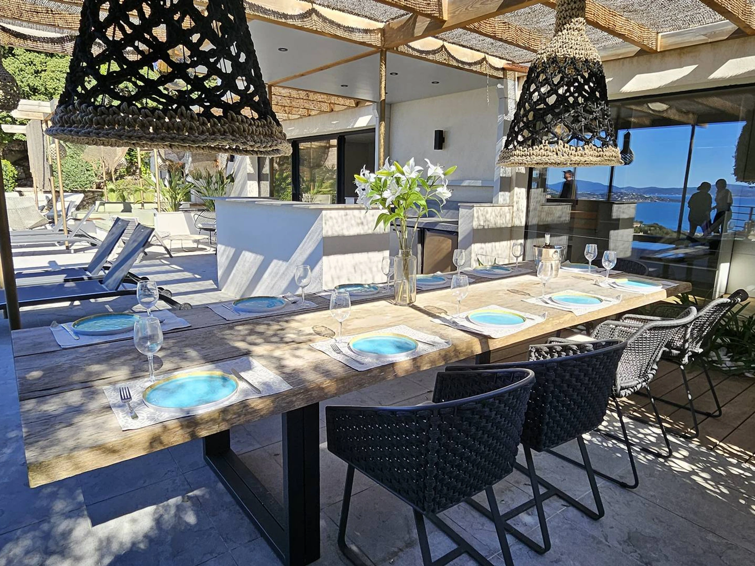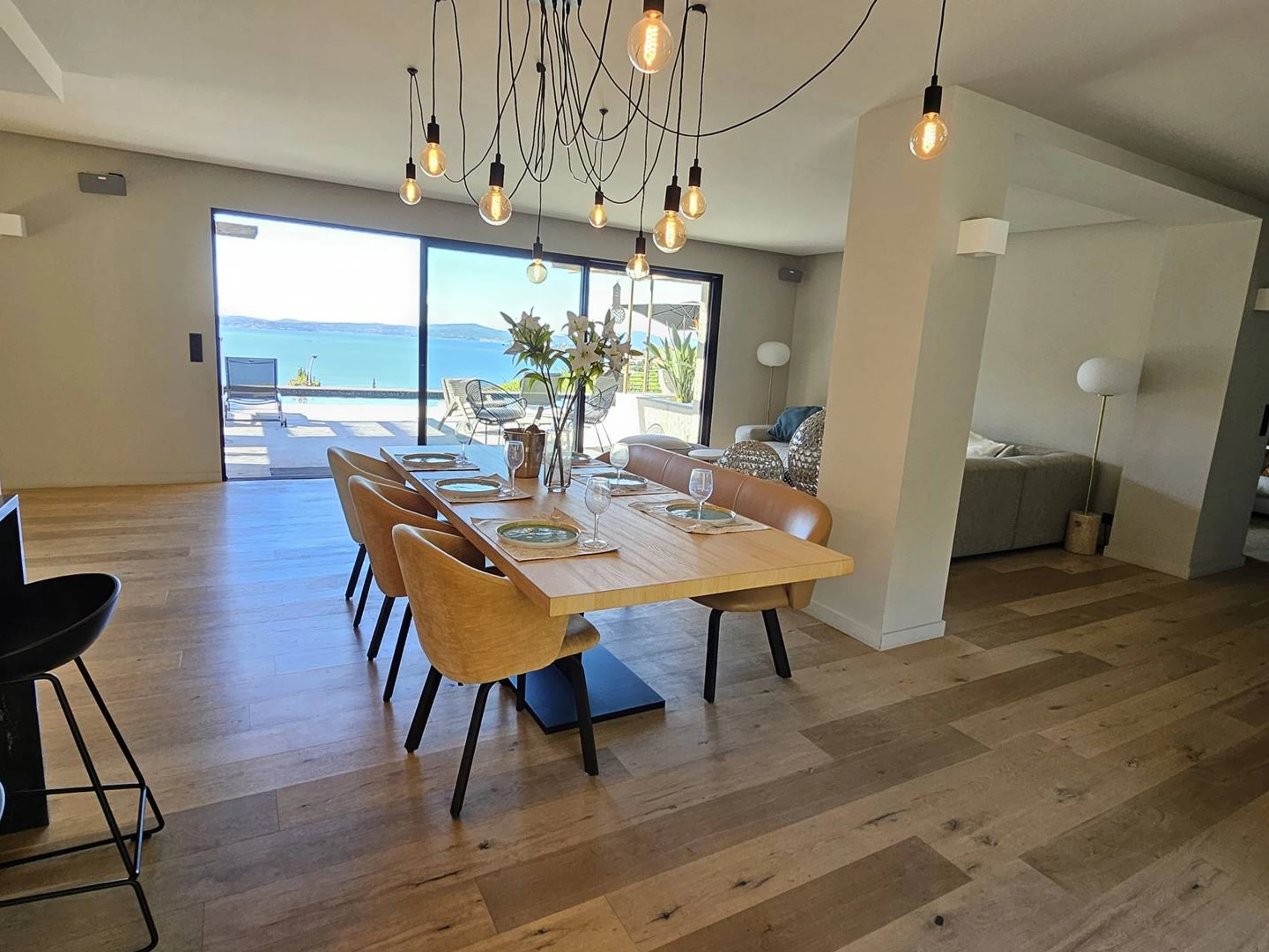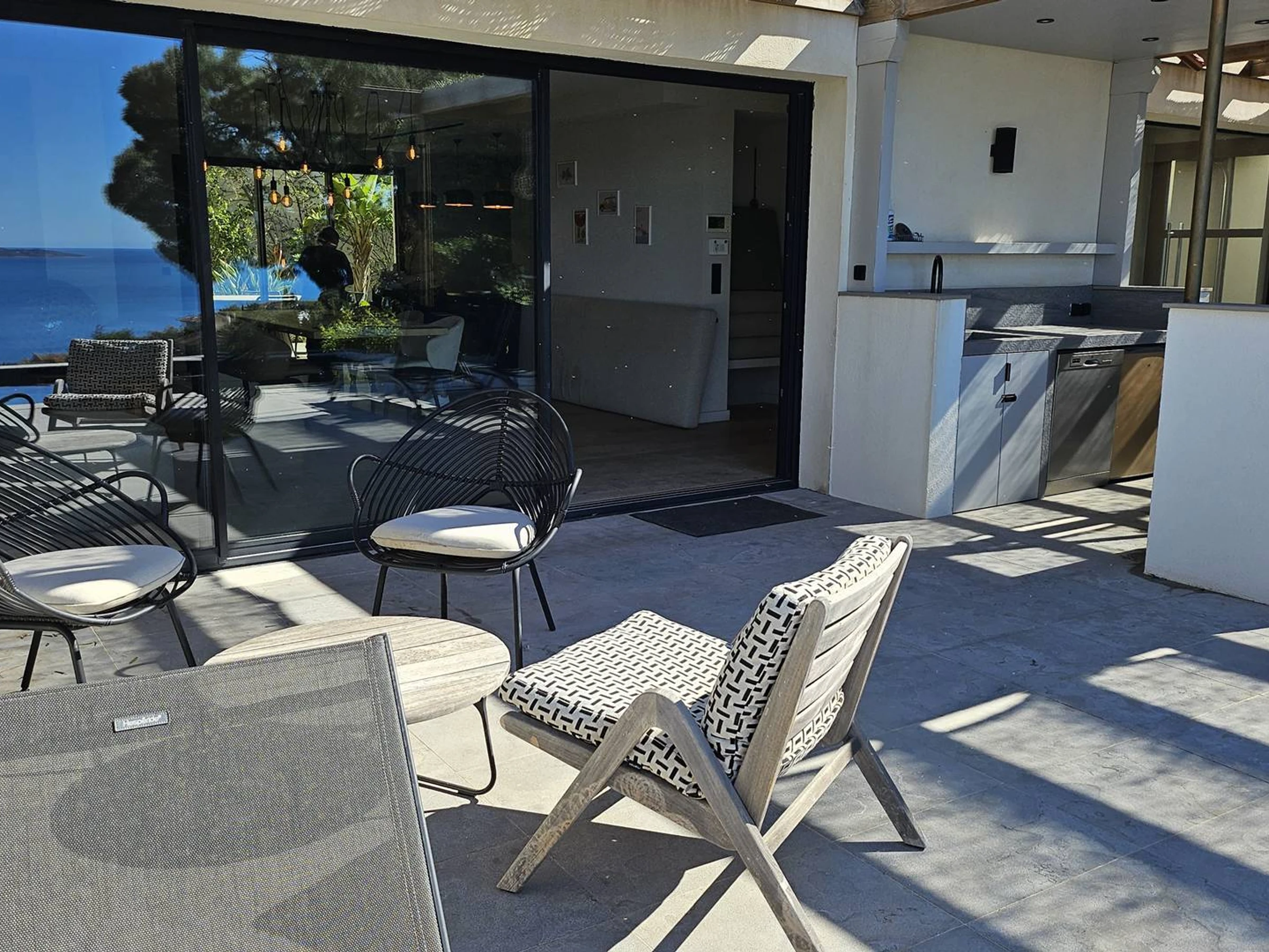 Les Issambres mit Blick auf St. Tropez Côte d'Azur: neue Master-Villa von 280 m² mit großen Erkerfenstern und Meerblick. Sie werden von der zeitgenössischen Architektur, dem privaten Swimmingpool von 3,5 x 10 m verzaubert sein fabelhafter Meerblick. Großes Wohnzimmer, Lesezimmer mit TV, voll ausgestattete amerikanische Küche, Waschmaschine, 2 Geschirrspüler, Eismaschine, 2 große Kühlschränke. Ausgestattet mit 4 Schlafzimmern mit Doppelbetten von 180 cm und 1 großen Schlafzimmer unter dem Hang mit 4 Betten von 90 cm, die einen Schlafsaal bilden, sowie einem Bett von 180 cm bietet es Platz für bis zu 14 Personen in Luxus und Modernität. Alle Zimmer sind mit Fernseher ausgestattet. Zahlreiche Duschräume und ein Badezimmer. Zauberhafte Terrasse am Pool mit dem Meer im Hintergrund. Sie verfügen außerdem über eine Sommerküche und ein Kohlenbecken auf der Terrasse, um die langen Sommerabende zu genießen und Ihre Freunde einzuladen. Garage und Parkplatz, eingezäuntes Grundstück und elektrisches Tor. Natürlich allgemeine Klimaanlage und Alarmanlage. Ideal gelegen, 2 km vom Meer und dem Dorf entfernt. Wäscheverleih auf Anfrage. Auf Anfrage akzeptieren wir gut erzogene und angepasste Tiere. Beleuchteter und freundlicher Pétanque-Platz.