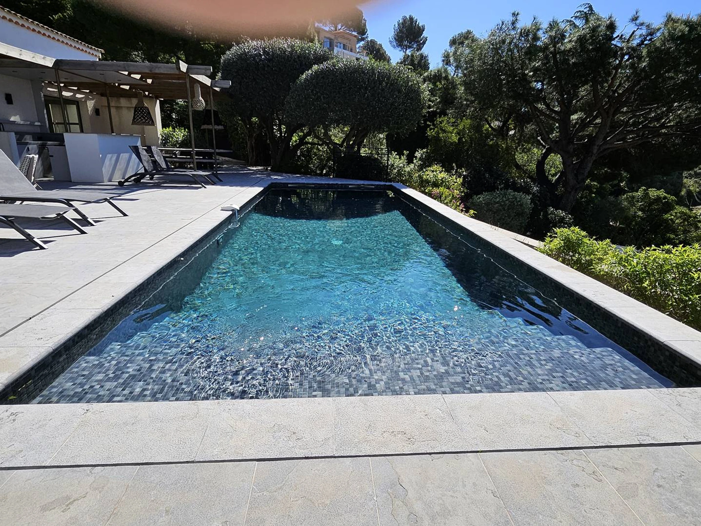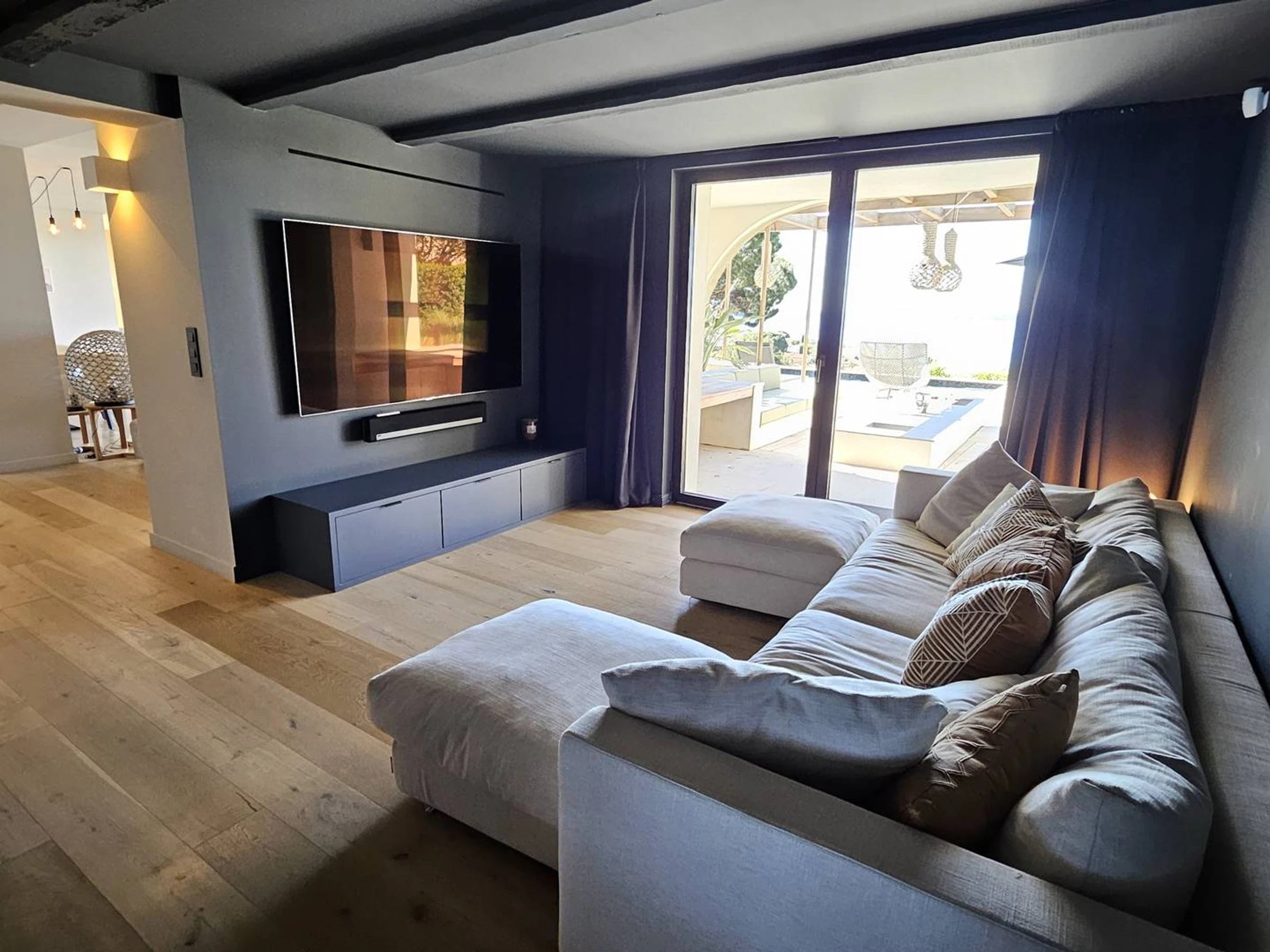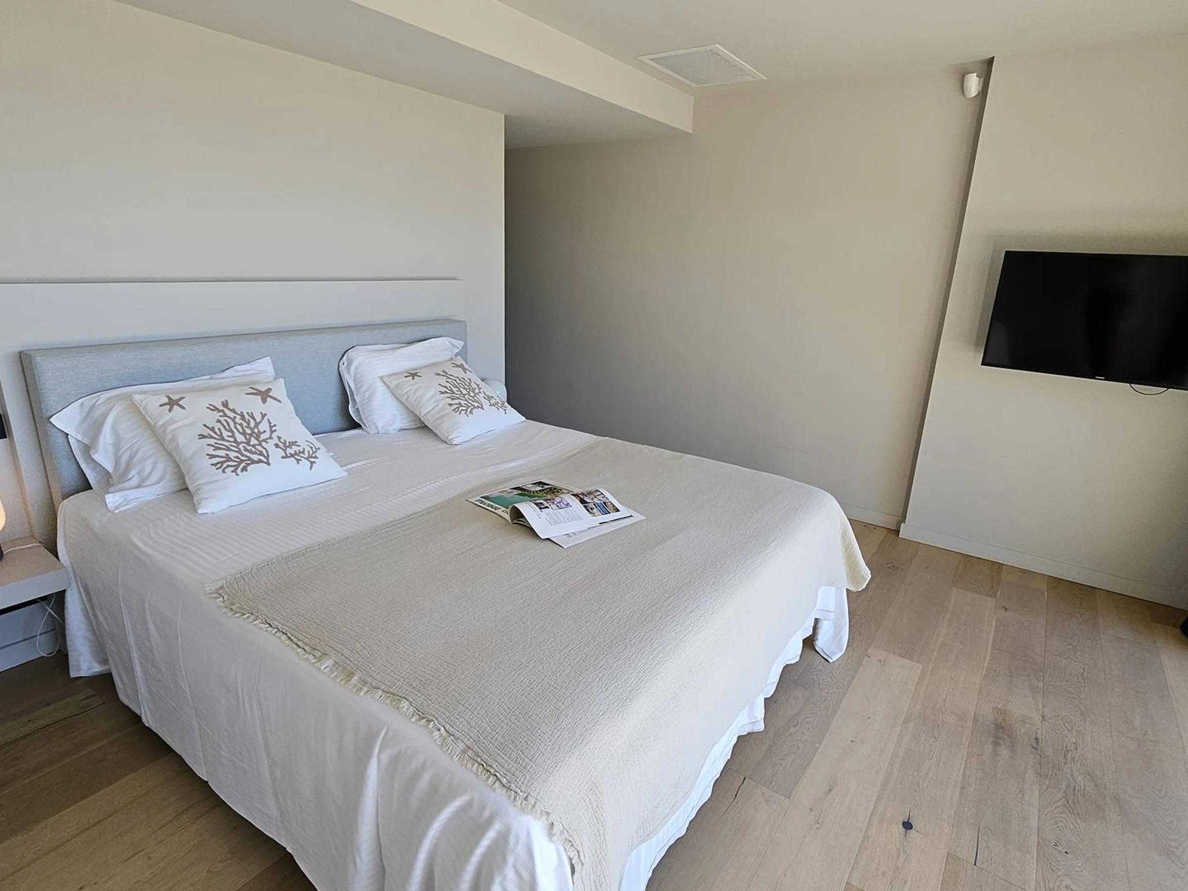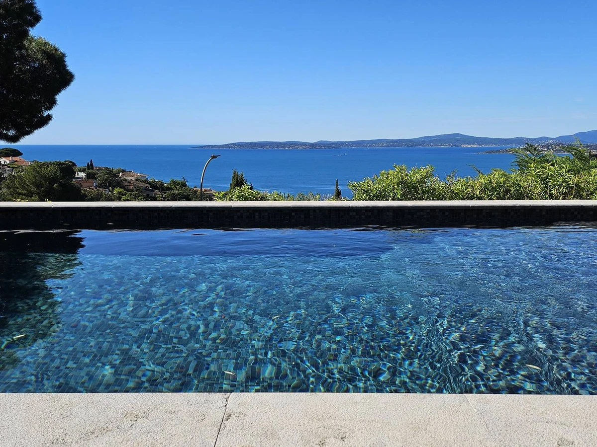 Les Issambres mit Blick auf St. Tropez Côte d'Azur: neue Master-Villa von 280 m² mit großen Erkerfenstern und Meerblick. Sie werden von der zeitgenössischen Architektur, dem privaten Swimmingpool von 3,5 x 10 m verzaubert sein fabelhafter Meerblick. Großes Wohnzimmer, Lesezimmer mit TV, voll ausgestattete amerikanische Küche, Waschmaschine, 2 Geschirrspüler, Eismaschine, 2 große Kühlschränke. Ausgestattet mit 4 Schlafzimmern mit Doppelbetten von 180 cm und 1 großen Schlafzimmer unter dem Hang mit 4 Betten von 90 cm, die einen Schlafsaal bilden, sowie einem Bett von 180 cm bietet es Platz für bis zu 14 Personen in Luxus und Modernität. Alle Zimmer sind mit Fernseher ausgestattet. Zahlreiche Duschräume und ein Badezimmer. Zauberhafte Terrasse am Pool mit dem Meer im Hintergrund. Sie verfügen außerdem über eine Sommerküche und ein Kohlenbecken auf der Terrasse, um die langen Sommerabende zu genießen und Ihre Freunde einzuladen. Garage und Parkplatz, eingezäuntes Grundstück und elektrisches Tor. Natürlich allgemeine Klimaanlage und Alarmanlage. Ideal gelegen, 2 km vom Meer und dem Dorf entfernt. Wäscheverleih auf Anfrage. Auf Anfrage akzeptieren wir gut erzogene und angepasste Tiere. Beleuchteter und freundlicher Pétanque-Platz.