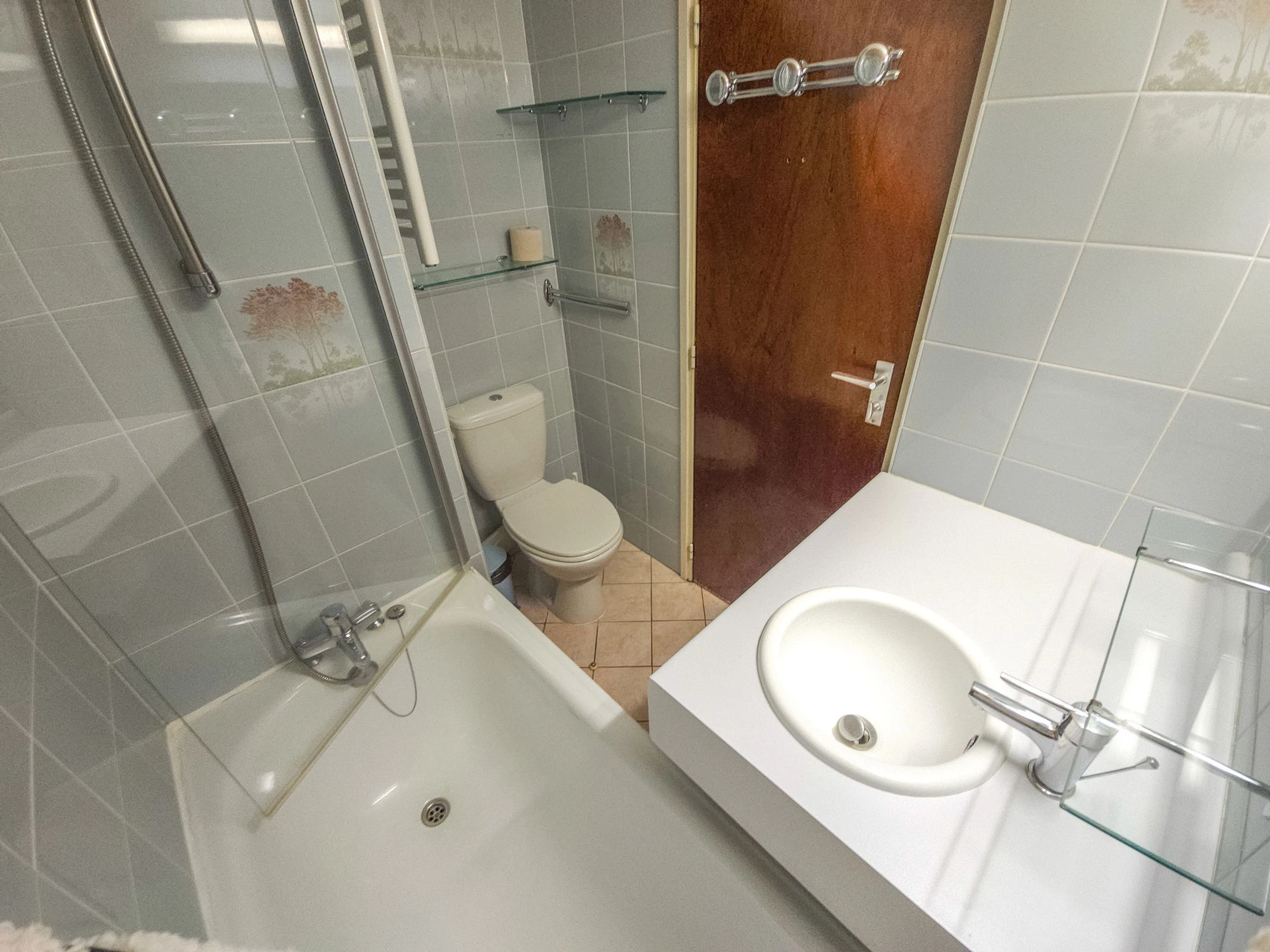 Badezimmer: Waschbecken, Badewanne, WC, Handtuchtrockner, Föhn, Waschmaschine (3 kg)