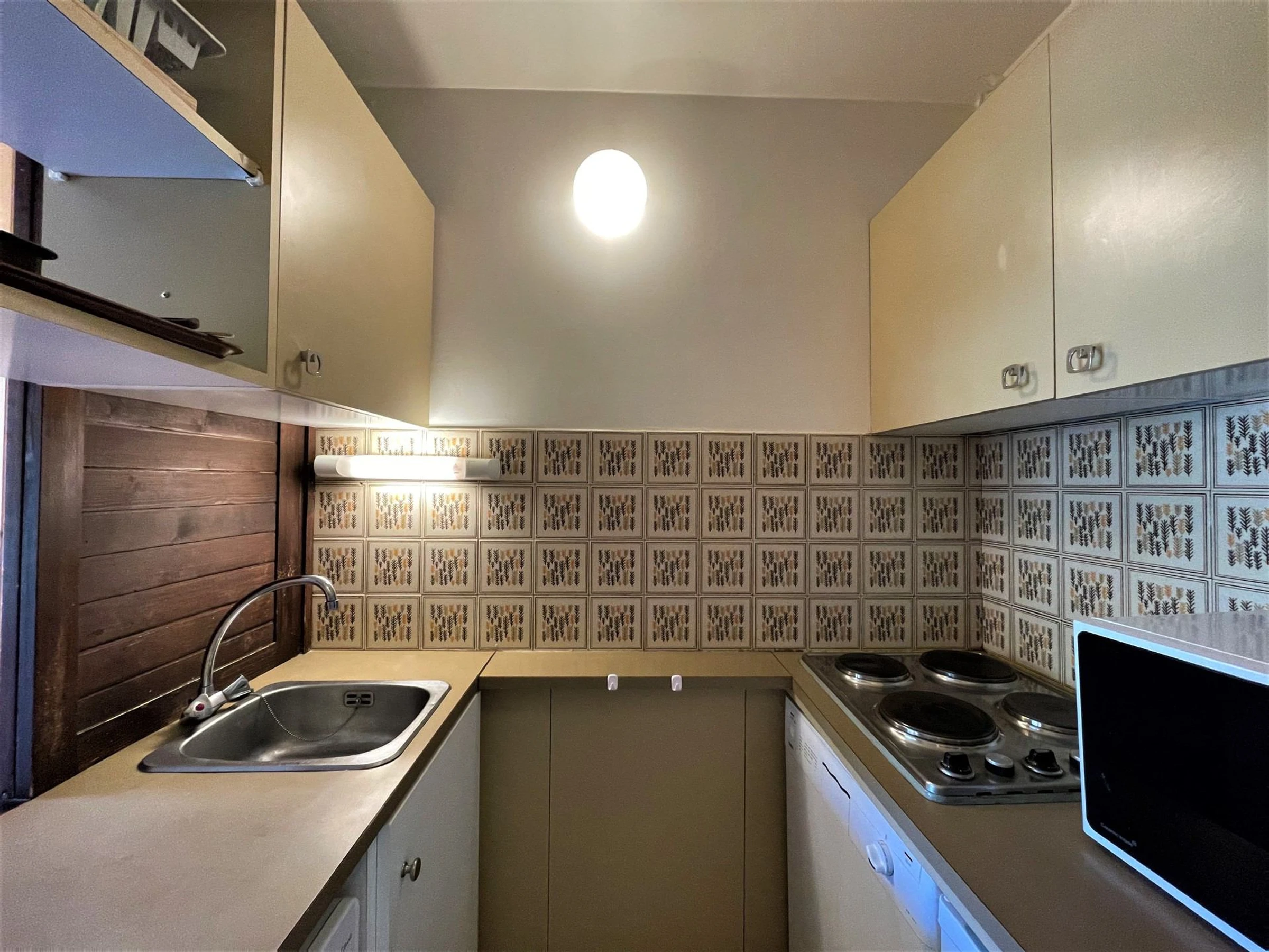 Wohnzimmer: 1 Einzelbett, 1 Ausziehbett, 1 Etagenbett (2 x 80 cm), abtrennbar durch eine mobile Trennwand, Fernseher