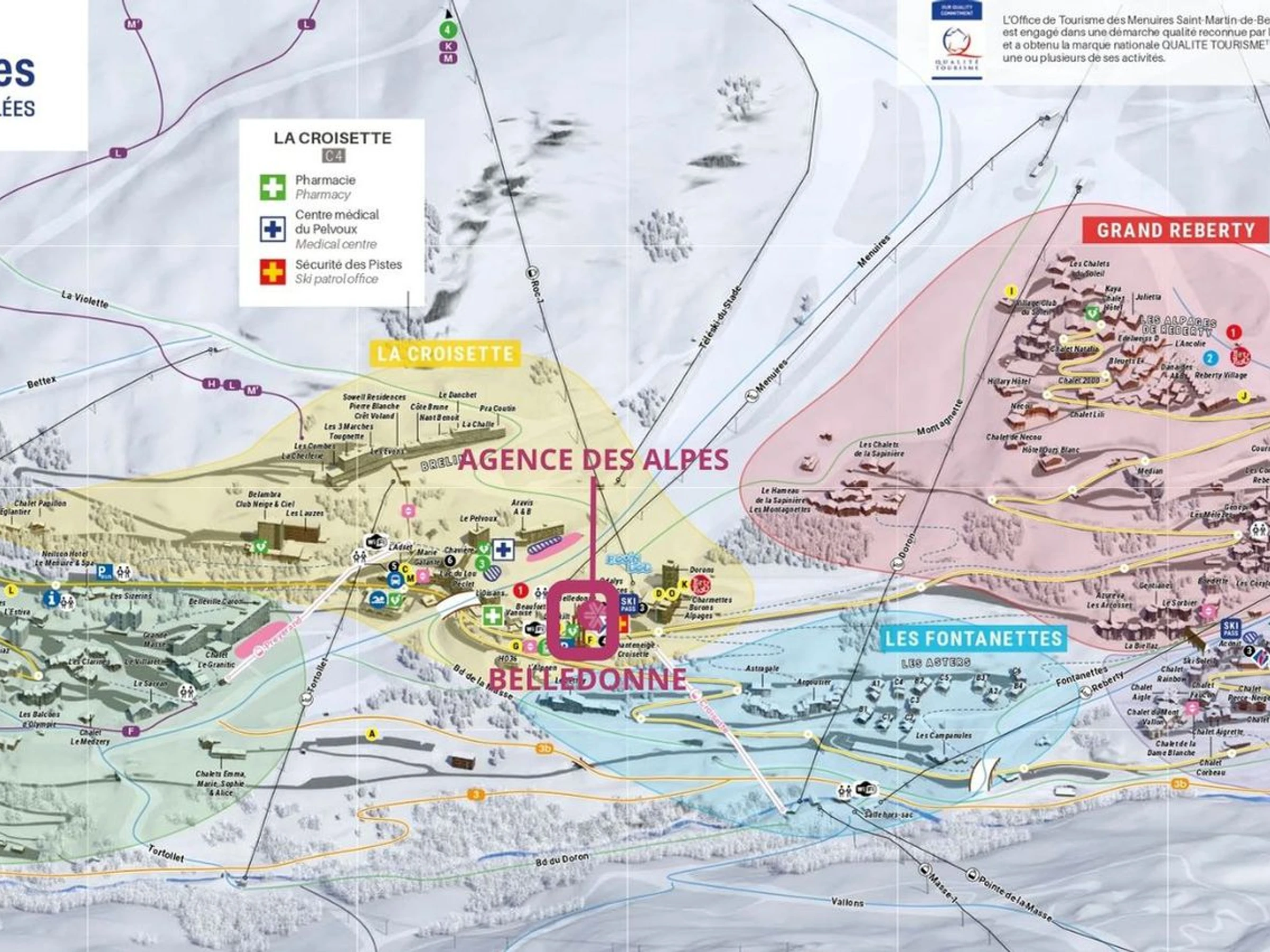 Die Residenz "Belledonne" ohne Aufzug bietet eine hervorragende Lage im Herzen der Croisette, direkt vor den Geschäften, Dienstleistungen und am Fuße der Pisten. Die Abfahrten der Skischule sind ebenfalls nur 2 Schritte entfernt.