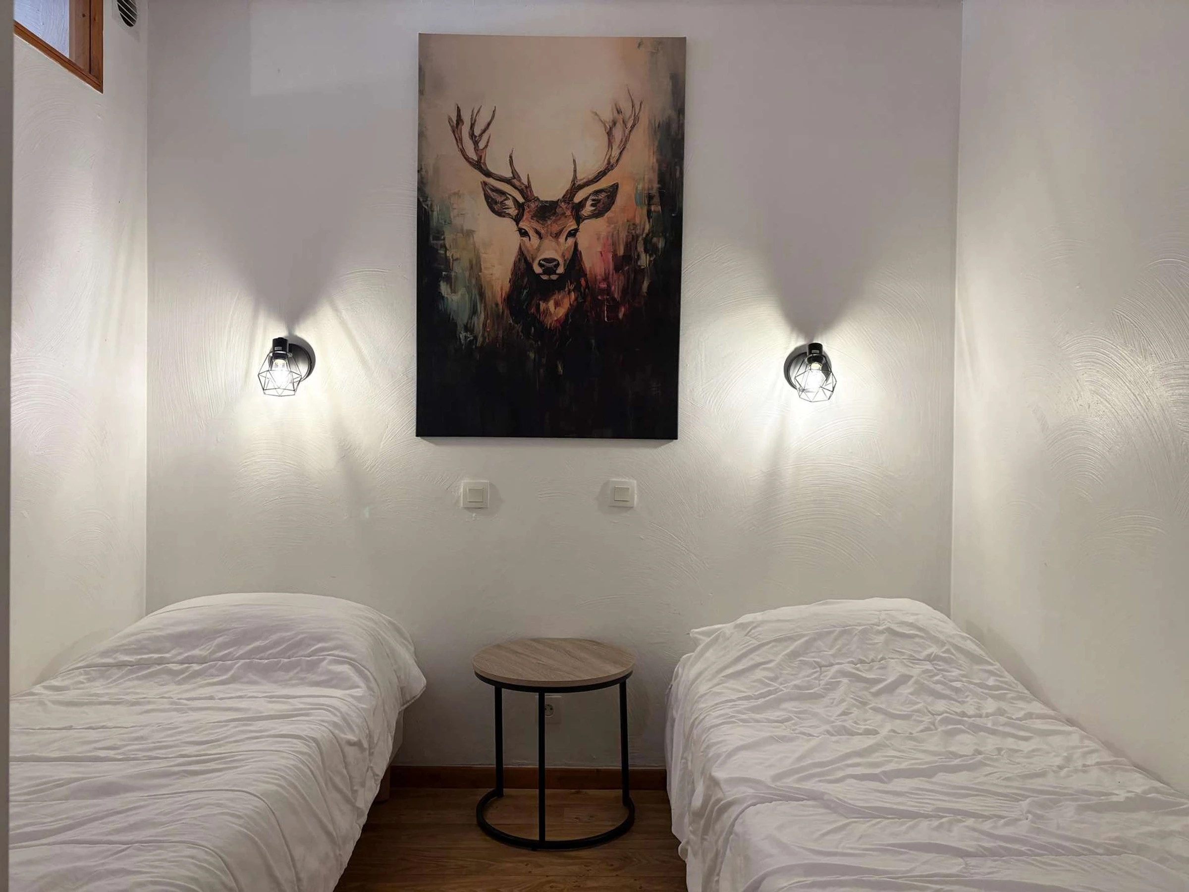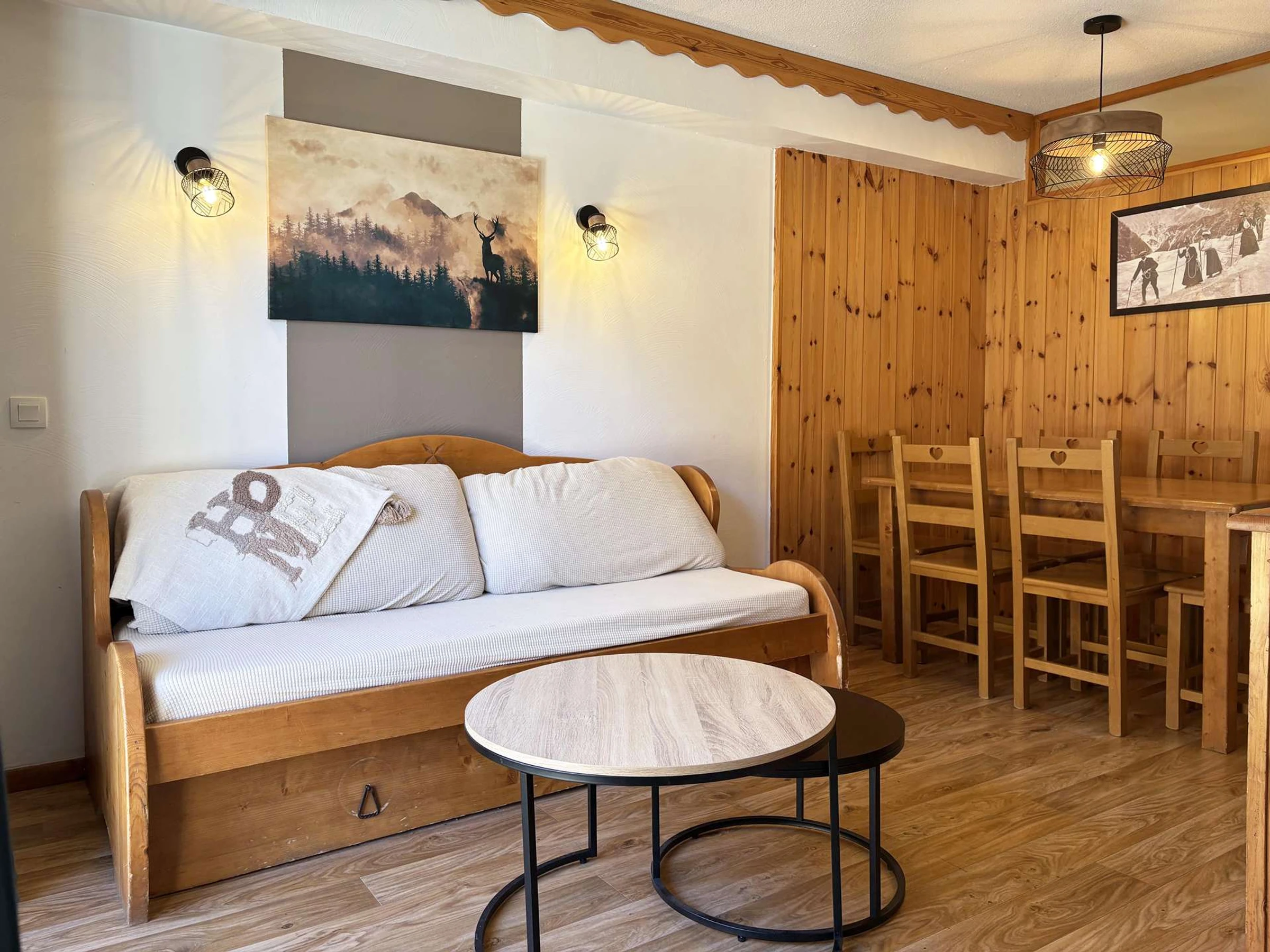 LES ORRES 1800 m. Sehr angenehme Wohnung für 6 Personen, Zugang zum beheizten Außenpool und zur Sauna, bestehend aus einer Eingangshalle, einem halboffenen Schlafzimmer mit 2 Einzelbetten, einem Wohnzimmer mit 2 ausziehbaren Einzelbetten, einem Schlafzimmer mit 1 Doppelbett, einem ausgestatteter Küchenbereich, eine Spülmaschine, offen zum Wohnzimmer, ein Badezimmer und eine separate Toilette. Grosser Balkon mit Blick auf die Piste, Ostausrichtung. Skibox in der Residenz.