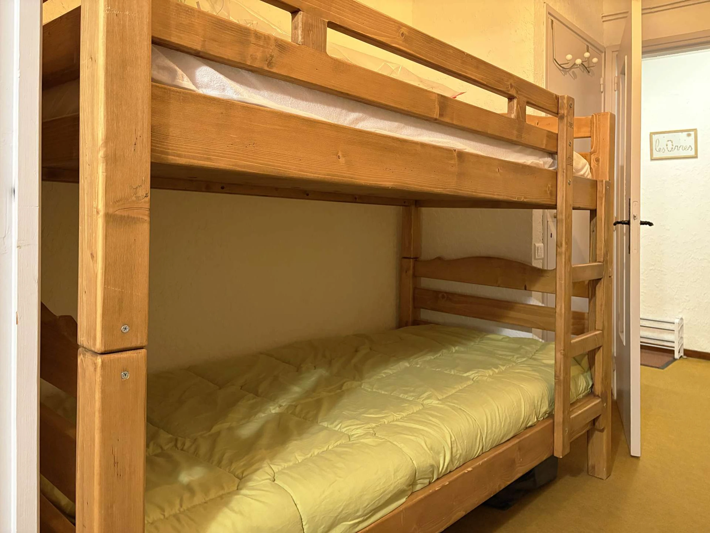 Die Wohnung besteht aus einem Wohnzimmer mit einem Schlafsofa mit Zugang zum Balkon, einem Küchenbereich mit Geschirrspüler, einer Bergecke mit 2 Etagenbetten, einem Schlafzimmer mit 1 Doppelbett, Ankleidezimmer und Balkon, einem zweiten Schlafzimmer mit 2 Einzelsofas Betten und Balkon, ein Badezimmer mit Waschmaschine und Trockner, eine separate Toilette.