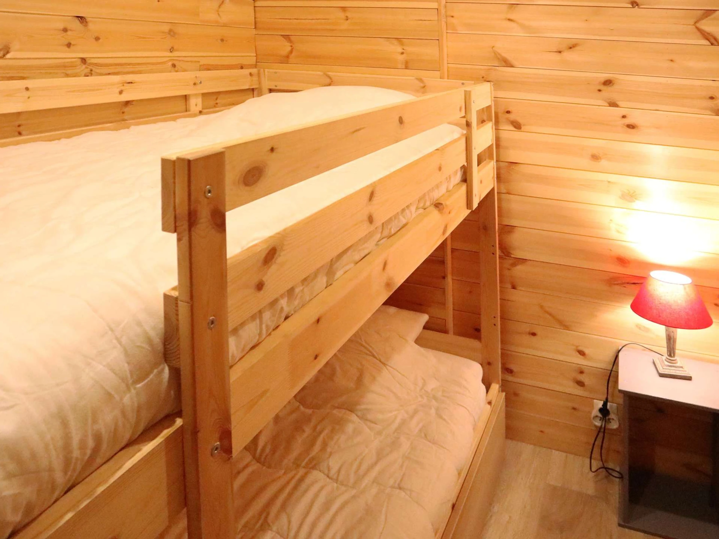 Schönes Apartment für 6 Personen, bestehend aus einer Eingangshalle, einem Wohnzimmer mit Doppelschlafcouch, einem Duschraum mit Toilette, einem zum Wohnzimmer hin offenen Küchenbereich, einem Schlafzimmer mit Doppelbett, einem Schlafbereich mit zwei Etagenbetten und einer großen Nord-West-Terrasse.