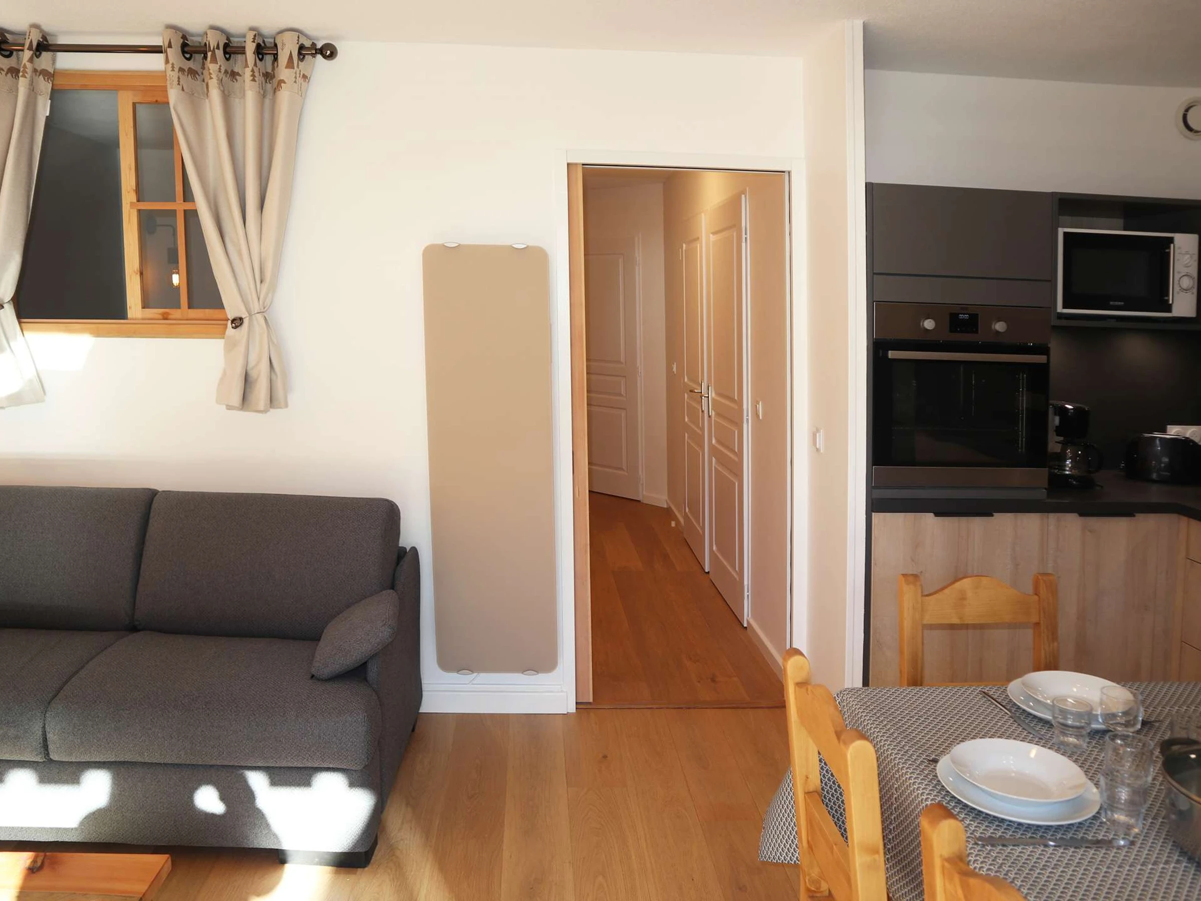 Ideale Lage – In einer 3-Sterne-Residenz, in der Nähe von Geschäften, direkter Ski-in/Ski-out-Zugang, Blick auf die Pisten, Süd-/Nordausrichtung, freier Zugang zu Schwimmbad und Sauna. Sehr schöne Wohnung im 1. Stock mit Aufzug, bestehend aus Eingangsbereich, 1. Schlafzimmer mit Doppelbett und Duschbad, großem Wohnzimmer mit Sofa, offener Küche, 2. Schlafzimmer mit Doppelbett, 3. Schlafzimmer mit Doppelbett, Badezimmer und separatem WC, Terrasse mit herrlichem Blick auf die Pisten und Balkon.
