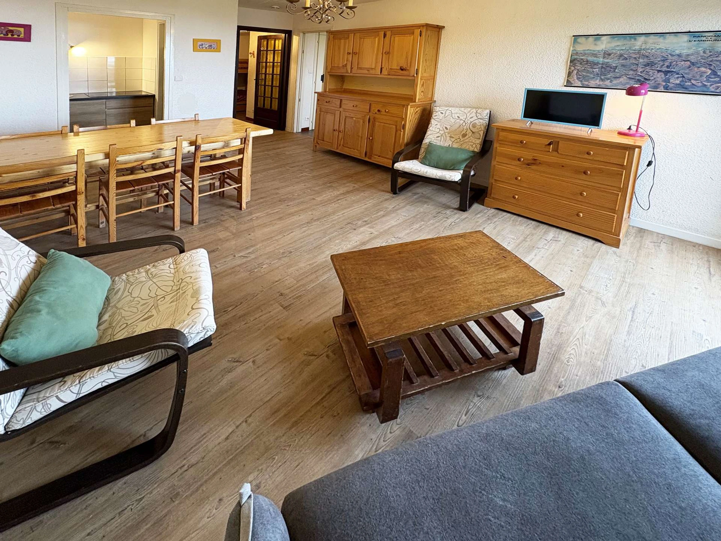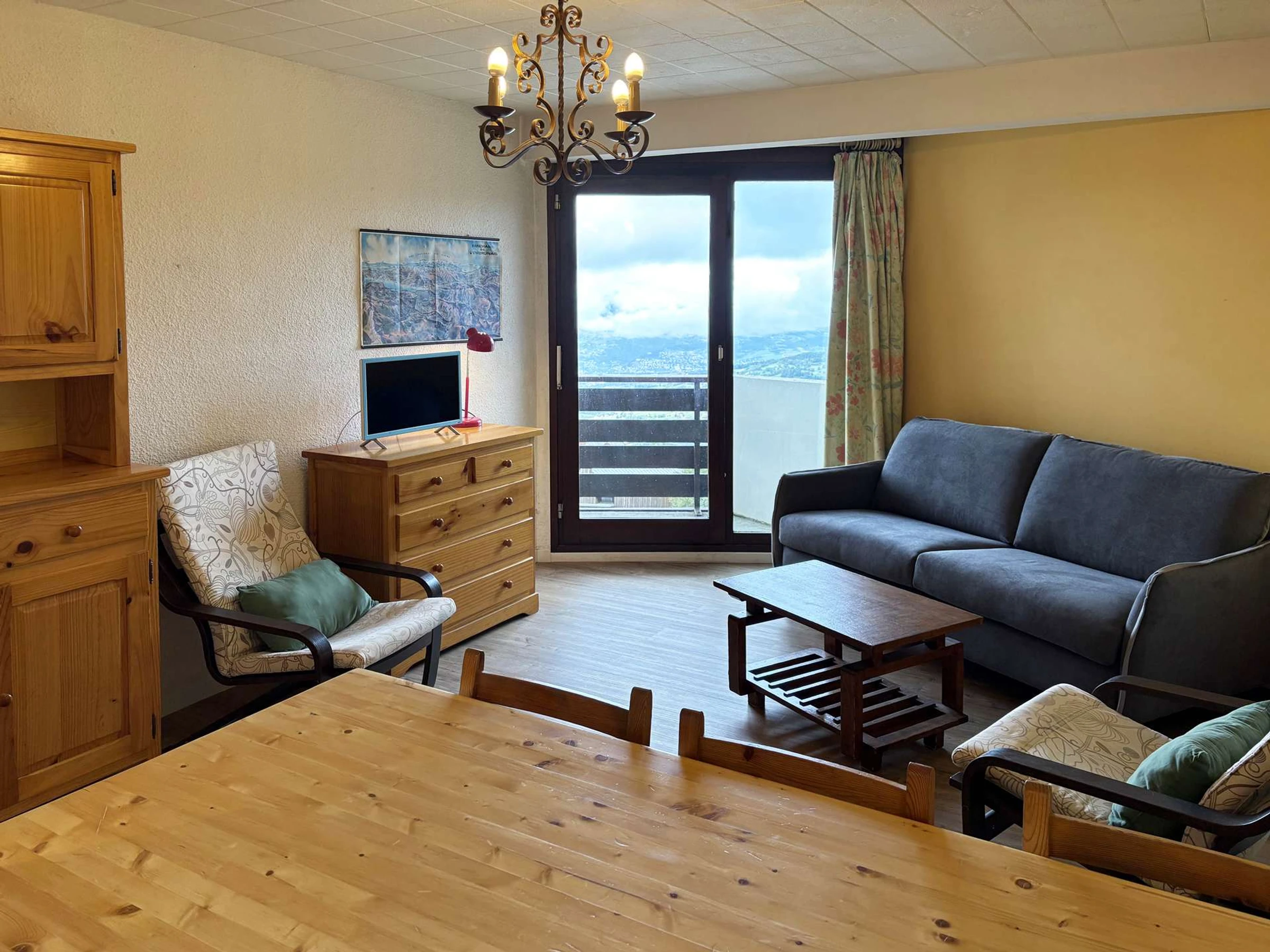 Residenz Les Cembros über dem Einkaufszentrum. Schöne Wohnung in sehr guter Lage im Zentrum des Resorts, über dem Einkaufszentrum im sechsten Stock, bestehend aus einer Bergecke mit 2 Etagenbetten, einem Wohnzimmer mit 1 Doppelschlafsofa, einem Schlafzimmer mit 2 Einzelbetten, einem Küchenbereich offen zum Wohnzimmer, ein Badezimmer und eine separate Toilette. Nach Westen ausgerichteter Balkon mit herrlicher Aussicht auf das Tal. Skibox in der Residenz.