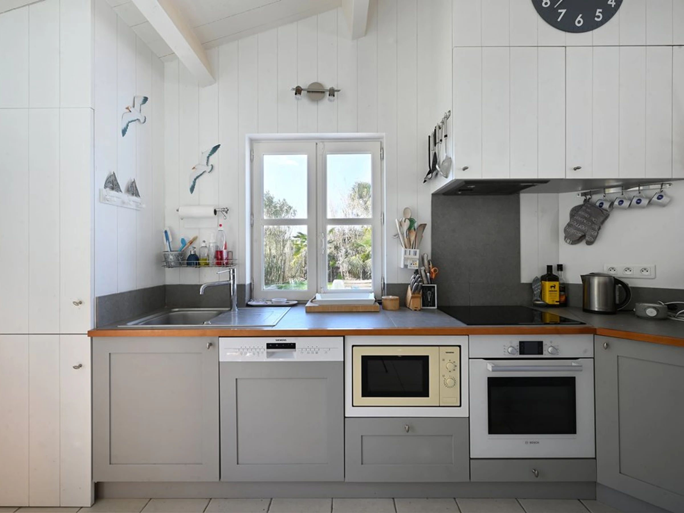- Ausgestattete Küche, Backofen, Mikrowelle, Induktionskochfeld, Wasserkocher, Kaffeemaschine, Geschirrspüler, Kühlschrank, Geschirr.