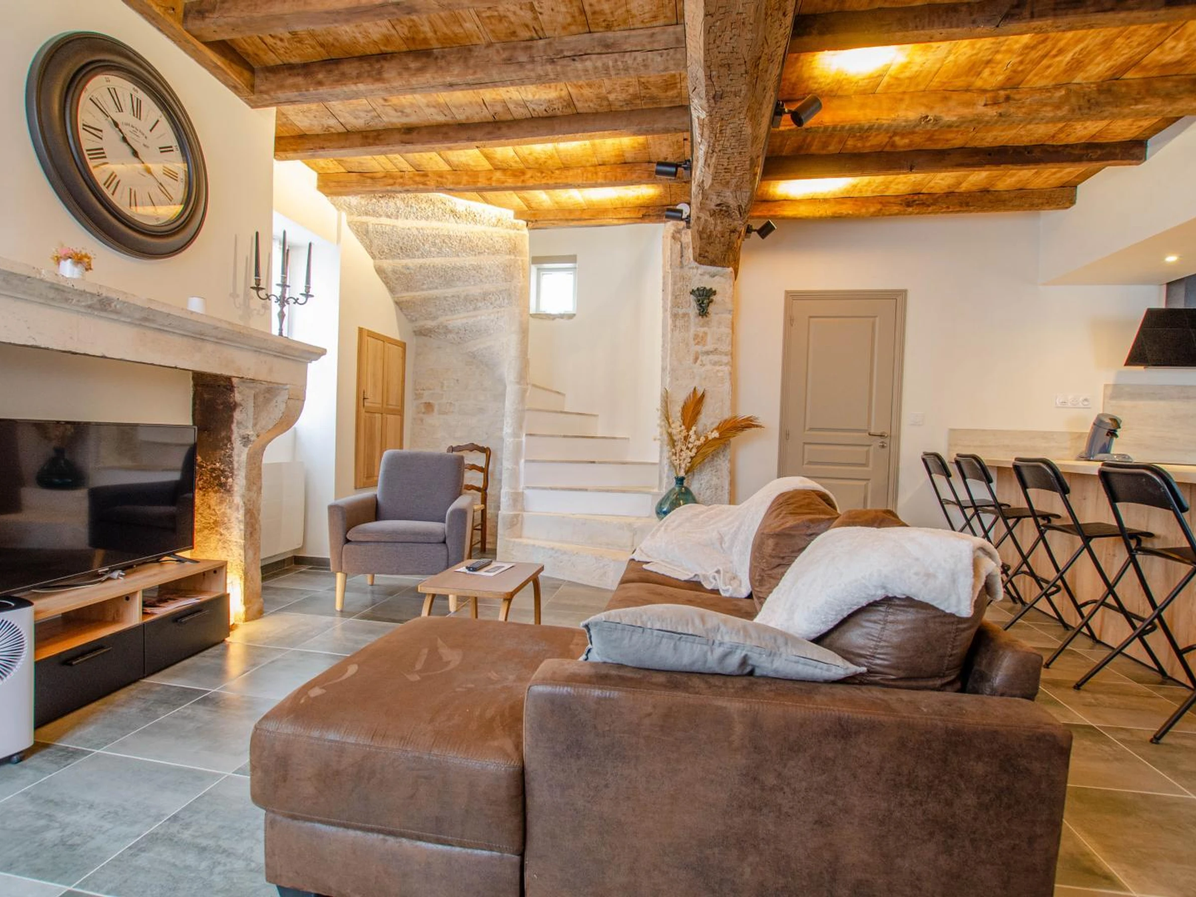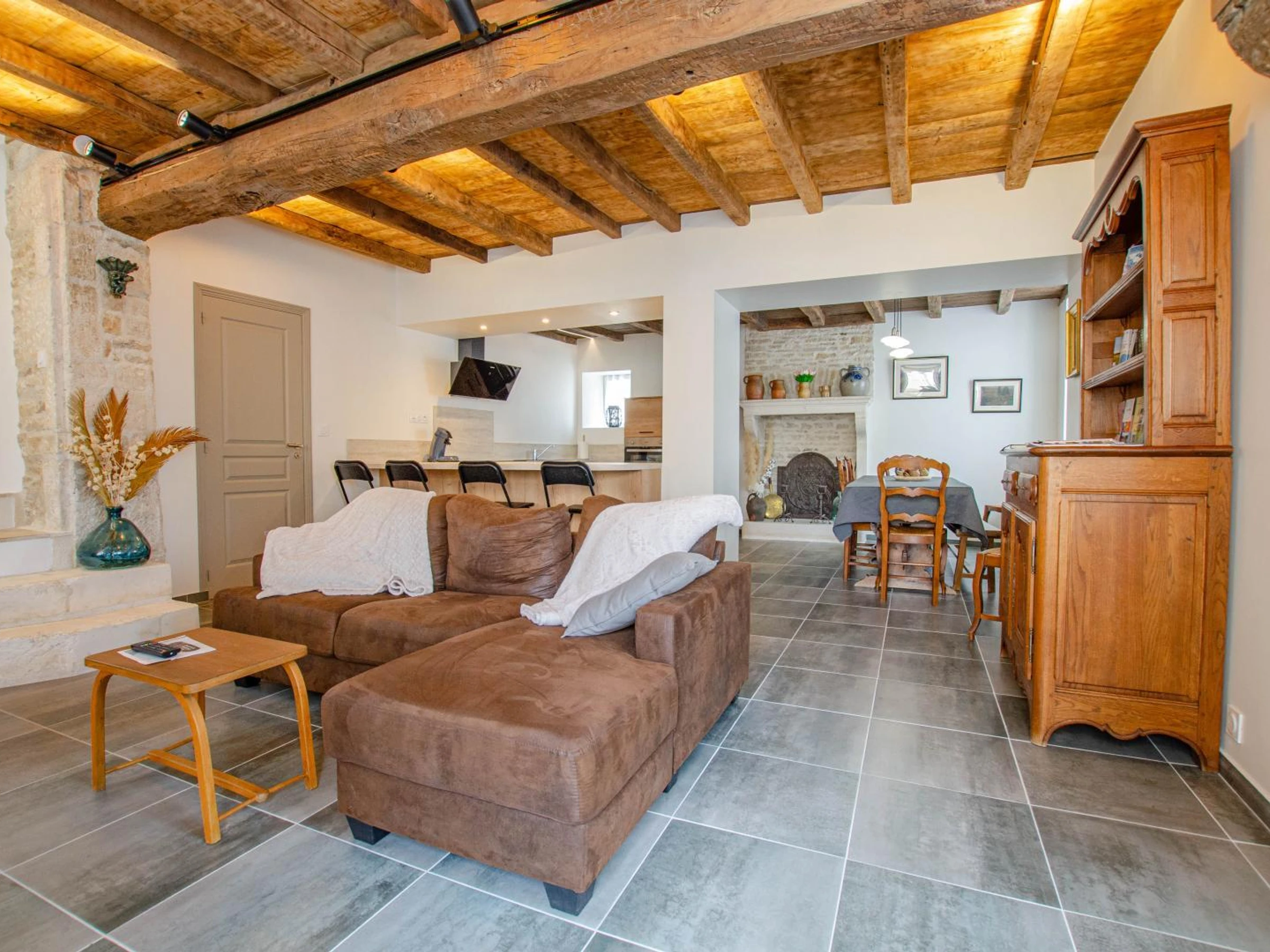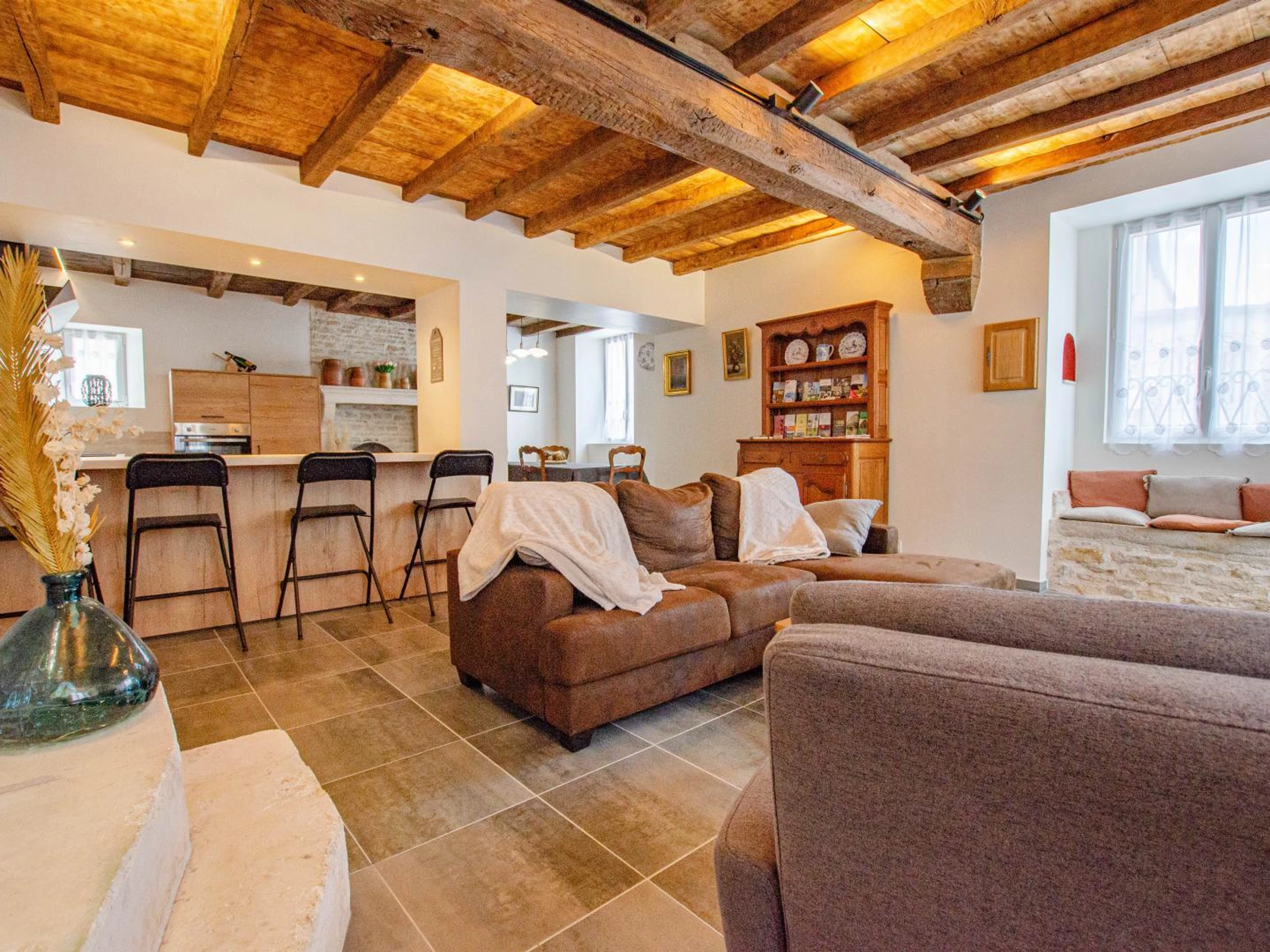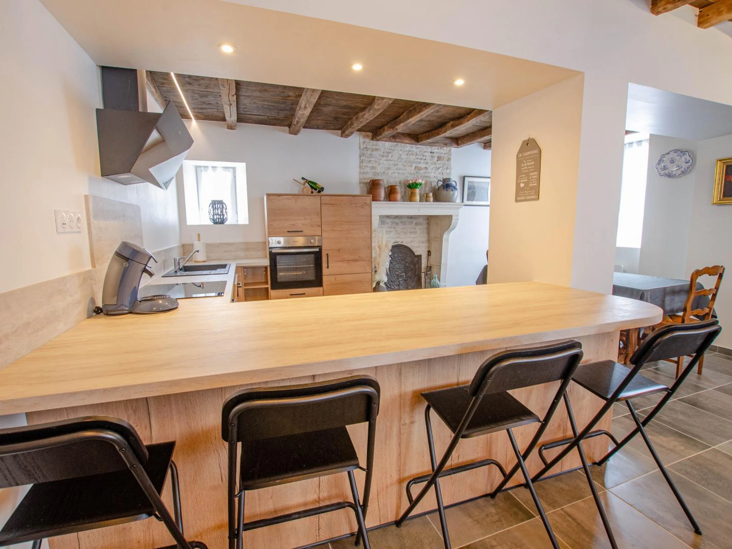 Im Erdgeschoss verfügen Sie über ein Wohnzimmer mit Wohn-/Ess-/ausgestattetem Küchenbereich, ein Duschbad (extra flache Duschwanne, Waschbecken, WC). Im Obergeschoss stehen Ihnen 2 Doppelzimmer (160x200 Betten) und ein Schlafbereich für 3 Personen (140x190 Bett + 90x190 Bett im Zwischengeschoss) sowie ein Duschbad (extra flache Duschwanne, Waschbecken, WC) zur Verfügung. Jedes Schlafzimmer hat einen eigenen Fernseher. Im Außenbereich steht Ihnen ein gemeinsamer Innenhof (mit der anderen Gite) zur Verfügung, der umzäunt ist: Gartenmöbel, Sonnenschirm, Ruheraum, Grill... Videoüberwachung nur am Eingang zum Innenhof. Kostenlose Parkplätze auf der Straße oder 50 Meter entfernt. Heizung, Strom, Bettwäsche, Handtücher und Endreinigung im Aufenthaltspreis inbegriffen. 45 Minuten von Troyes entfernt, vor den Toren Burgunds, heißen wir Sie in Les Riceys willkommen, im Herzen der Champagne, einem Ort voller Geschichte und Charakter. Entdecken Sie unsere Gîte, die an eine weitere Gîte für 7 Personen angrenzt (beide können für Gruppen von bis zu 15 Personen, einschließlich Babys und Kindern, privatisiert werden). Sie befindet sich in einem prächtigen Steinhaus aus dem 15. Jahrhundert, das geschmackvoll renoviert wurde und Authentizität mit modernem Komfort verbindet. Lassen Sie sich vom Charakter dieses außergewöhnlichen Gebäudes verzaubern: Sichtstein, alte Balken, warme Räume und durchdachte Einrichtung. Jedes Detail wurde auf Ihr Wohlbefinden ausgelegt. Die Gîte bietet allen Komfort, den Sie für einen Aufenthalt mit Familie oder Freunden in einer ruhigen und charmanten Umgebung benötigen. Sie genießen außerdem einfachen Zugang zu Geschäften, Restaurants und den Schätzen der Region: Champagner-Weinberge, idyllische Wanderwege, historisches Erbe und natürlich die berühmten Weinkeller Les Riceys.