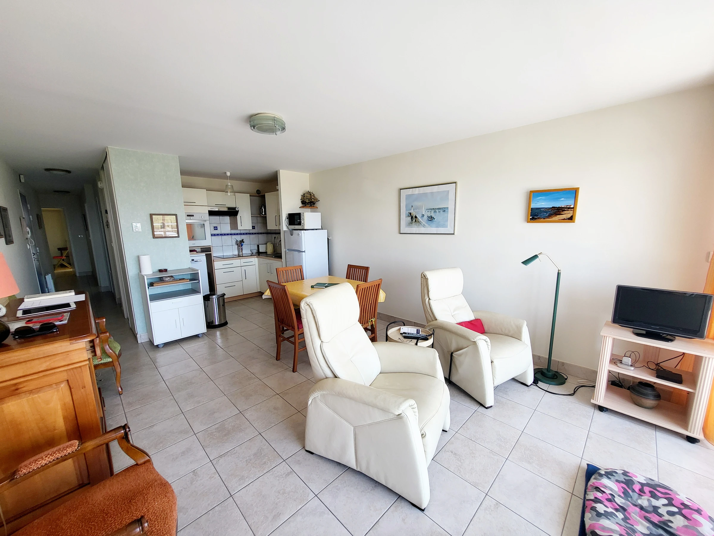 Diese Wohnung befindet sich im 1. Stock ohne Aufzug und besteht aus einem hellen Wohnzimmer mit Küchenbereich, das auf eine mit Gartenmöbeln ausgestattete Loggia führt. Es umfasst außerdem ein Schlafzimmer mit zwei 90-cm-Etagenbetten, ein zweites Schlafzimmer mit zwei 80-cm-Betten, ein Badezimmer und ein separates WC. In der Residenz erwartet Sie ein reservierter Parkplatz.
