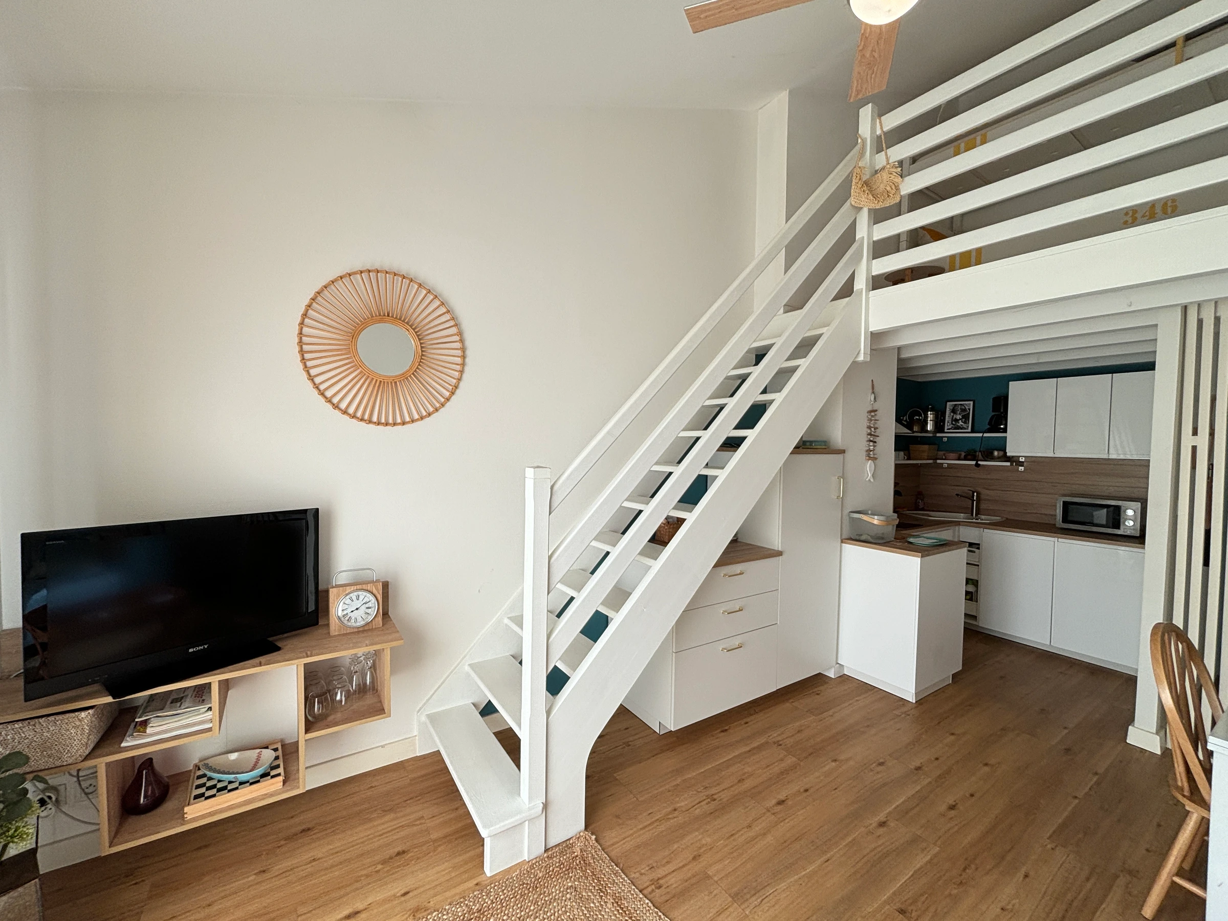 Im Herzen von Port Olona, einem Yachthafen in Les Sables d'Olonne, befindet sich dieses möblierte 2-Sterne-Ferienapartment im 2. Stock einer Wohnanlage mit Aufzug. Das Apartment verfügt über einen Eingangsbereich und ein Wohnzimmer mit Zugang zur Küche und Balkon. Das Wohnzimmer ist mit einem Sofa und einem Fernseher ausgestattet. Die Küche ist mit Kühlschrank, Geschirrspüler, Backofen, Mikrowelle, Kochfeld und Dunstabzugshaube ausgestattet. Es gibt ein Schlafzimmer mit einem Doppelbett (2 x 80 x 190 cm oder 160 x 190 cm) und eigenem Balkon. Ein Badezimmer mit Dusche und Waschmaschine ist ebenfalls vorhanden. Das Apartment verfügt über ein Zwischengeschoss über dem Wohnzimmer mit einem Etagenbett (2 x 90 x 190 cm) und einem ausziehbaren Schlafsofa (2 x 80 x 190 cm oder 160 x 190 cm). Ein Reisebett und ein Kindersitz sind ebenfalls verfügbar. Die Unterkunft verfügt über einen privaten Parkplatz. Ref. APPA 166. Bettwäsche wird nicht gestellt. Bei Ankunft zu zahlen: Kurtaxe und Kaution per Kreditkarte oder Scheck sowie eine Reinigungskaution von 107 €.
