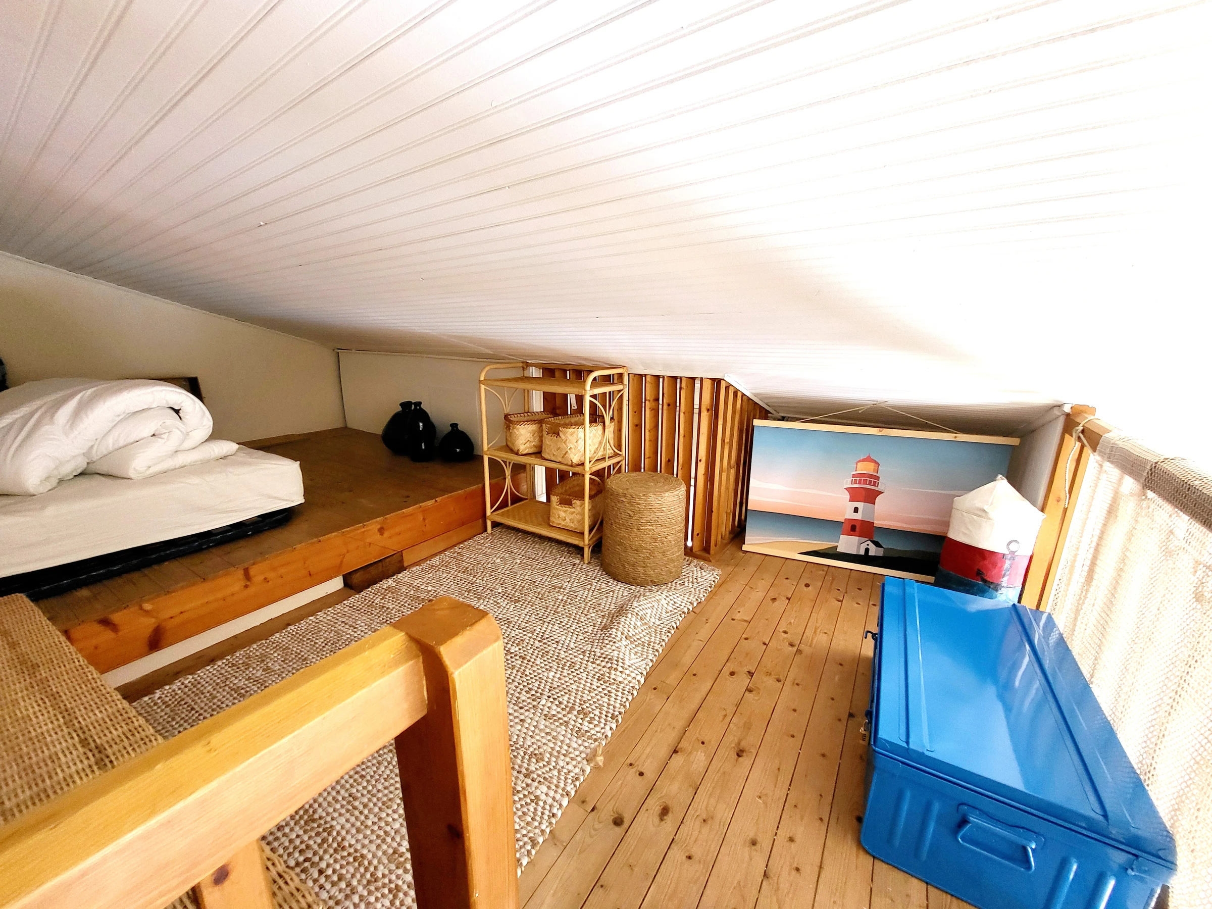 In diesem charmanten Fischerhaus mit Mezzanin erwarten Sie ein einladendes Wohnzimmer mit einem Schlafsofa (140 x 190), ein komfortables Schlafzimmer mit Kleiderschrank und Doppelbett (140 x 190) sowie eine voll ausgestattete offene Küche. Das Mezzanin bietet einen schönen Blick auf das Wohnzimmer. (HINWEIS: BENUTZEN SIE DEN SCHLAFBEREICH NICHT.) Außerdem stehen Ihnen ein Badezimmer und ein separates WC zur Verfügung.