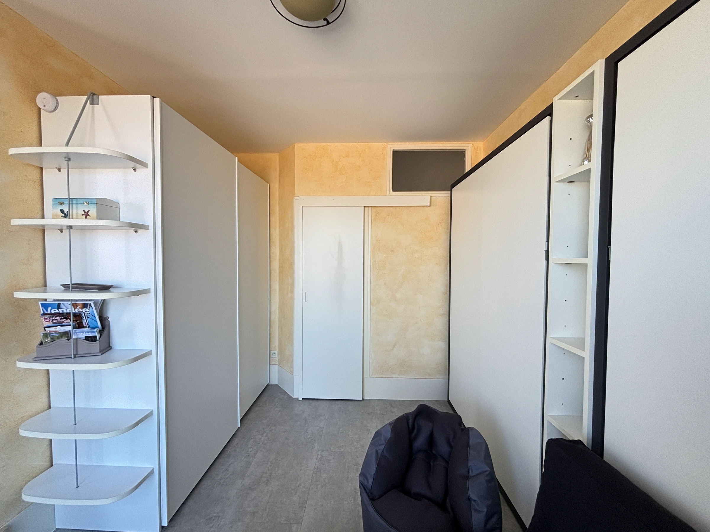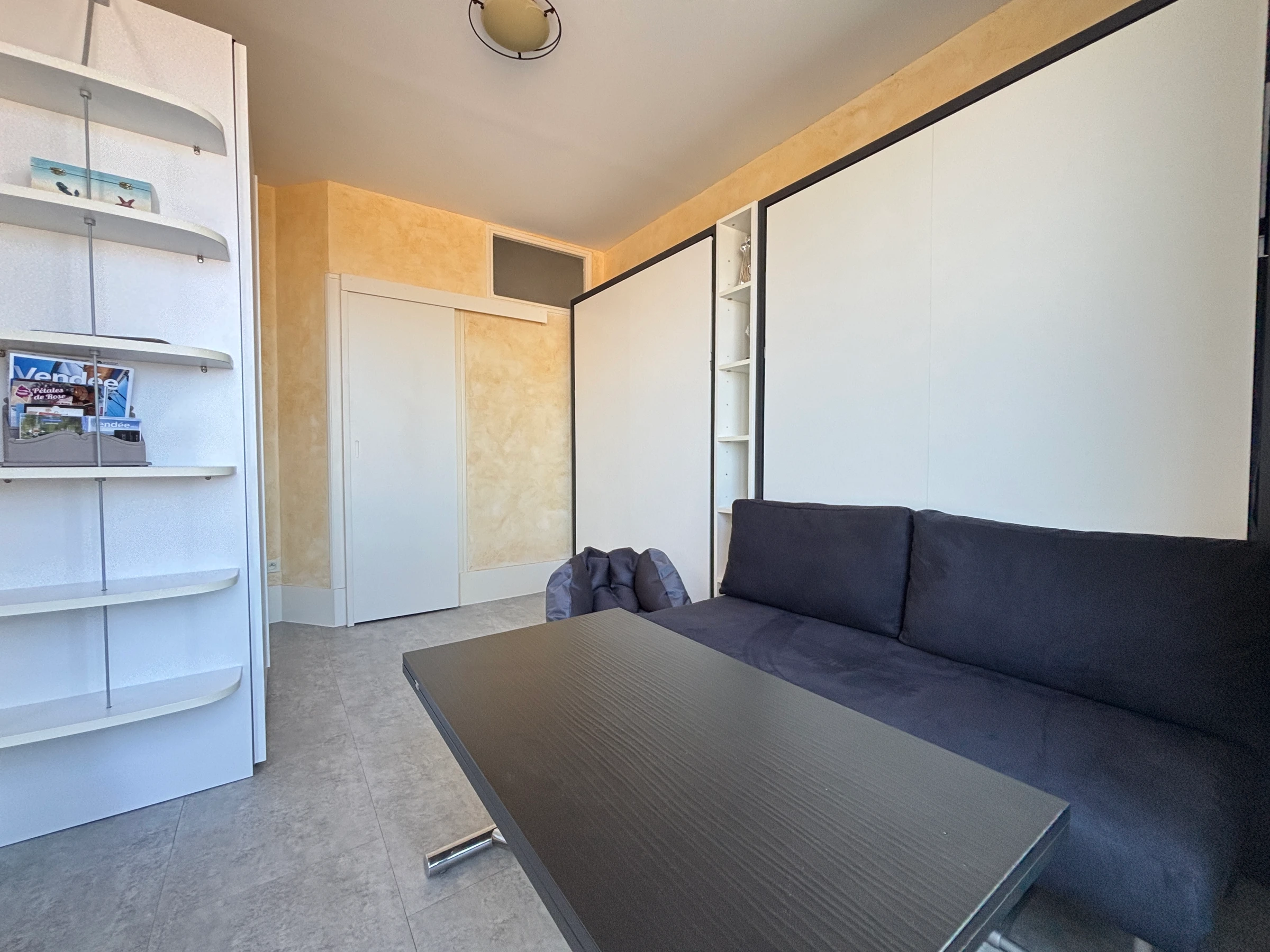 Diese möblierte 2-Sterne-Unterkunft befindet sich am Ufer von Les Sables d'Olonne im 1. Stock (ohne Aufzug). Das Studio verfügt über ein Wohnzimmer mit zwei 140 x 190 cm großen Wandbetten, einem Sofa, einem Tisch, einem Kleiderschrank und einem Fernseher. Vom Wohnzimmer aus gelangt man auf den Balkon und in die Küche mit Backofen, Kühlschrank, Cerankochfeld, Dunstabzugshaube und Mikrowelle. Das Badezimmer verfügt über eine Dusche und ein separates WC mit Kleiderschrank. Bettwäsche wird nicht gestellt. Ref. STUD 122