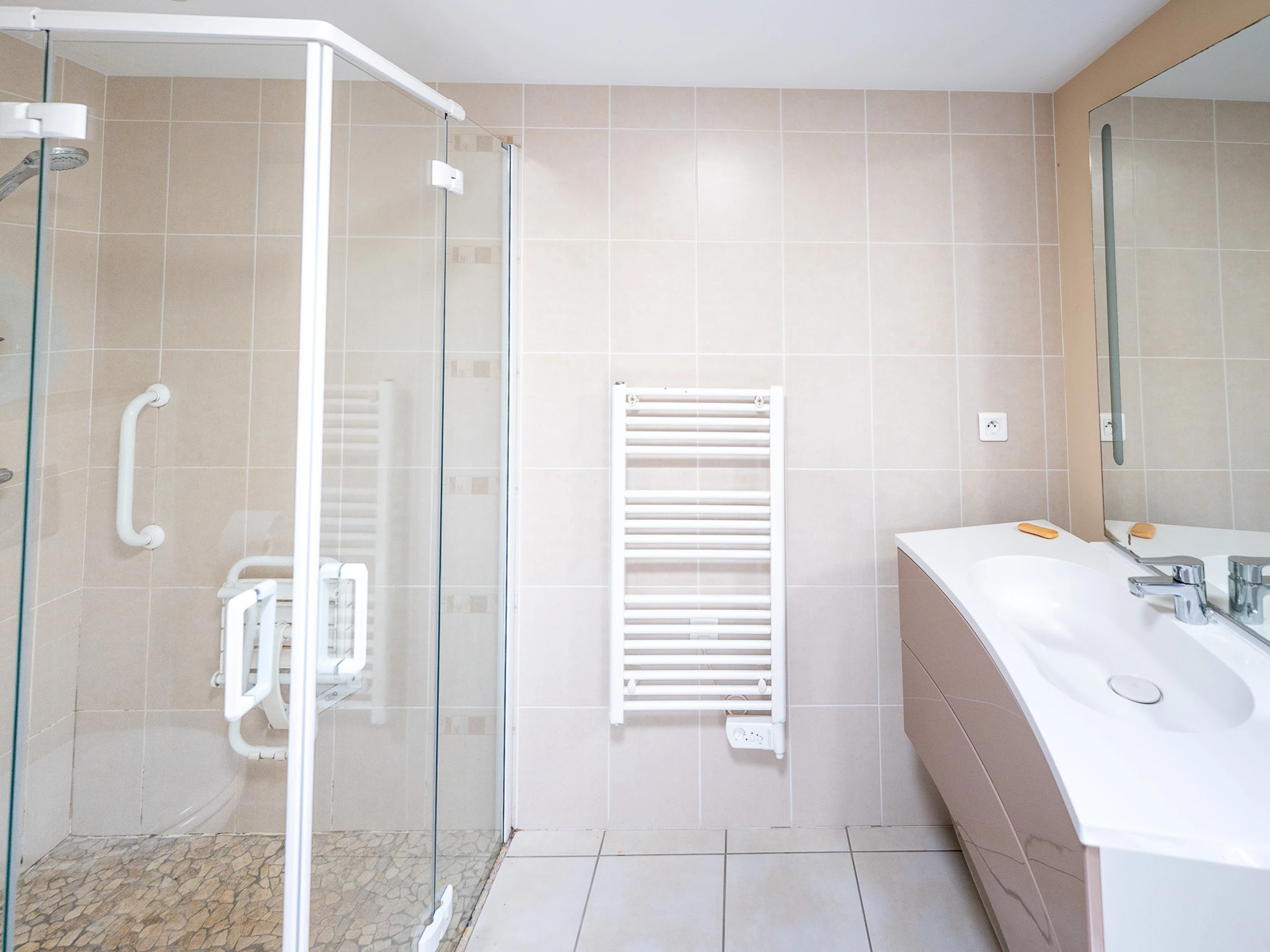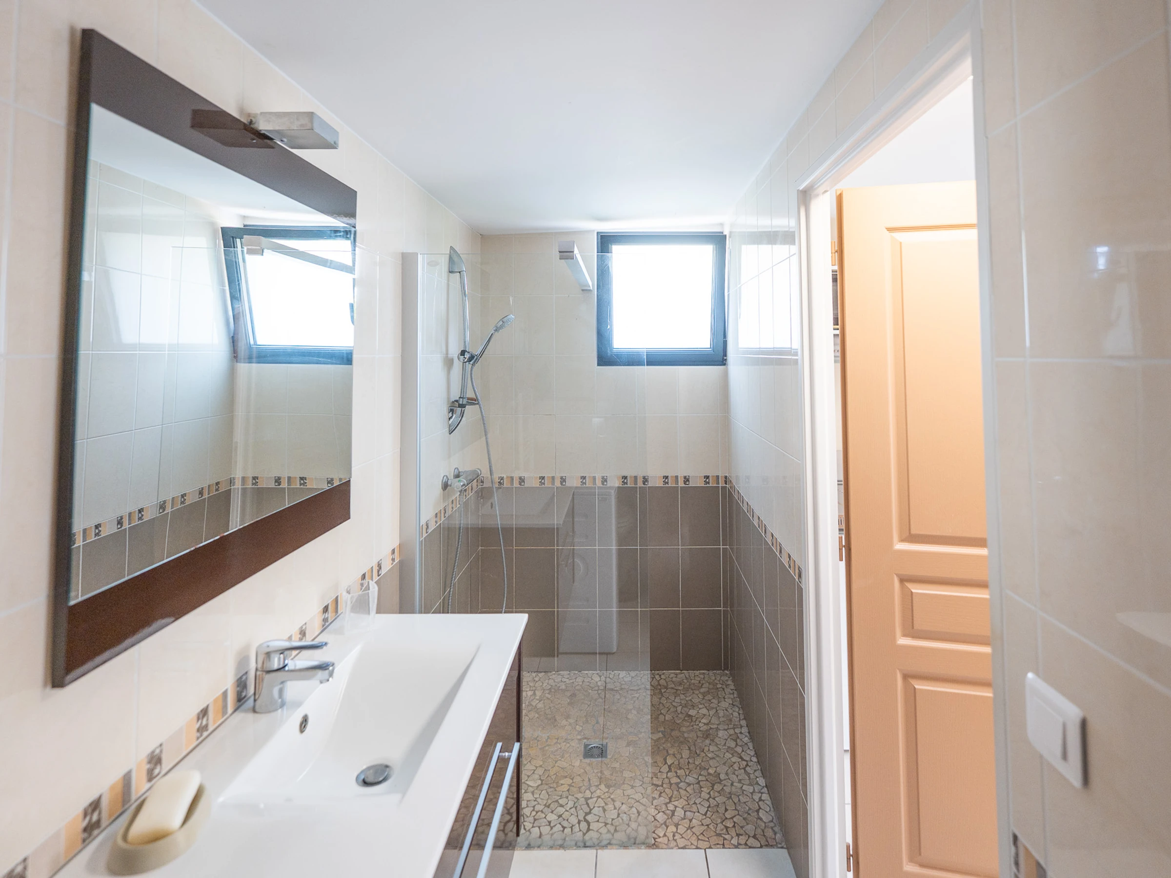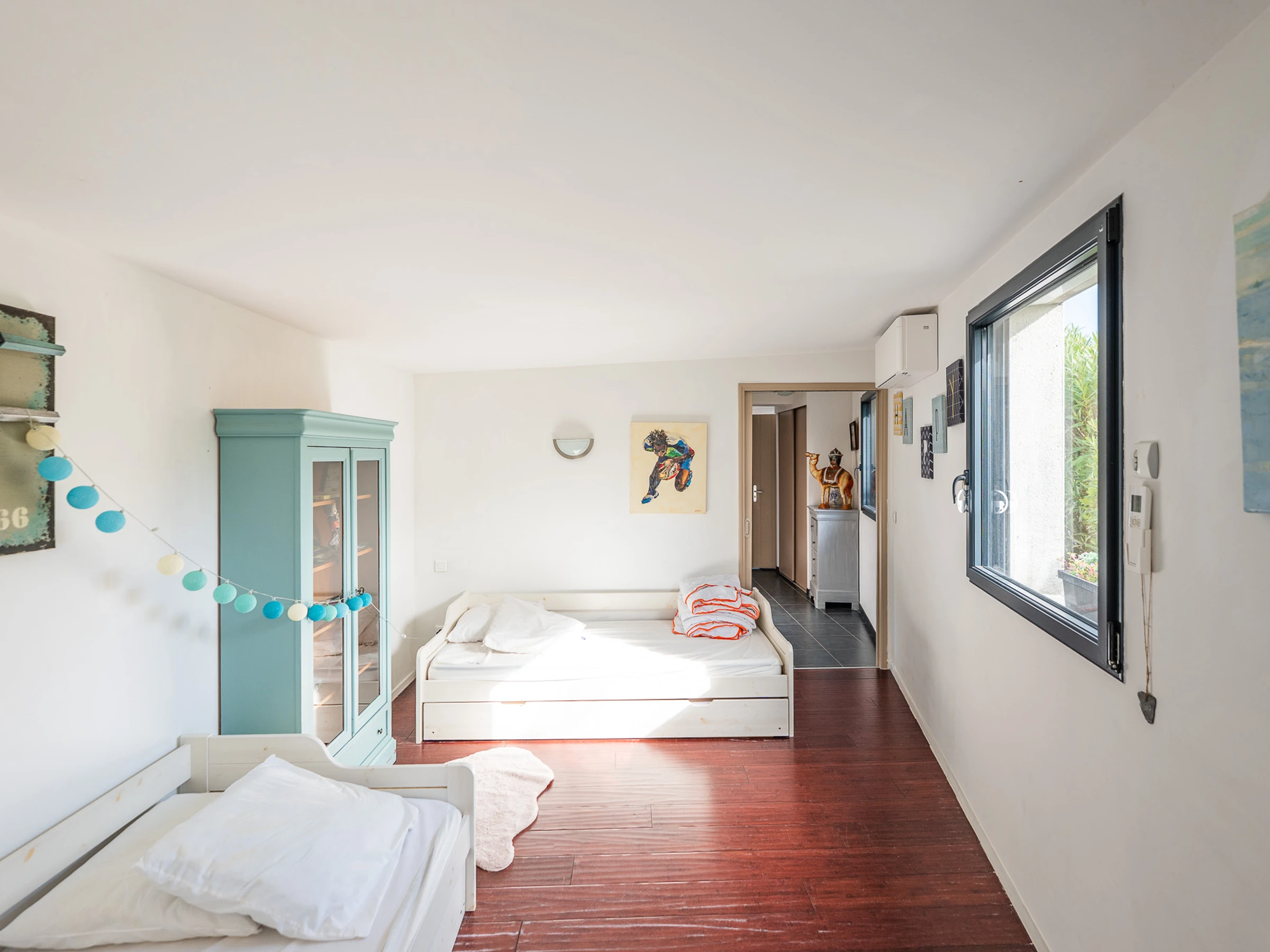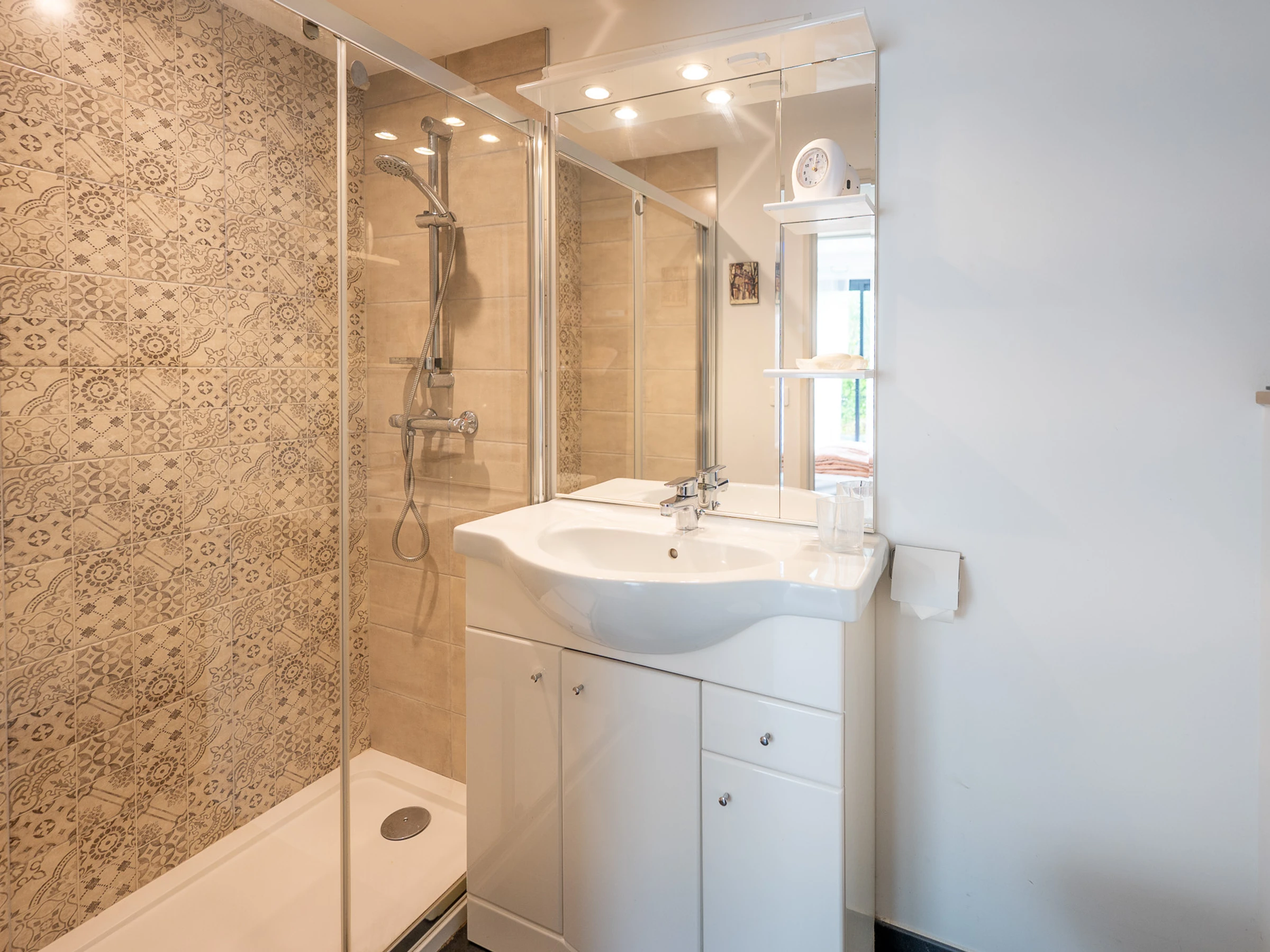 Direkt am See und dem Strand von Tanchet gelegen, bietet dieses Haus eine Eingangshalle, ein offenes Wohn-/Esszimmer mit angrenzender Küche. Das Wohnzimmer ist mit einem Sofa, einem Tisch, einem Fernseher und WLAN ausgestattet. Die Küche verfügt über einen Kühlschrank mit kleinem Gefrierfach, einen Geschirrspüler, einen Backofen, ein Cerankochfeld, eine Dunstabzugshaube, eine Mikrowelle, eine Waschmaschine und einen Gefrierschrank. Angrenzend befinden sich ein Büro, ein Schlafzimmer mit zwei Ausziehbetten (90 x 190 cm, insgesamt vier Betten à 90 x 190 cm) und ein Duschbad mit Dusche und WC. Im anderen Teil des Hauses befinden sich ein Schlafzimmer mit einem Bett (140 x 190 cm) und ein Duschbad mit Dusche und WC sowie ein Studio-Apartment mit einem Schlafsofa (140 x 190 cm), einem Fernseher, einer Küchenzeile mit Mikrowelle und Kühlschrank sowie einem eigenen Duschbad mit Dusche, WC und Waschmaschine. Kostenloses WLAN und Klimaanlage sind vorhanden. Bettwäsche wird nicht gestellt. Ref. MAIS 4