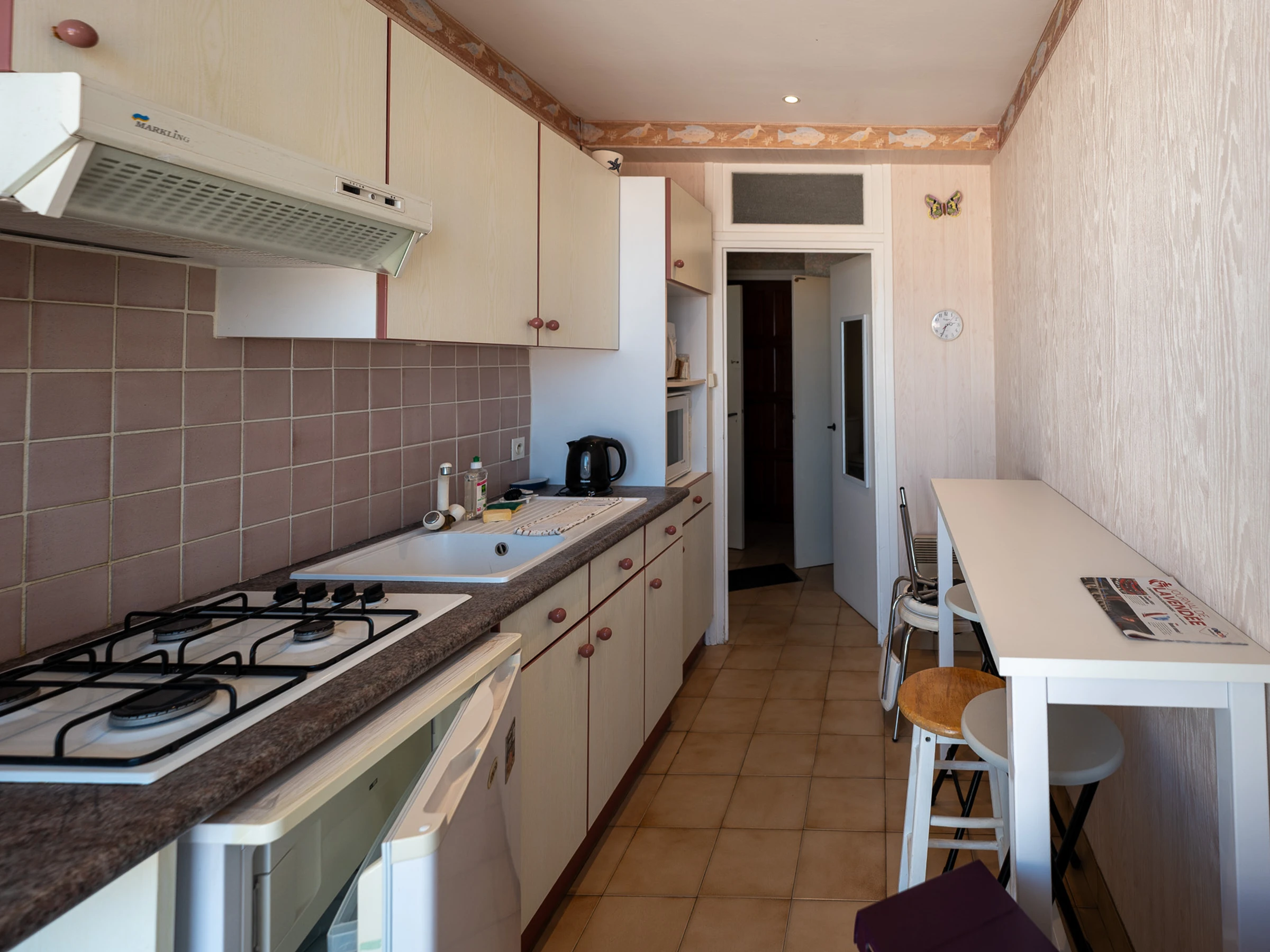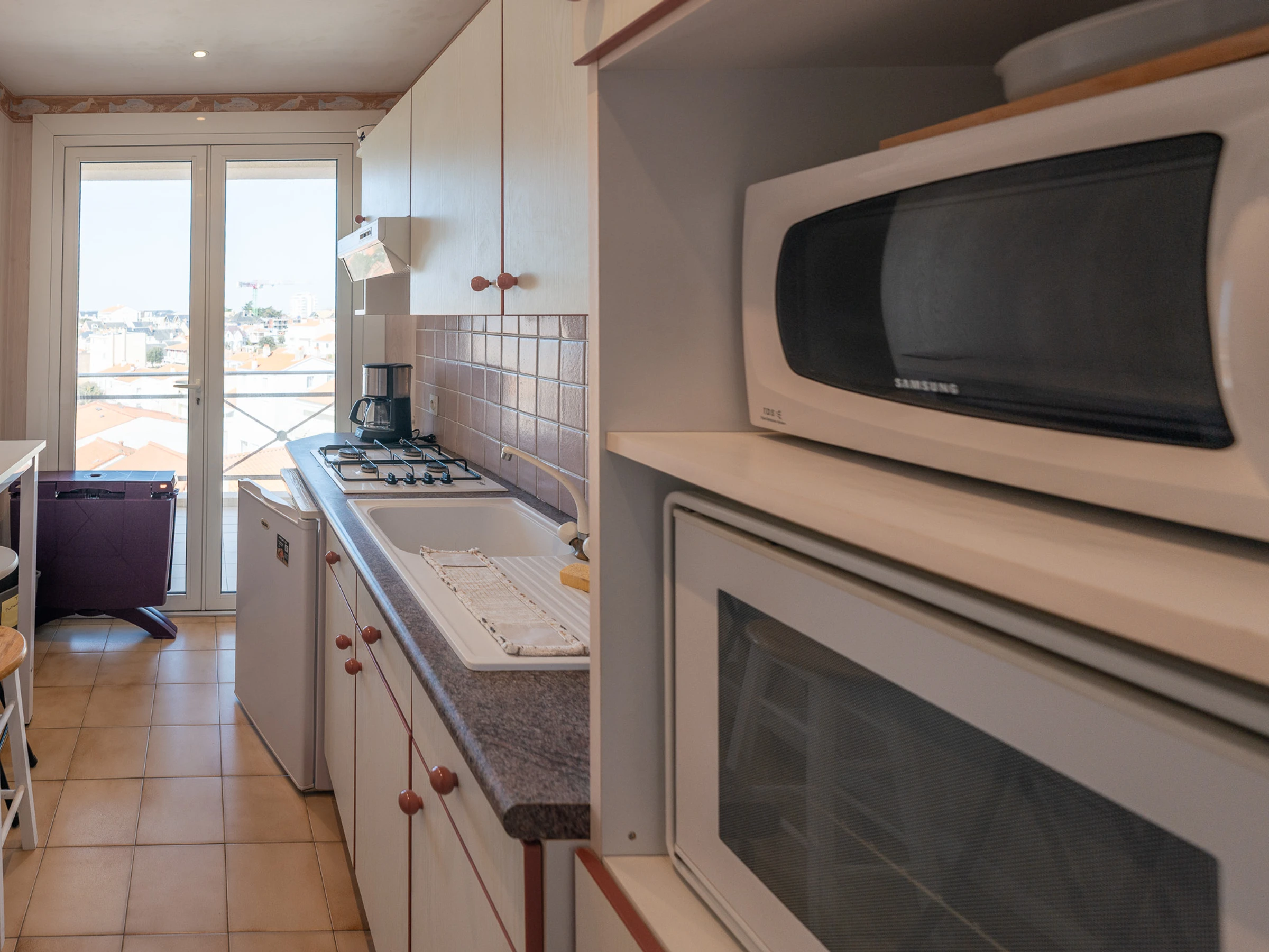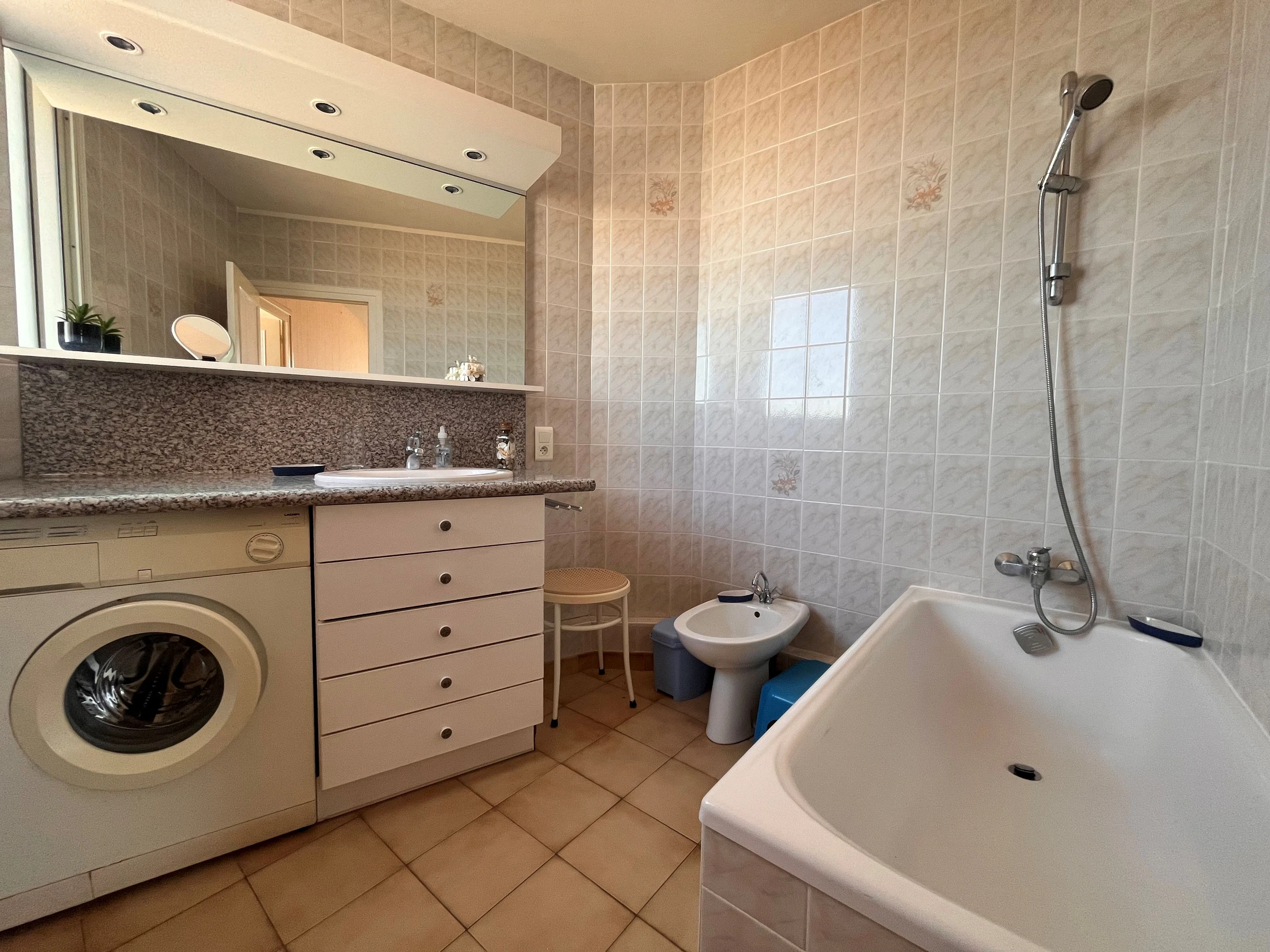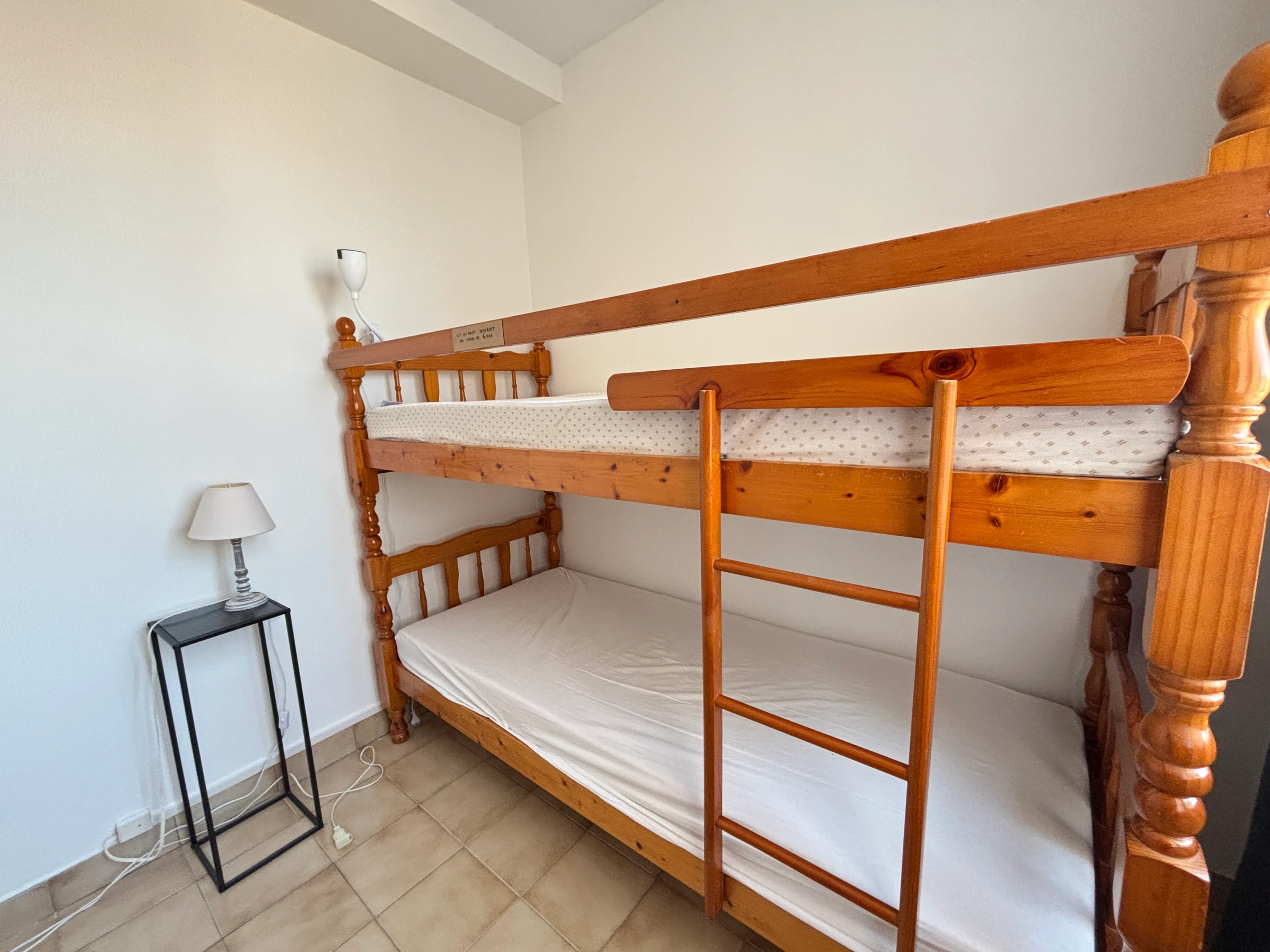 Dieses ca. 55 m² große, möblierte 2-Sterne-Apartment mit 3 Schlafzimmern und seitlichem Meerblick befindet sich im Presidents im 6. Stock mit Aufzug. Es verfügt über einen Eingangsbereich mit Einbauschränken, ein WC und ein Wohnzimmer mit einem Doppelschlafsofa. Die Küche ist mit einer Mikrowelle, einem 4-Flammen-Gasherd, einem Kühlschrank und einem Gefrierschrank ausgestattet und bietet Zugang zu einem Balkon. Das erste Schlafzimmer verfügt über einen Balkon und ein 140 cm breites Bett, während das zweite Schlafzimmer über ein Etagenbett (2 x 90 x 190 cm) verfügt. Das Badezimmer ist mit einer Waschmaschine ausgestattet. Bettwäsche wird nicht gestellt. APPA 219