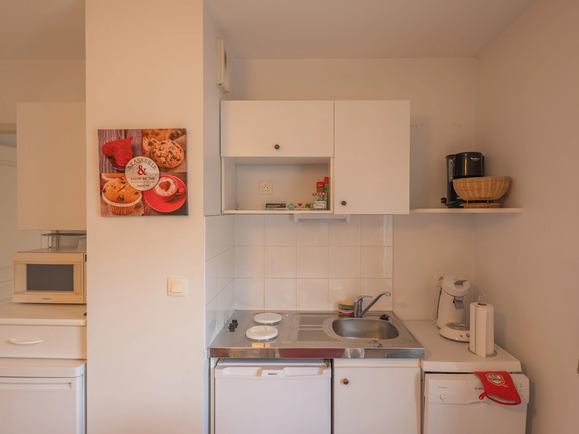 Möblierte 1-Sterne-Unterkunft. Ein-Zimmer-Apartment nur wenige Schritte vom Stadtzentrum, in der Nähe von Geschäften und 1 km vom Strand entfernt. Es verfügt über einen Eingangsbereich mit begehbarem Kleiderschrank und ein Wohnzimmer mit einem Doppelschlafsofa. Die Küche ist mit einem Multifunktionsofen, einer Mikrowelle, einem Geschirrspüler und einem Kühlschrank ausgestattet. Das Schlafzimmer verfügt über zwei Einzelbetten und einen begehbaren Kleiderschrank. Das Badezimmer hat eine Dusche, ein Waschbecken und eine Toilette. Bettwäsche wird nicht gestellt. APPA 262