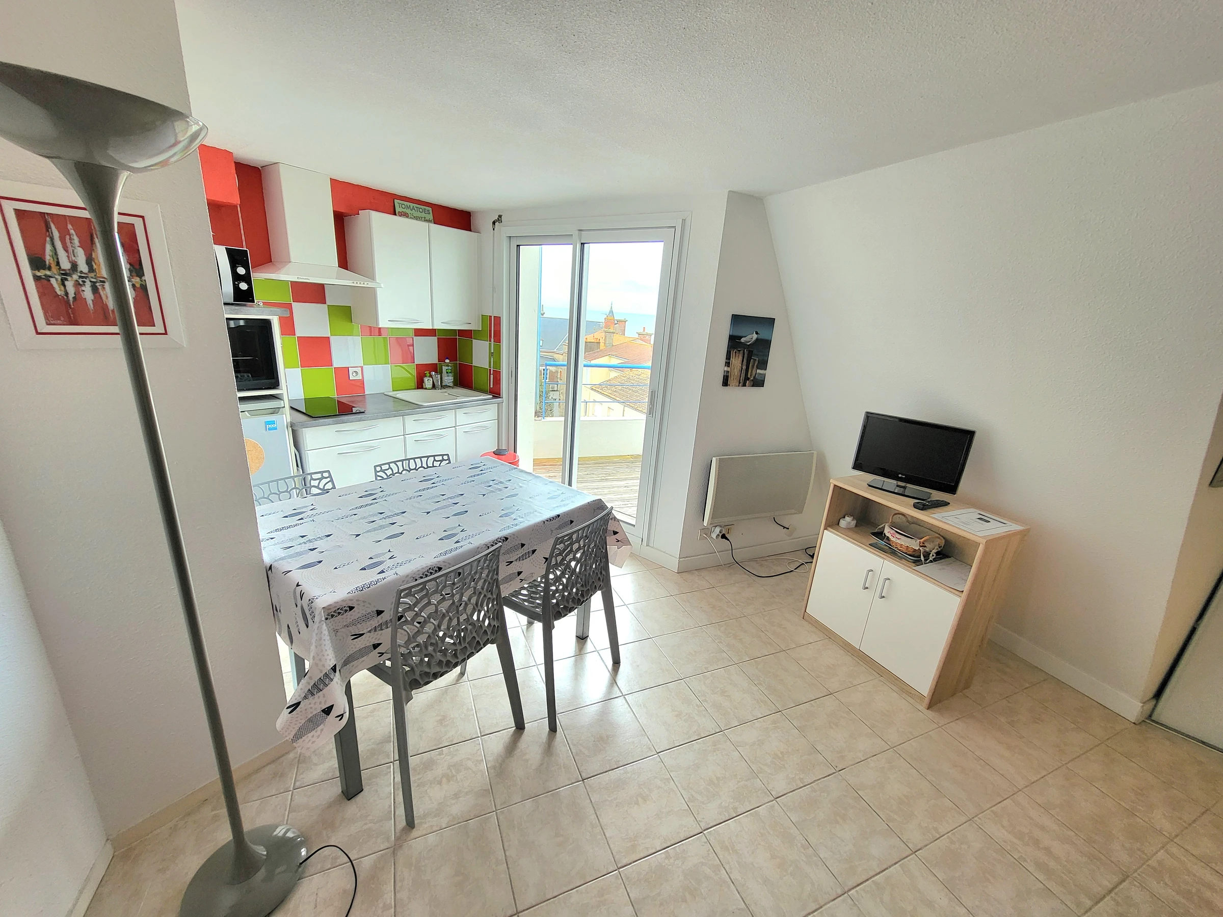 Gönnen Sie sich eine sonnige Pause in diesem warmen und sorgfältig eingerichteten Apartment, das ideal gelegen ist, nur 150 Meter vom Strand und 300 Meter von den lebhaften Geschäften des Viertels Arago entfernt. Es liegt im vierten Stock eines Wohnhauses mit Aufzug, profitiert dank seiner Südwestausrichtung von herrlichem Licht und bietet einen Blick auf das Meer über den Dächern – eine ideale Umgebung für einen ruhigen Aufenthalt.