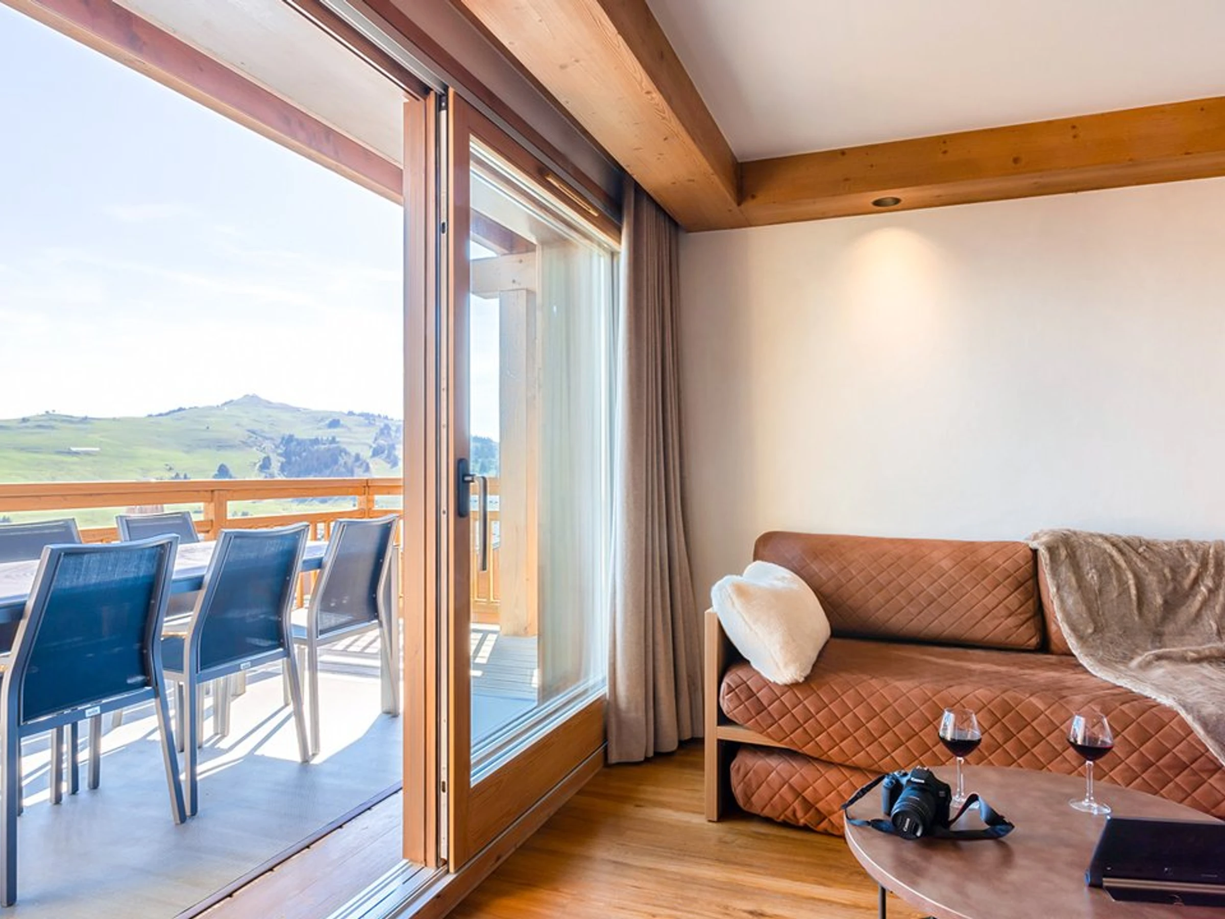4-Sterne-Residenz mit WELLNESSBEREICH! La Résidence des Armaillis liegt in einer ruhigen Gegend im Gebiet Haut Lieux, 500 m vom Zentrum des Ferienortes entfernt und bietet einen Panoramablick auf das Beaufortain-Massiv und den Mont Bisanne.