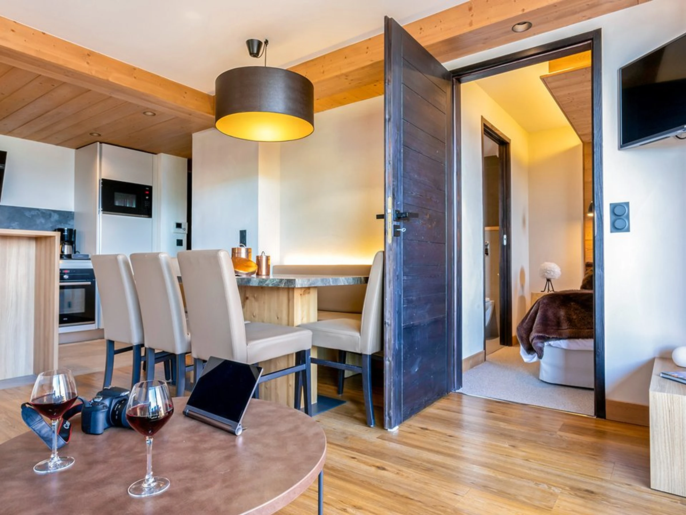 Dieses nach Süden ausgerichtete Apartment profitiert vom Zugang zur 50 m entfernten blauen Piste Chenavelle, der nahegelegenen Haltestelle des kostenlosen Shuttles, Lebensmittel- und Sportgeschäften sowie dem Restaurant „La Table des Armaillis“ (Bib Gourmand 2022).
