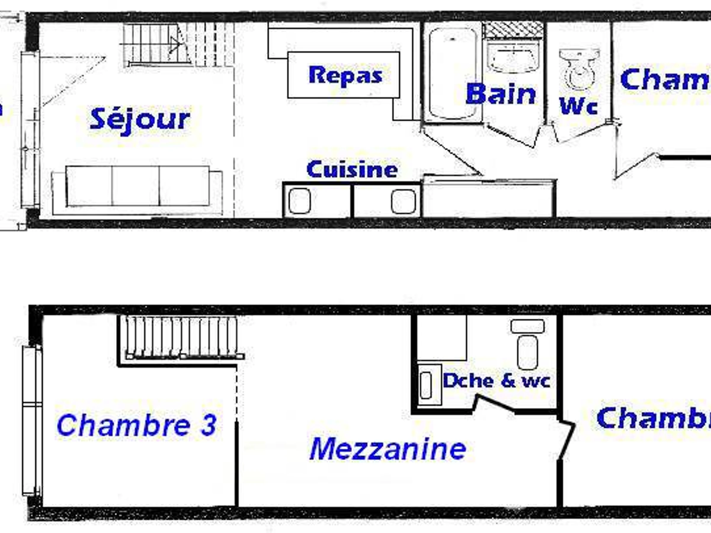- Zwischengeschoss : 1 lit de 140