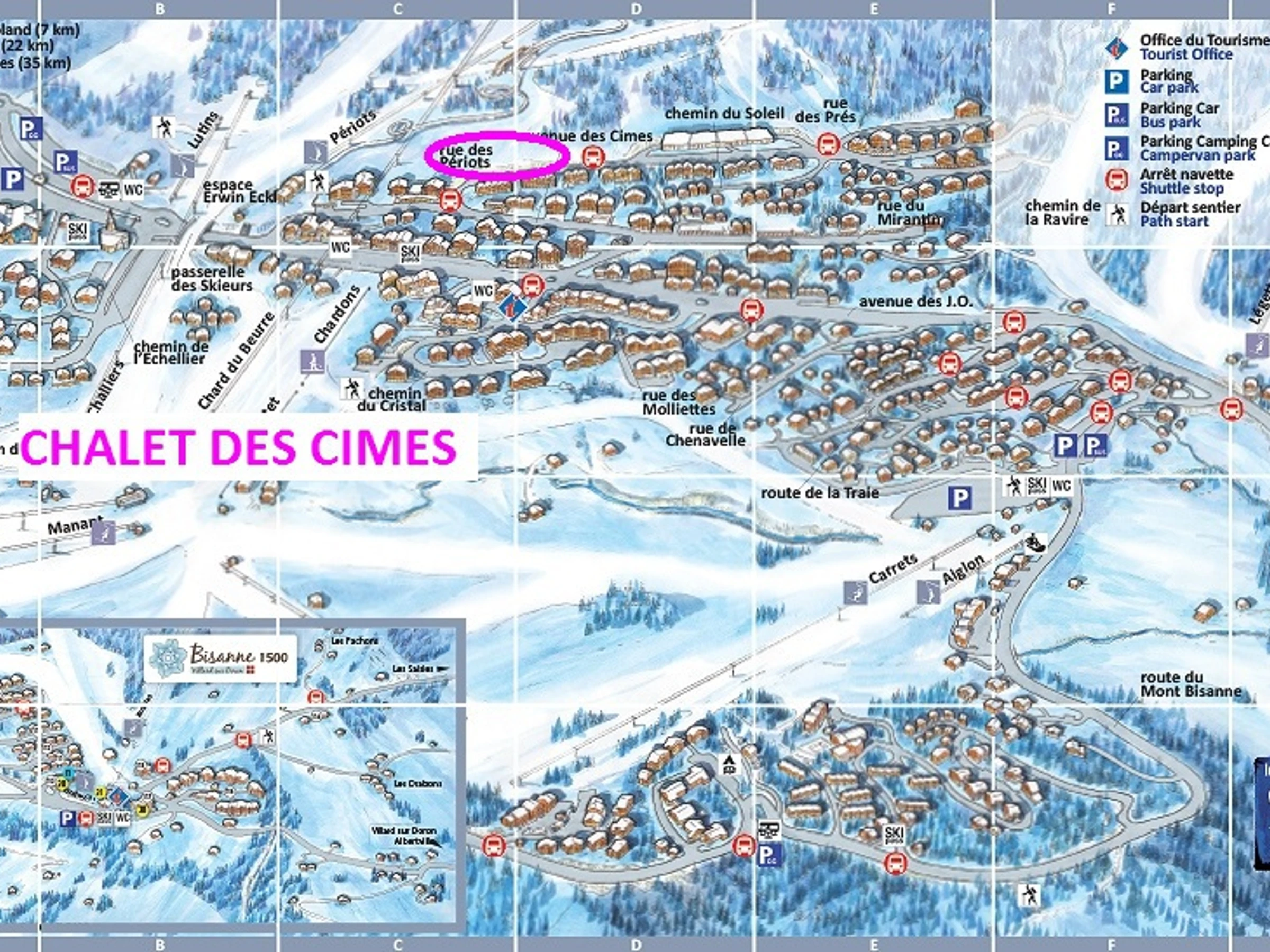 Bergverdreher und Kindergarten sind 150m entfernt, Einkaufsmöglichkeiten 250m. Die Residenz befindet sich an der Kreuzung der Rue des Périots und der Ecke der Avenue des Cimes.