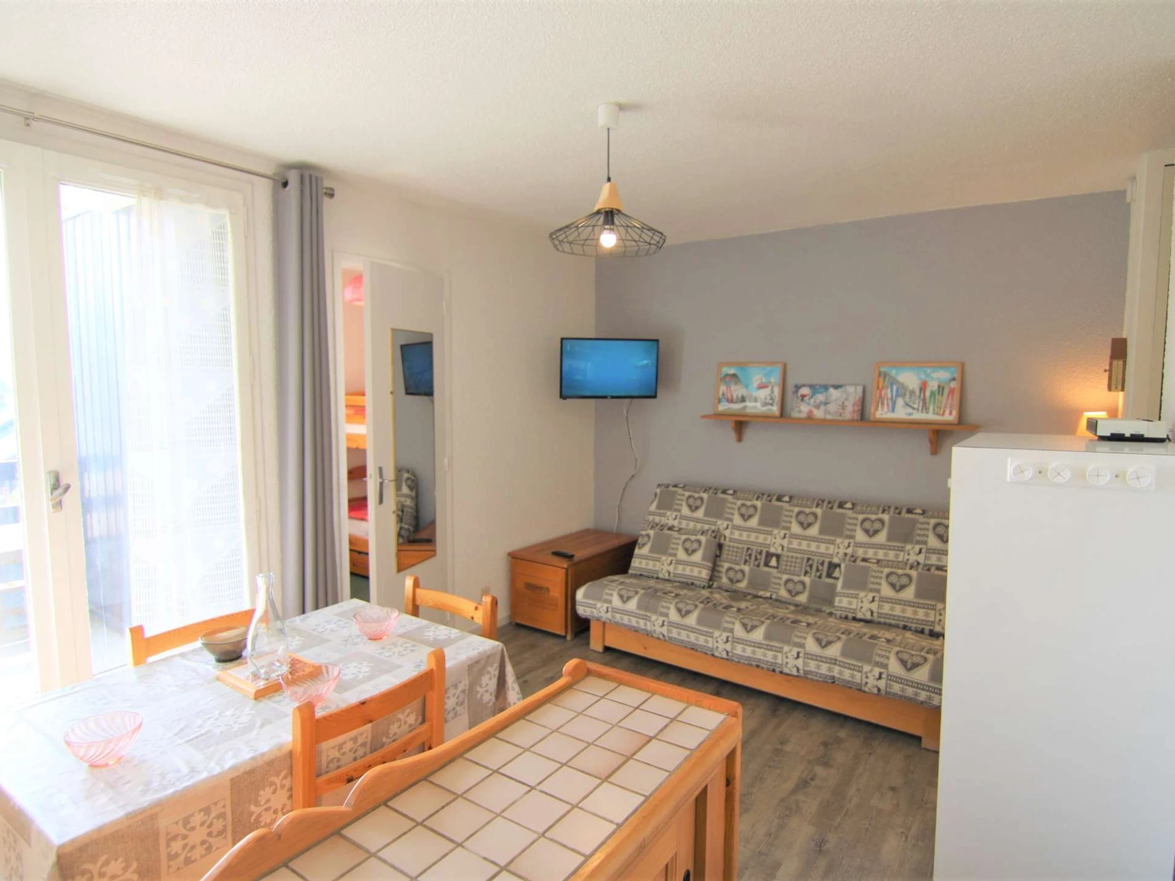 Das Apartment besteht aus einem Wohnzimmer mit einem 140 cm breiten Schlafsofa und einer offenen, ausgestatteten Küchenzeile, einer Schlafnische mit zwei 80 cm breiten Etagenbetten (Hinweis: Das obere Bett ist für Kinder unter 6 Jahren nicht geeignet), einem Badezimmer und einem separaten WC.