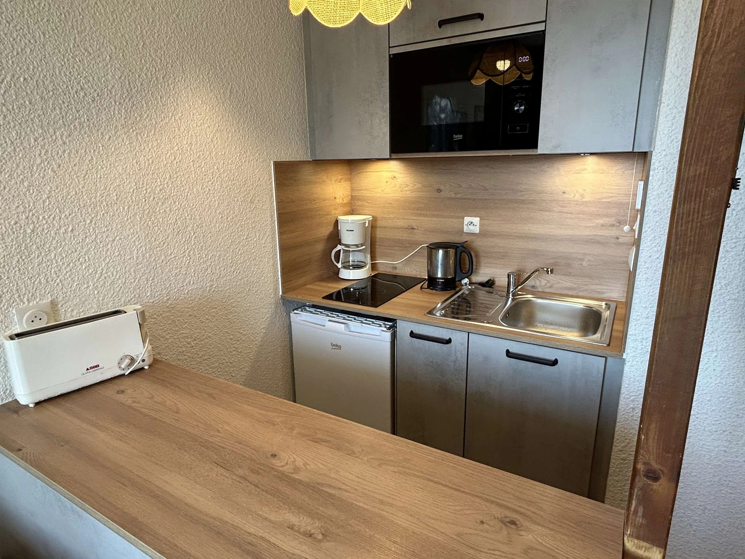 Das Apartment besteht aus einem Wohnzimmer mit einem 140 cm breiten Schlafsofa und einer offenen, ausgestatteten Küchenzeile, einer Schlafnische mit zwei 80 cm breiten Etagenbetten (Hinweis: Das obere Bett ist für Kinder unter 6 Jahren nicht geeignet), einem Badezimmer und einem separaten WC.