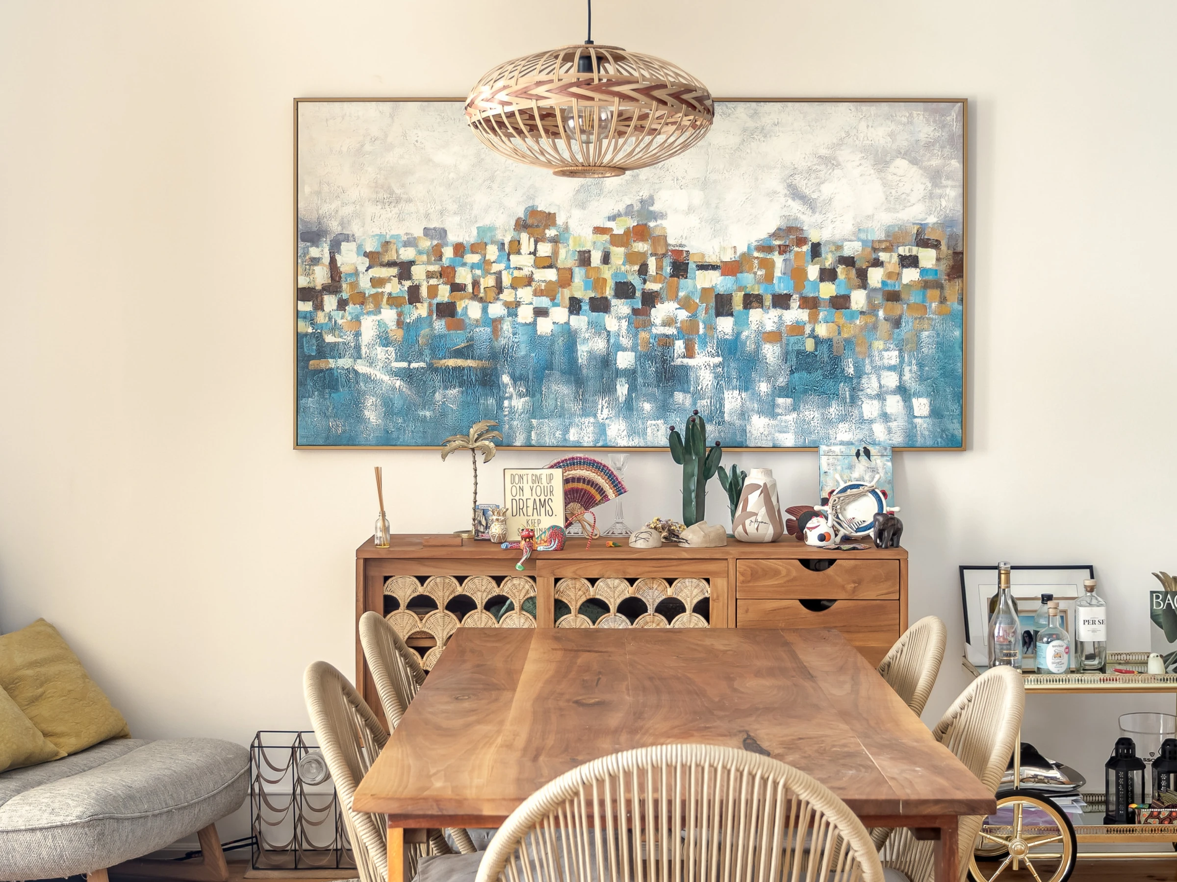 Dieses offene küche, mit induktions-kochfeld, ist ausgestattet in kühlschrank, mikrowelle, backofen, gefrierschrank, spülmaschine, geschirr/besteck, kochutensilien, kaffeemaschine, toaster und wasserkocher.