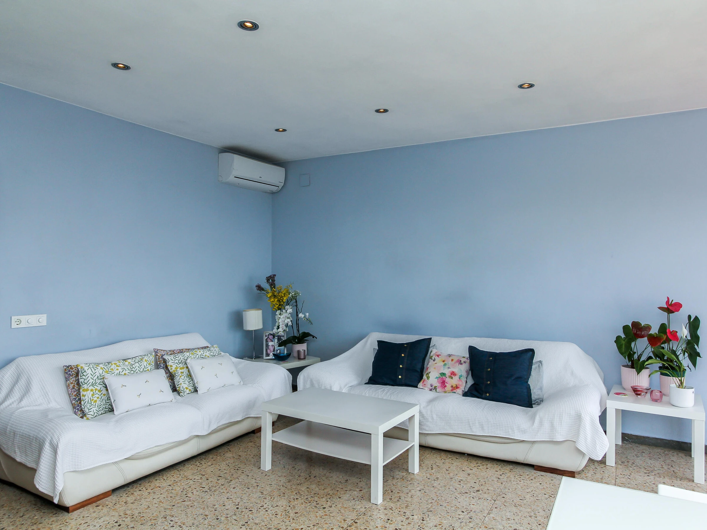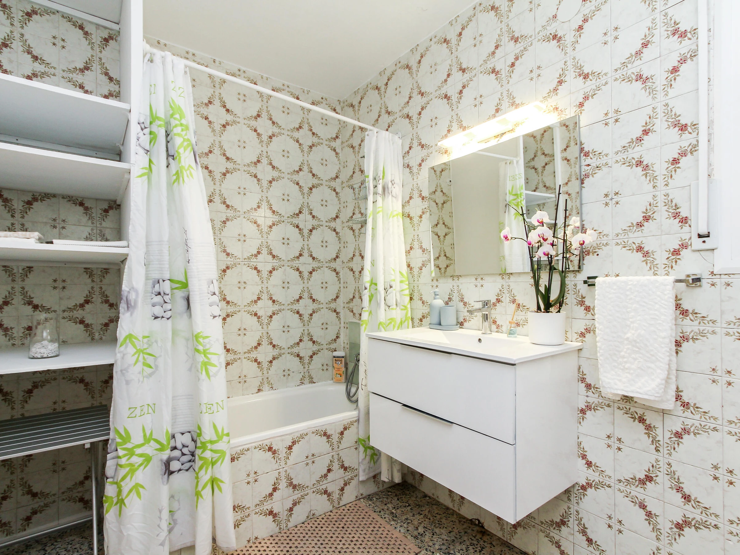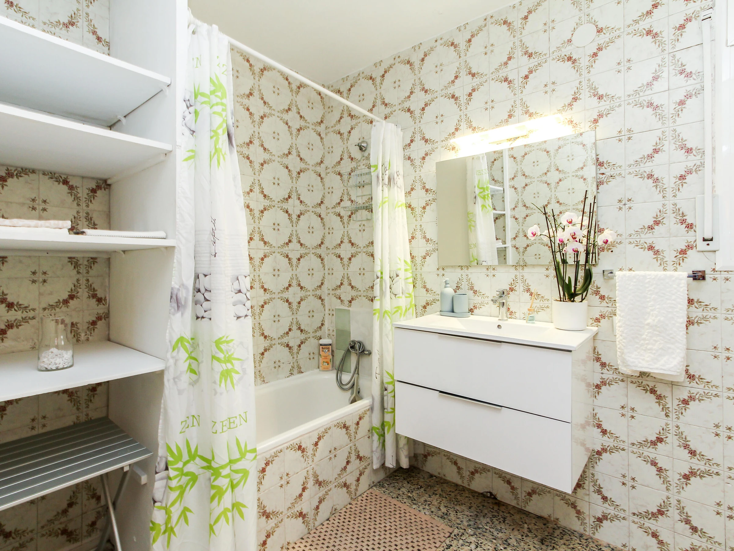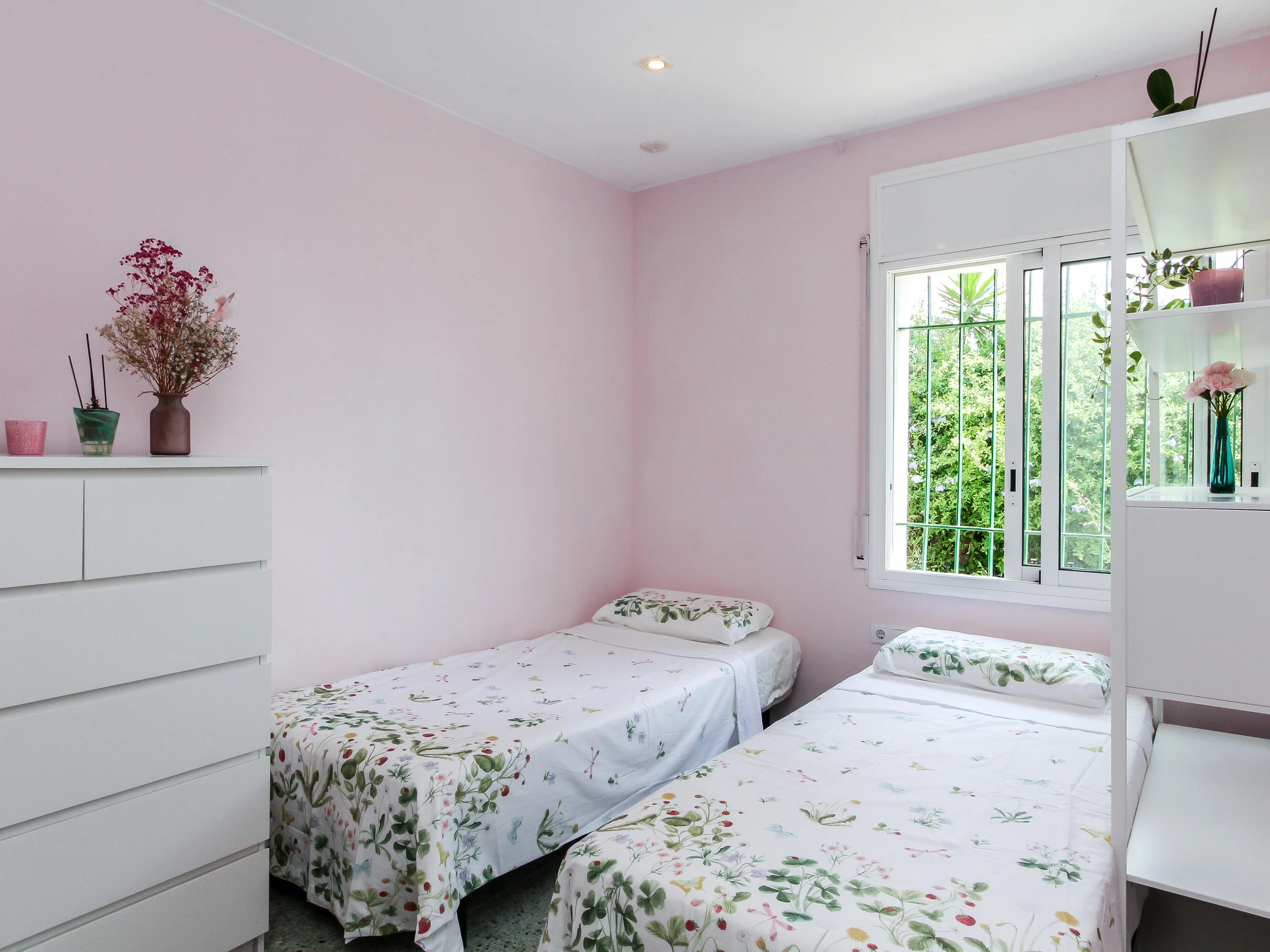Einzelbetten. Es verfügt über 1 Badezimmer mit Badewanne, ein großes Wohnzimmer