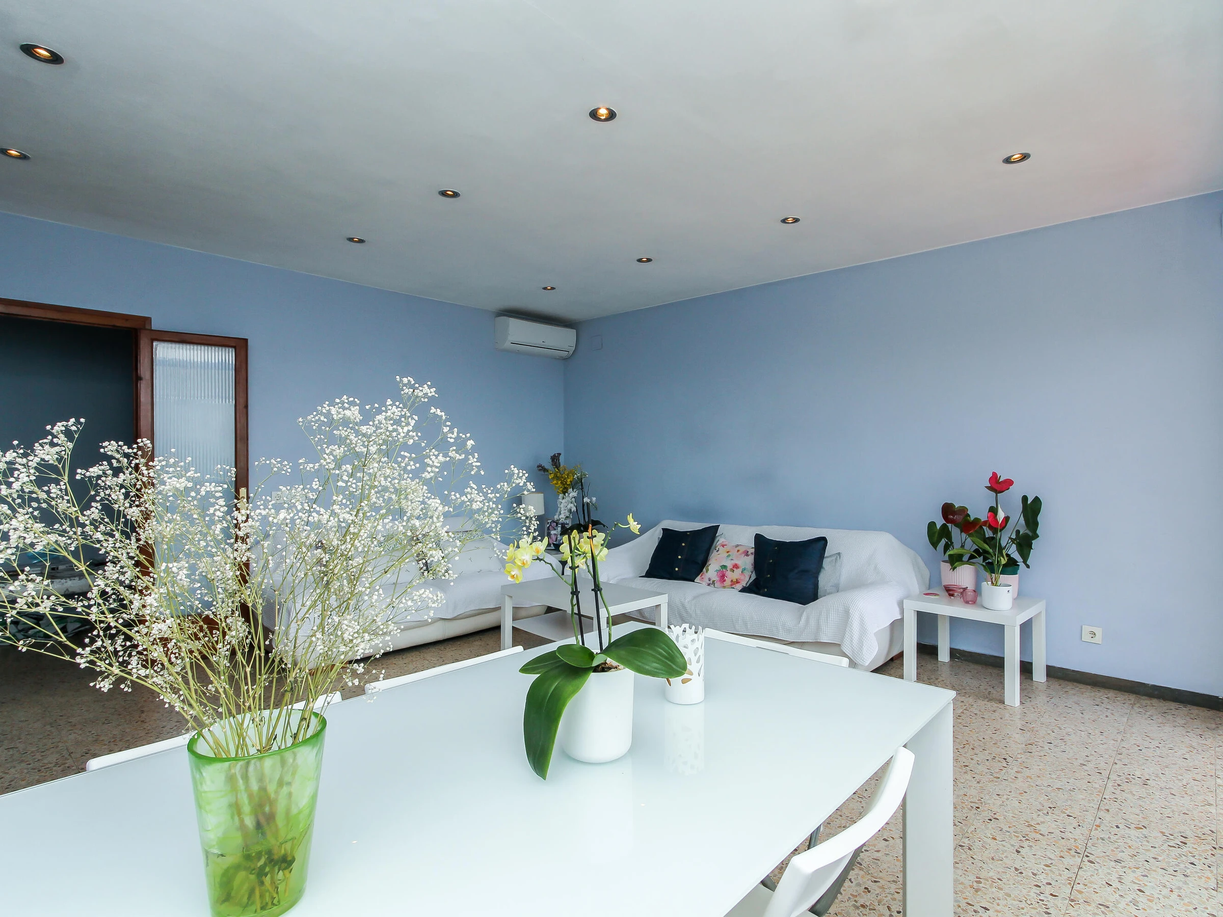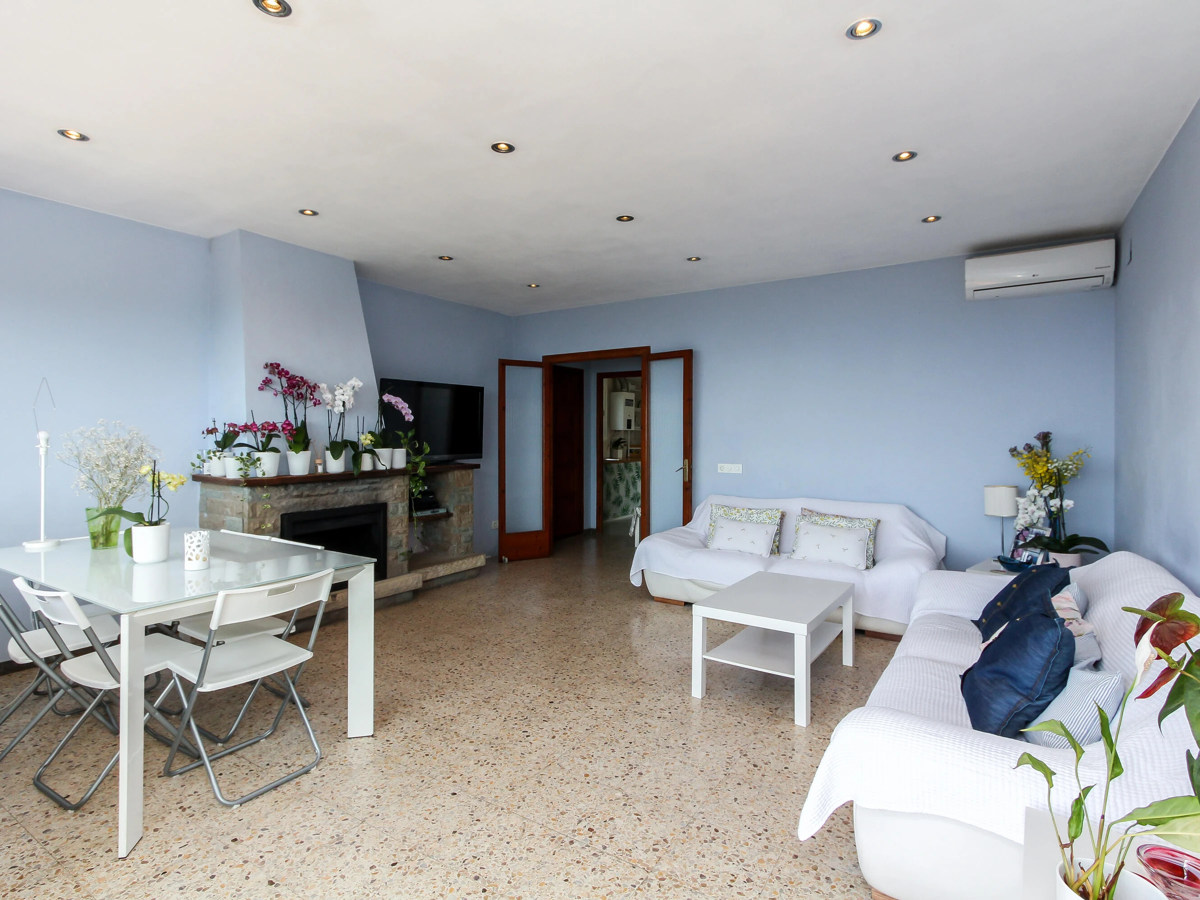 können. Vom Wohnzimmer aus haben Sie Zugang zu einer großen Terrasse und zum