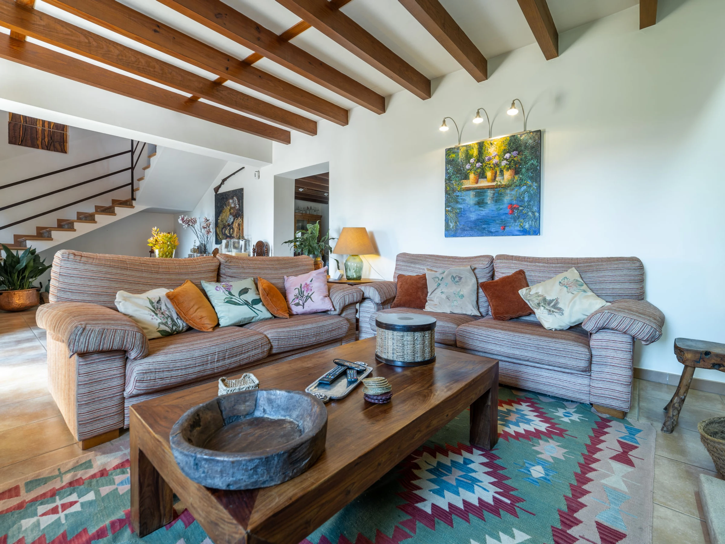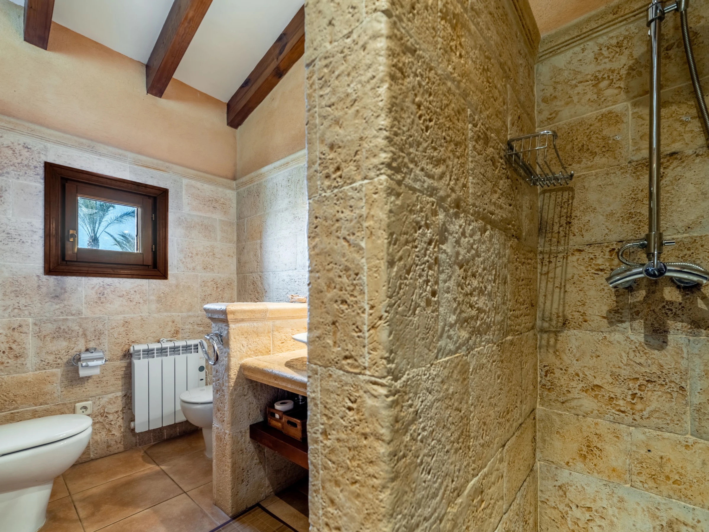 "Es Rafalet", 5-Zimmer-Villa 180 m2 auf 2 Stockwerken. Objekt geeignet für 8 Erwachsene. Geräumig, vollständig renoviert, sehr komfortabel und gemütlich eingerichtet: grosses Wohnzimmer mit offenem Kamin, Digital-TV und Flachbildschirm. Ausgang zum Gartensitzplatz. 1 Doppelzimmer mit Panoramafenster mit 1 franz. Bett (150 cm, Länge 200 cm), Klimaanlage und Warmluftheizung. Wohnküche (4 Kochplatten, Backofen, Geschirrspüler, Toaster, Wasserkocher, Mikrowelle, Tiefkühler, elektrische Kaffeemaschine) mit Esstisch, offenem Kamin (nur Deko). Ausgang zum Gartensitzplatz, zum Schwimmbad. Dusche/WC. Obergeschoss: 1 grosses Doppelzimmer mit Panoramafenster begehbarem Kleiderschrank mit 1 franz. Bett (150 cm, Länge 200 cm), Dusche/Bidet/WC, E-Heizung, Klimaanlage und Warmluftheizung. 1 grosses Doppelzimmer mit Panoramafenster mit 1 franz. Bett (150 cm, Länge 200 cm), E-Heizung, Klimaanlage und Warmluftheizung. 1 Doppelzimmer mit Panoramafenster mit 2 Betten (105 cm, Länge 200 cm), E-Heizung, Klimaanlage und Warmluftheizung. Bad/Dusche/Bidet/WC. E-Heizung. Grosser Gartensitzplatz, Laube. Terrassenmöbel, Balkonmöbel, Gartengrill, Liegestühle, Loggia. Zur Verfügung: Waschmaschine, Wäschetrockner, Bügeleisen, Kinderhochstuhl, Babybett bis 2 Jahre, Haartrockner. Internet (WLAN, gratis). Parkplatz (überdacht) beim Haus. Bitte beachten: Nichtraucher-Haus. Feuerlöscher. [hidden] // Reg. Nr.: ESFCTU000007018000171944000000000000000000000[hidden]2