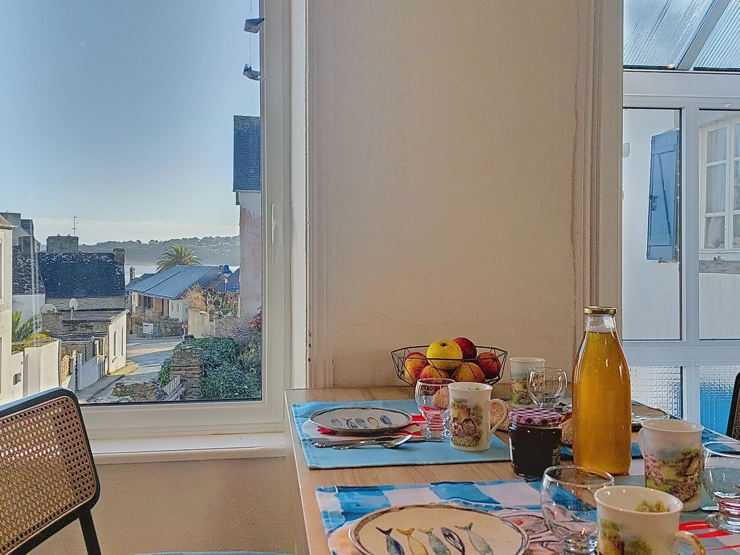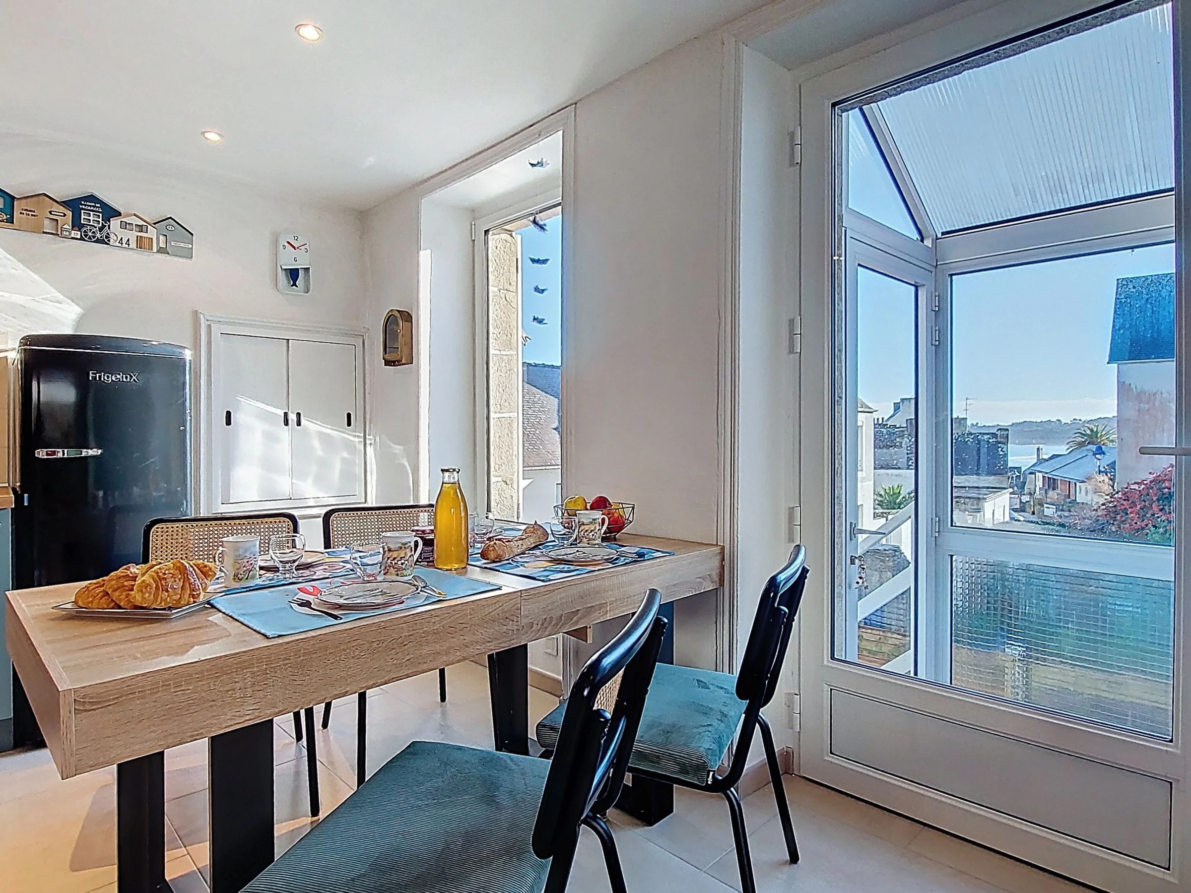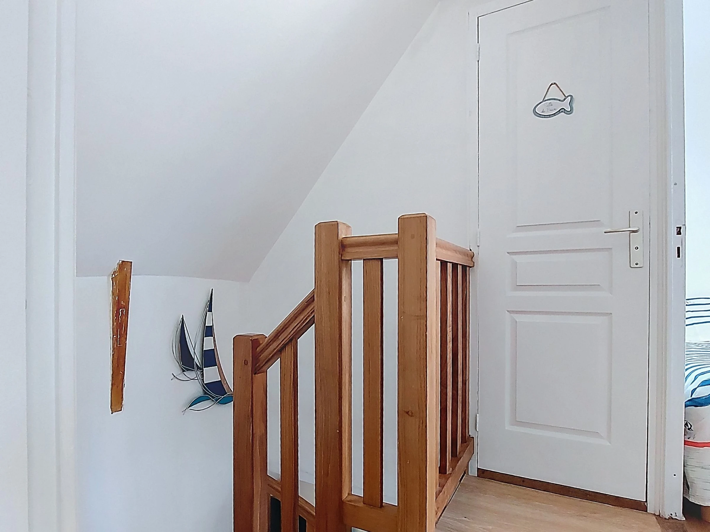 "Ty Côte", 3-Zimmer-Haus 65 m2 auf 2 Stockwerken. Hell, renoviert im Jahre 2025, schön und geschmackvoll eingerichtet: offenes Wohn-/Esszimmer 25 m2 mit TV (Flachbildschirm). Ausgang zur Terrasse. Grosse, offene Küche 15 m2 (Backofen, Geschirrspüler, 3 Induktionskochplatten, Wasserkocher, Mikrowelle, Tiefkühler, elektrische Kaffeemaschine, Kapseln für die Kaffeemaschine (Dolce Gusto) extra). Dusche, sep. WC. Obergeschoss: 2 abgeschrägte Zimmer 10 m2, jedes Zimmer mit 2 Betten (80 cm, Länge 200 cm). Dusche/WC. E-Heizung. Grosse Terrasse 25 m2, Südlage. Terrassenmöbel, Gartengrill (mobil), Liegestühle (2). Sicht auf das Meer. Zur Verfügung: Waschmaschine, Wäschetrockner, Haartrockner. Internet (WLAN, gratis). Bitte beachten: Nichtraucher-Haus. Maximal 1 kleines Haustier/Hund erlaubt. Rauchmelder. Inserat einer Privatperson nach Artikel 155, IV, CGI.