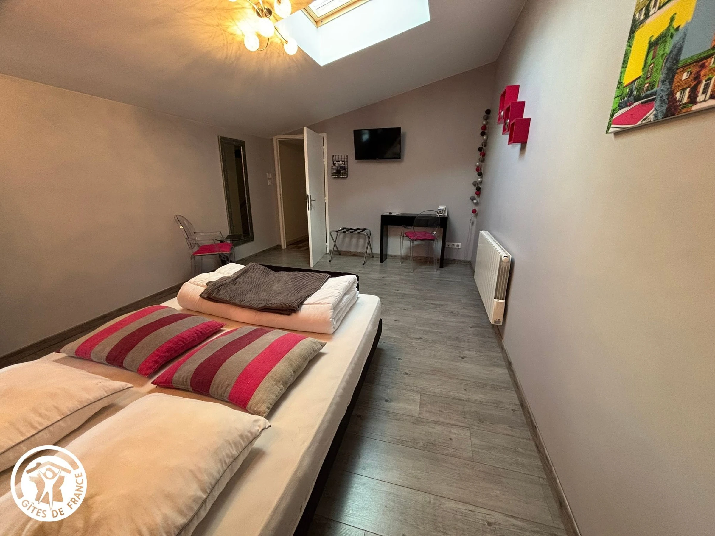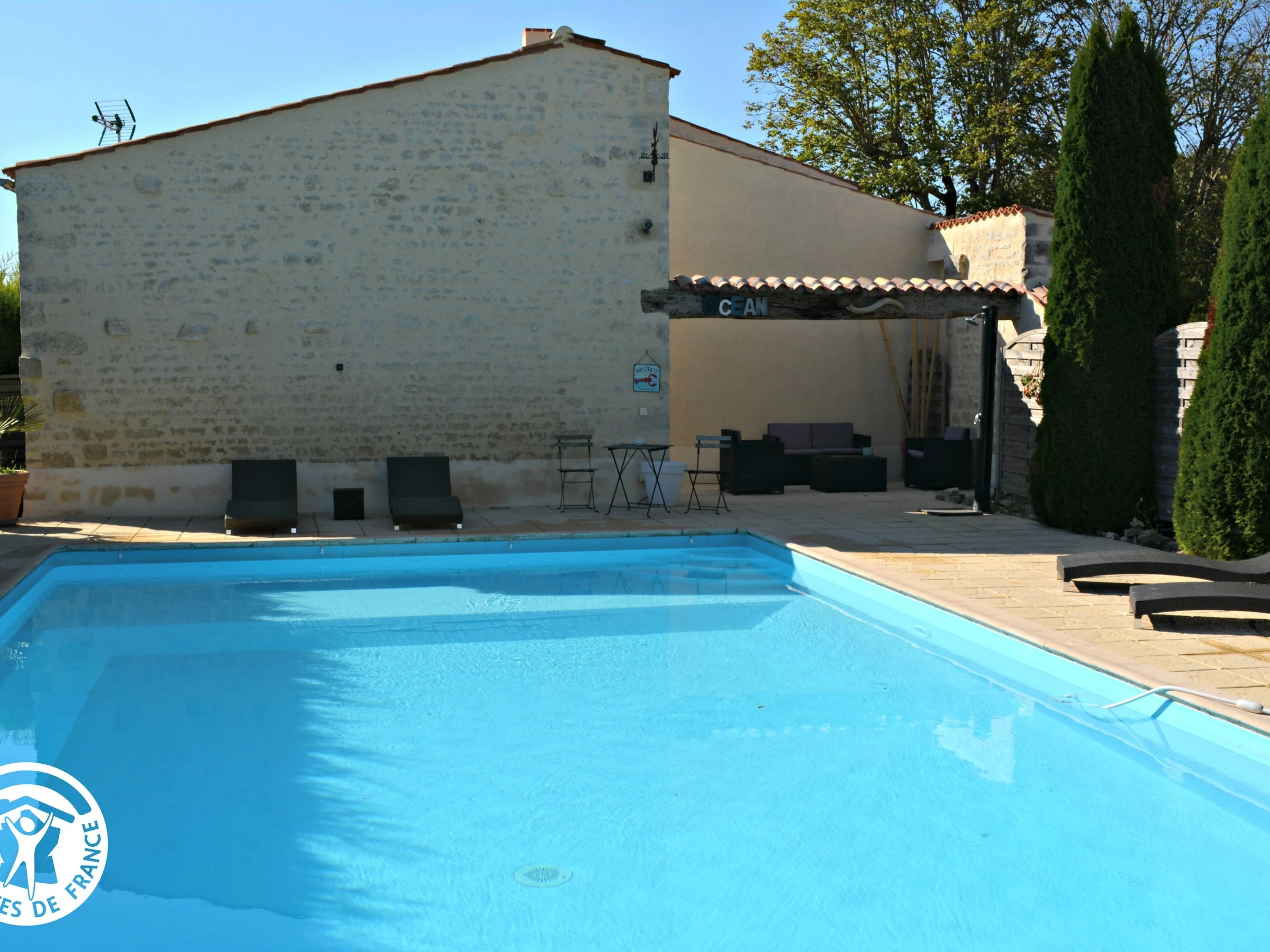 Erkunden Sie die südliche Vendée, eingebettet zwischen den Radwegen der Vendée (9 km) und dem regionalen Naturpark Marais Poitevin (Abtei Maillezais und Bootsanlegestelle 18 km entfernt). Etwas weiter entfernt liegen die Küste, La Rochelle (49 km) und L'Aiguillon-la-Presqu'île (50 km). Nutzen Sie außerdem die Nähe zu den beiden Freizeitparks Puy du Fou (65 km) und Futuroscope (126 km). Das Ferienhaus bietet im Erdgeschoss eine Eingangshalle, einen Wohn-/Ess-/Küchenbereich, ein separates WC und ein Schlafzimmer mit Außenzugang, ausgestattet mit einem Queensize-Bett, einem Badezimmer (Dusche und Badewanne) und einem WC. Im Obergeschoss finden Sie ein Schlafzimmer mit einem Queensize-Bett (160 cm), einem Duschbad und einem WC sowie ein weiteres Schlafzimmer mit einem Queensize-Bett (160 cm), einem Badezimmer (Dusche und Badewanne) und einem WC. Im Obergeschoss des gegenüberliegenden Gebäudes befinden sich ein Schlafzimmer mit einem Einzelbett (90 cm), ein Schlafzimmer mit einem Doppelbett (160 cm) sowie ein Duschbad mit WC. Ihnen steht ein privater Außenbereich mit Gartenmöbeln und Grill zur Verfügung. Außerdem haben Sie Zugang zum gemeinschaftlich genutzten, unbeheizten Pool (12 x 6 m) der Eigentümer, der von Mai bis September geöffnet ist. Ausreichend Parkplätze sind ebenfalls vorhanden.