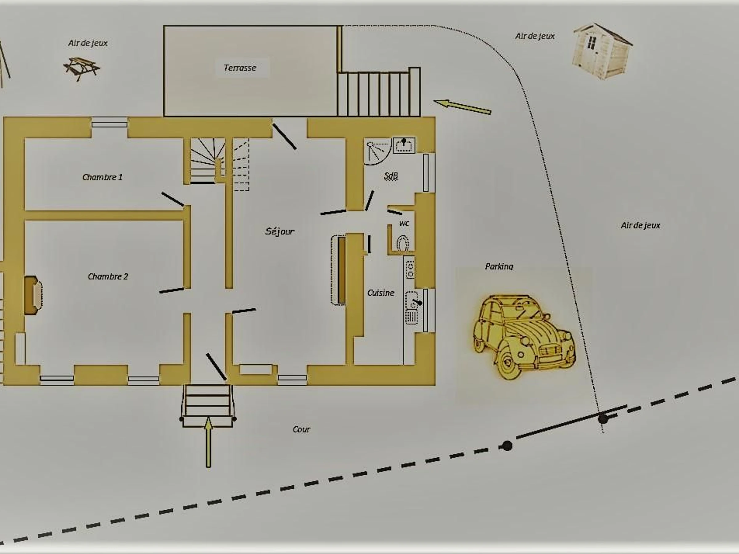 An der Kreuzung in La Vallée angekommen, biegen Sie links ab (Haus rechts mit Brunnen)